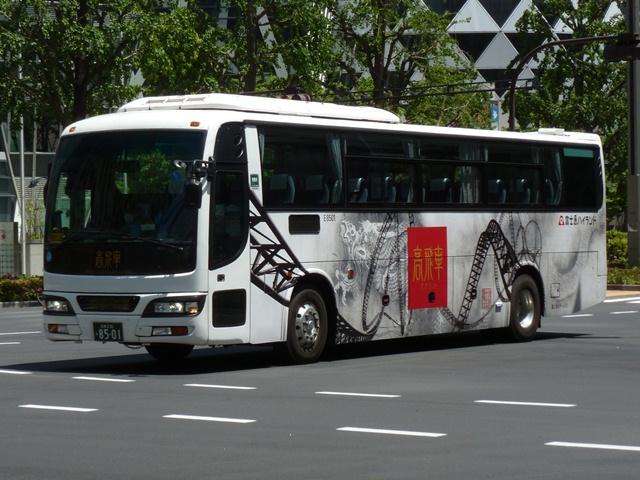 主に高速バス車両を中心に並べています。今回のその7は富士急行グループの事業 者編の続きで、富士急シティバスとフジエクスプレスの車両画像を並べていきます。 なお、型式・年式は『BJハンドブックシリーズR72 富士急行』(2011),BJエディターズ を参照しました。 <富士急シティバス> 社番:E8501.KL-RA552RBN(05年車)。 富士急シティバスは三島・沼津エリアを引き継いだ分離子会社です。新宿へは「みしま コロッケ号」・「さんさん沼津・新宿号」の2路線を京王バス東と共同運行しています。 両路線とも2012年1月から増便したことで、富士急シティバスの高速車を新宿で見かけ る機会が増えました。まずは直結冷房3本トランクとリムジンバスのような仕様の西工ボ ディRA。富士急ハイランド「高飛車」ラッピング車となっています。