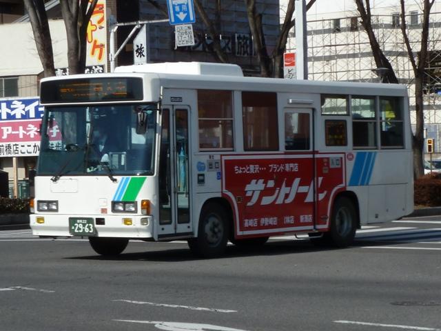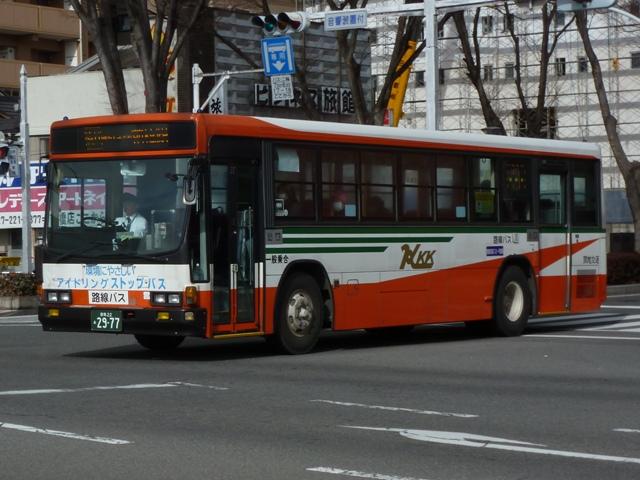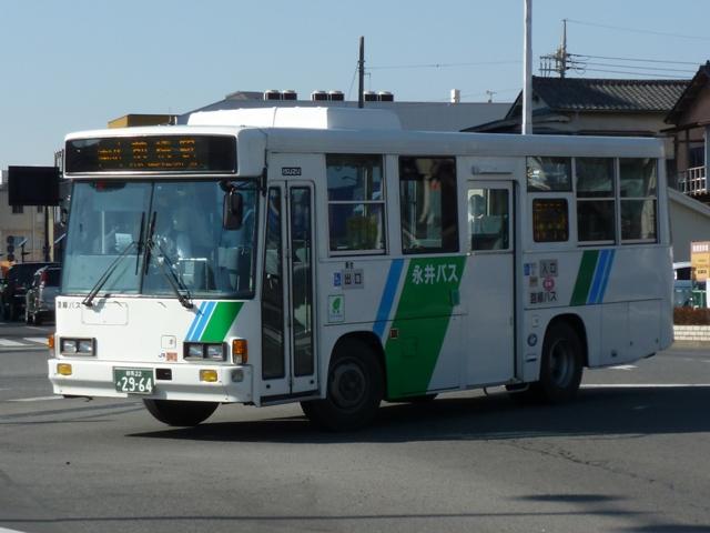 今回のその5では、記録出来た永井バスこと永井運輸の乗合バス画像を並べていきます。 なお、型式・年式は「永井運輸 所有車両44台全データ」『バスマガジン21号』(2007), 三推社/講談社 を参照しました。 群馬22あ2963.KC-LR333F(96年車)。 永井運輸は運送事業を皮切りにタクシー・貸切バスと事業を拡大、廃止代替バスの運行 を開始した1993年から路線バスに参入した事業者です。 まずは96年の代替バス運行にあたり4台導入した、いすゞLR短尺車。画像の車両は 群馬の路線バスでおなじみの「サントノーレ 」広告を貼り付けた車両。 群馬22あ2964.KC-LR333F(96年車)。 群馬22あ2965.KC-LR333F(96年車)。 群馬22あ2966.KC-LR333F(96年車)。 せっかくなので今回はLR短尺車4台の画像を並べておきます。担当路線の関係なのか、 ラッピングや広告を貼り付けた車両が4台中3台(2013年1月現在)となっています。 |