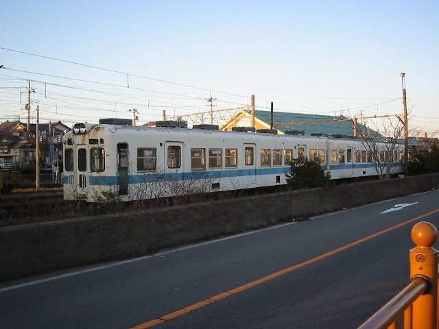 大甕から鮎川にかけては、住宅地や工場といったところを走りました。こちらの方が お客さんも多そうでしたが、2車線のしっかりした道路と併走しているところもあって 逆に存続が難しいのかもしれないと思いました。常磐線の線路沿いに鮎川駅はあり、 なんとも中途半端な所という印象。線路は駅から少し先まで延びており、ここにも 留置車両がありました。休日だったので使用していないのかと思いましたが、どうや ら本当に使っていない様子。車両を入れ替えてからそれだけ乗客が減ったというこ となのでしょうが、冷房もなければ汚らしい車両では正直地元のお客さんも乗らない だろうと思いました。 廃止前の2004年に以下の記述がある。 「最低限の整備しかしていないので、塗装は剥げ落ち、窓に埃がこびりつくという状 態で走っている。また半数は休車状態である。」川島令三(2004):『全国鉄道事情 大研究常磐篇』草思社,p248、2003年もまさにこの通りの状況でした。 日立電鉄は2005年3月にあっさりと廃止されてしまいました。廃止するために手入 れを全くしなかったのか、手入れが出来ないから廃止になったのか。廃止理由は後 者ですが実際のところはどうなのでしょうか。 前年に尋ねた十和田観光電鉄が大規模な車両の入れ替えを行ったことと対称的に この頃から老朽化した施設を持つ鉄道路線は廃止という選択をするところが目立つ ようになりました。そして私の「廃止前にあわてて未乗路線乗車」が増えていくことに なりました。 この項おわり |