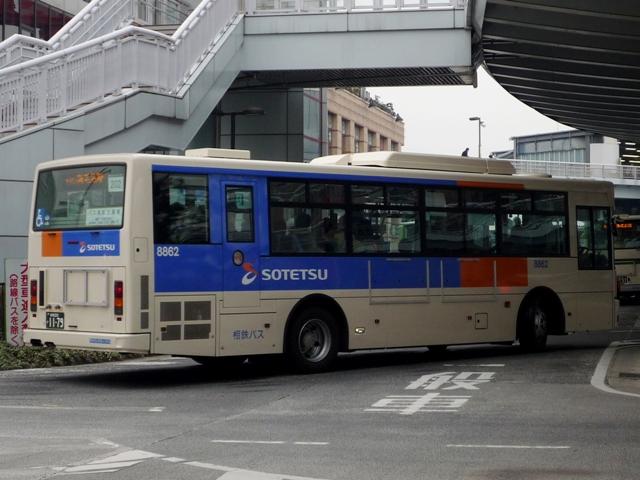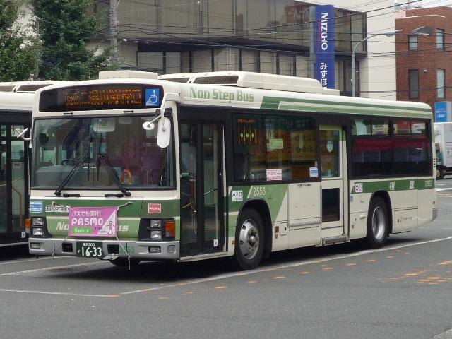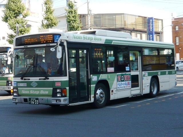 られ、現在はグループカラーに合わせた新塗装への塗り替えが進められています。その 一方で、路線バスを運行する自動車部や分離会社の相鉄バスでは一向に取り付けられる 様子もなく、最近の新車にもご丁寧に変則的な八角形の旧社紋を貼って納車されていまし た。おそらく撤退や分社化等の問題もあったのでしょうが、ここにきてやっと旧社紋の取り外 しとグループマークの取り付けが行われているようです。今回はグループマーク後の相模 鉄道自動車部の旭営業所の車両と、相鉄バスの画像よせ集めになります。 社番:2553. まずは旧社紋時代。PASMO時代もこの出で立ち。 社番:2553. こちらがグループマーク後・・・。PASMO涎掛けで分かりにくいのですが。 旧社紋を取り外し、側面後方にグループマークと新ロゴという出で立ちです。 とはいえ、独特の斜字「相鉄」ロゴも残り、なんとも折衷な感。これならすぐに対応できそう と思ったのは秘密です。たまたまとはいえ、同地点で同社番を記録出来ていたことも驚き。 |