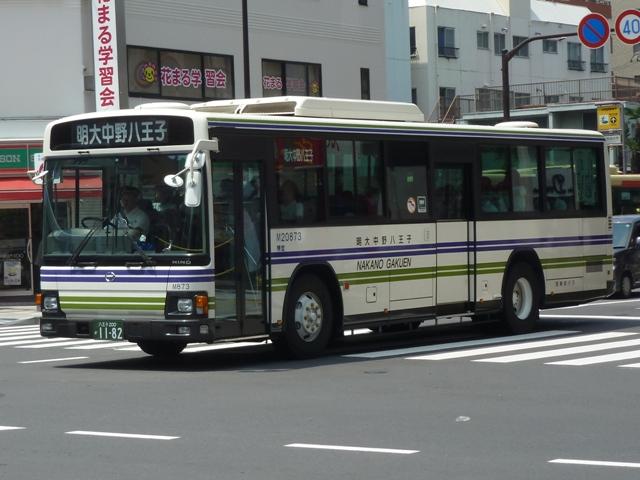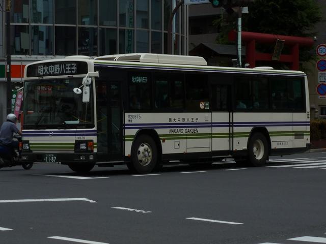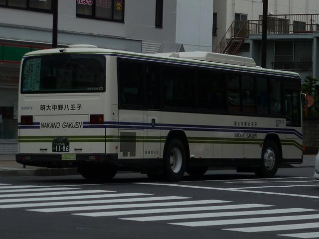 『バスラマインターナショナル 138号』の感想めいたエントリ作成用に撮りためた西東京 バスの画像を再利用する「八王子で見た西東京バス2013」シリーズ。 今回のその5では記録出来た高速車や特定車などをまとめて並べていきます。 なお、型式・年式は「西東京バス 在籍車両一覧」『バスラマインターナショナル 138号』 (2013),ぽると出版 を参照しました。 <高速車> 社番:DH20272.KL-RU1FSEA(02年車)。 高速車では古参格となる日野セレガRのFD。側面固定窓仕様の夜行専用車ですが、4 列シートのトイレ付仕様を生かして画像のように羽田空港線の運用に入ることもしばしば。 社番:DH20871.PKG-RU1ESAA(08年車)。 今回の画像よせ集めは、リヤ側のみしかないものも多くあります。現行ボディのセレガも リヤ側のみしか記録できず。 空港路線車にはボディ側面に「Highway Air Express」の表記が入ります。この車両は 多摩バス時代に登場。ボディ側面のアルファベット社名表記は「Tama」となっていました が、西東京バス統合後に「NISHITOKYO」に変更。アルファベット4文字のスペースにつ めこんだため、随分と細い文字フォントとなっています。 社番:DH31274.QRG-MS96VP(12年車)。 久々に西東京バスが新車導入した三菱ふそう車。少し前までは夜行高速車にニューエ アロクィーンが在籍していましたが、いつのまにか代替されていました。この車両が今の ところ西東京バス唯一の三菱ふそうの高速車とのこと。こちらもリヤ側しか記録できず。 正面側の画像は羽田で撮るのが手っ取り早いのかも。 <はちバス> 社番:A21065.BDG-HX6JHAE(10年車)。 八王子市地域循環バス「はちバス」専用車の日野ポンチョ。初代ポンチョを現行ポンチョで 代替しています。市内の交通空白地域を中心に運行しているため、現在のところ八王子駅 前への乗り入れは無し。画像は八王子駅南口でたまたま回送中のところを記録したもの。 <明大中野八王子特定車> 社番:M50171.KL-UA452MSN(01年車)。 学校自前で運行していた明治大学付属中野学園八王子中学校・高校のスクールバスを 1994年より西東京バスが運行管理しています。学校自家用車がUD車だったことから、 西東京バスが運行するようになってからもUD車を導入していました。まずはKL規制車で 富士新7EボディのUAツーステップ車。 社番:M50373.KL-UA452MAN(03年車)。 03年導入車は富士重工のバスボディ製造撤退により西工96MCとなります。自家用車 時代に西工58MCのUAトップドア車が在籍していたので、久々に西工ボディが復活しま した。 社番:M20873.PKG-KV234N2改(08年車)。 03年の西工ボディUA導入後、しばらく代替が無い状況でした。08年に久々の新車が 登場しましたが、なんと日野KV。UD車の牙城が崩れました。 社番:M20975.PKG-KV234N2改(09年車)。 社番:M20974.PKG-KV234N2改(09年車)。 翌年以降も日野車の導入が続きます。前後で車両が異なり失礼。 社番:M21074.PKG-KV234N2改(10年車)。 10年導入車から行先表示がLED表示となります。八王子駅前で見かけるときは「明大 中野八王子」表示のみですが、学校内出発時には行先を表示している模様。 社番:M11372. 13年は、いすゞLVを導入。この導入でKC規制車のUAを置き換えた模様。 <工学院大学スクールバス> 社番:AK10375.KK-LR233J1改(03年車)。 工学院大学へのスクールバスは貸切登録となっています。学校自家用車による運行だ ったものを西東京バスが車両を引き継ぎ運行しています。いすゞLRの自家用・貸切用モ デル「ガーラミオ」は学校自家用からの引継ぎ車。塗装は学校自家用車時代から変わっ ていませんが、これはもともと三菱ふそうのカタログデザインです。リヤ側画像のみで失礼。 社番:AK20773.BDG-RR7JJBA(07年車)。 日野RRも学校自家用からの引継ぎ車です。このほかMKも在籍していますが、歩行者と 被ったりでなかなか画像を記録できず。 社番:AK11174.LKG-LV234N3(11年車)。 西東京バスへ運行委託後は大型車も登場。画像のいすゞLVのほか、日野KVも在籍し ています。大型車は八王子キャンパスと新宿キャンパスを結ぶシャトルバスの運用にも 入っています。 「八王子で見たバス2013」はとりあえず今回で終了です。 PR