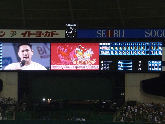 連日猛暑日となる首都圏。先日勇んで京王電鉄バスグループに登場したエルガハイブ リッドを記録しに出かけましたが、炎天下の辻立ちは四捨五入で不惑の仲間入りとなる 小生の体には堪えました。そんなバテた体にムチ打ち、今日は西武ドームで観戦です。 まあ不快なサウナに出かけたと思えば・・・。 楽天先発の田中は、プロ野球新記録の21連勝達成なるか? 試合は両先発投手の防御率通りの結果となりました。 埼玉西武 1 - 3 東北楽天 田中は昨年からの21連勝を見事達成。小生、プロ野球の歴史に残る試合をこの目で観 ることが出来ました。 西武は先発野上の力投も同点に追いつくのが精一杯。結果論ですが初回無死2・3塁で 3・4・5番の凡退が非常に痛かったです。 明日は秩父が舞台となったアニメ「あの日見た花の名前を僕達はまだ知らない」とのタ イアップ企画。結構話題となったアニメで、秩父鉄道などでもイベントを開催しています。 西武ドームのイベント内容は「らき☆すた」デーと同じく女性声優さん中心となる模様。 ゆきあつは来ないのか。 PR