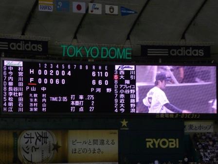 忍者ブログの仕様変更により、ブログ記事作成方法など色々試行錯誤しております。ただ、不惑近い小生のカタい頭には厳しいところ。ネタがないとかではなく、ただただ更新が面倒になってきました。ということで、今回は野球観戦ネタでブログ更新嫌いをリハビリです。 やってきたのは東京ドーム。北海道日本ハムファイターズ対福岡ソフトバンクホークス3連戦の2戦目を観戦です。 この3連戦は「レジェンドシリーズ」の後半戦。両チームとも、かつてのユニフォームを纏います。ファイターズは東京時代最終モデルの「Fs」ユニフォーム、ホークスは南海ホークス最終ユニフォームで登場。ファイターズが過去のユニフォームを試合で着用するのは初めてとか。 残念ながら試合中に過去の映像を流すことも無ければ、ファイティーもギョロタンも現れず。日本ハムファイターズはもう札幌のチームだということをあらためて実感しました。オレンジ色のアストロズユニフォームより、札幌移転時に登場したユニフォームの方が先に復刻しそうです。 試合はソフトバンク先発武田がボール先行のリズムの悪いピッチングで長時間ゲームの予感。対する日本ハムも先発武田勝が踏ん張れず、継投も失敗し6回表に同点に追いつかれます。6回表終了時点で試合開始から3時間5分。 翌日の仕事や終バスの絡みもあり、8回裏終了時点で観戦ギブアップ。試合開始から4時間5分で東京ドームを後にしました。 ちなみに試合は、12回表にようやく3点を追加したソフトバンクが9 - 7で勝利。パリーグ最長記録となる6時間1分のゲームとなりました。あきらめて帰ってよかった。 PR