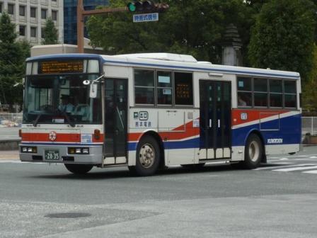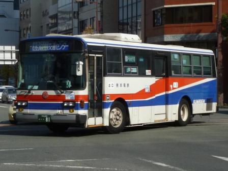 「熊本で見たバス2013」と題したバス画像のよせ集め。 熊本22か2833.2013年5月記録。 熊本22か2833.2013年10月記録。 改造工事は数ヶ月の間に行われている模様。 熊本200か107.2013年7月記録。 熊本200か107.2013年10月記録。 行先表示といえば、LED表示機への交換改造も地味に進んでいます。 最近では純正ボディのエルガノンステップが最近LED行先表示となりました。ただ、LEDへの改造対象車が新しい順で行われいないところが熊本電鉄のポイント。同年式のHRやJPノンステップ車はまだ方向幕車となっているのですが・・・。 熊本22か2835.2013年7月記録。 熊本22か2835.2013年10月記録。 富士7EボディのUAがLED行先表示に改造されました。そこそこの経年車ですので、改造対象車となったことは驚きました。 ※ ※ ※ ※ 熊本22か2437.2013年10月記録。 さて、今年も熊本電鉄はまとまった台数の移籍車を導入し、古参車代替を進めています。 2013年10月に記録出来た古参車だったのが、西工ボディのいすゞLVでした。 熊本200か81.2012年12月記録。 最後まで残った富士5EボディのLVはどうやら2013年早々に代替となった模様。熊本電鉄からP規制車が姿を消すのも時間の問題となってきました。 PR