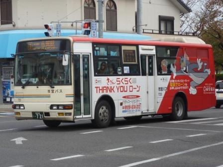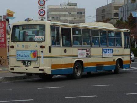 奇数月末はバスマガジンの感想めいたものを書いたエントリで締めくくる拙ブログですが、普段購入している書店の売り場には予告掲載の発売予定日に並んでおらず。それでなくても発売日から月末まで短いのですから致命的。よって今月も月末までのエントリ作成に間に合うことは出来ませんでした。ということで、前回に引き続いての2013年11月に佐賀へ出かけた際に記録したバス画像よせ集めとなります。今回は佐賀駅周辺で記録出来た佐賀市営バスのツーステップ車画像を中心に並べていきます。 内容は2012年に更新したものとほぼ同じ、むしろ2012年編のほうがバリエーションに富んでいることをあらかじめおことわりしておきます。 車号:683. 車号:685. 佐賀市営バスこと佐賀市交通局は4メーカーの車両を所有しています。ここ数年の導入で中型ノンステップ車が主力といえる状況になりましたが、まだまだツーステップ車も運用に入っています。まずは日野純正ボディでけっこう手の込んだ帯塗装デザインが特徴の旧塗装車。側面最後部の窓が横引違となっているのは、日野中型車のみの採用。 上下で車両が異なり申し訳ありませんが、登録番号が連番ながら車号が飛んでいる事にお気づきになろうかと。これは佐賀市交通局の車号付番で4と9を欠番としているため。末尾4・9及び40・90番台が欠番となっているので、車号がナンバープレートの進み具合以上に飛びます。行先表示は古参車もLEDに改造されています。 車号:705. こちらはいすゞ純正ボディの中型車。手入れの問題なのかよく分かりませんが、佐賀市交通局の車両はボディの汚れが目に付きます。 車号:711. シンプルな帯塗装デザインの現行塗装に塗り替えられた日野中型車。 車号:712. リヤ側のみで申し訳ありませんが、先ほど並べた日野車と同時期に導入したいすゞ中型車。こちらも現行塗装に似ていますが、裾部のオレンジ帯にエンジの細い帯が入る過渡的な塗装デザインとなっています。それにしてもボディの黒ずみ汚れがひどい・・・。 車号:713. 西工ボディで、いわゆるスペースランナー顔の中型車。この車両は佐賀バスセンターとゆめタウン佐賀を結ぶ路線専用車となっています。行先表示が方向幕仕様で残る数少ない車両。 車号:716. 同じく西工ボディでスペースランナー顔の中型車で、このあたりの導入車から側面窓を上部引違の逆T字と呼ばれる仕様に変更しています。こちらもゆめタウンラッピング広告車で、佐賀バスセンターとゆめタウン佐賀を結ぶ路線専用車となっています。 車号:717. 標準塗装車の行先表示はLEDに改造済みです。 車号:723. 佐賀市営バスでは少数派の三菱ふそう車。当時の佐賀市営バスでは画像のように前中扉折戸仕様を標準仕様としていましたが、同時期導入の724号車はなぜか前後扉仕様。異端的な存在となっています。 車号:738. 西工スペースランナー顔のUD中型車。この車両はワンステップ車となっています。 車号:113. 日野の小型バスも在籍しています。赤一色が標準塗装ですが、屋根上のベンチレーターを見る限り退色著しい模様。この車両は現在サガン鳥栖応援企業によるラッピング広告車となっています。 佐賀市交通局では90年代後半に東京都交通局からまとまった台数の移籍車を導入していました。新車代替で台数を減らし、見たところ元都市新バスな日野車のみが残っている模様。ただ、この車両もLED行先表示に改造されたことから、もう少し使うということでしょうか。 PR