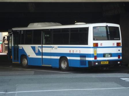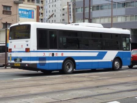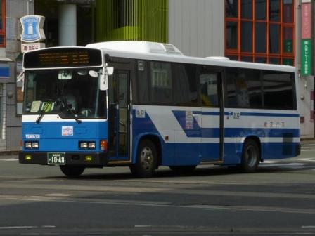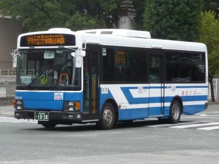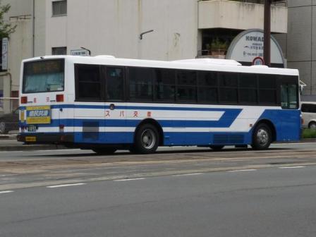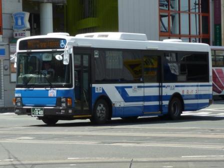 「熊本で見たバス2013」と題したバス画像のよせ集め。 9月以来となる九州産交グループ編その5では、熊本市内で記録出来た熊本200か1030~1050番台までの一般乗合車両を並べていきます。 なお、並べている画像は九州産交バス所属車と地域子会社を統合した産交バス所属車が混在していることをあらかじめ御理解・御了承願いします。 ※型式・年式は『BJハンドブックシリーズS85 九州産交バス』(2014),BJエディターズを参照し、2015年4月14日に追記しました。 熊本200か1031.KL-JP252NAN(00年車)。 京王電鉄バスグループからのJPノンステップ車が移籍車として登場。この手の車両も移籍車としてごく普通に見られるようになるとは時の流れの速さを実感します。ちなみに京王電鉄バスグループからのJP移籍車は熊本バスにまとまった台数登場することになります。 自社発注車はノンステップ車特別塗装となっていますが、こちらは九州産交バス一般塗装で登場。また熊本200か929など、これまでのノンステップバス移籍車と異なり、「NONSTEP BUS」の表記は特に見当たらず。 熊本200か1038.KK-LR333J1(00年車)。 熊本200か1039.KK-LR333J1(00年車)。 いすゞLRワンステップ車を中心とした中型移籍車が続々と登場。いすゞの中型車はKK規制車販売開始時にモデルチェンジし、現在に続くエルガミオとなります。初期車は交通バリアフリー法の施行前ということから、ワンステップ車でも車椅子用スロープが無い仕様も製造していました。この車両がまさにスロープ無しのワンステップ車で、京浜急行バスグループからの移籍車。登録番号連番で2台が在籍しています。どちらの車両も移籍導入時に屋根上換気扇の取り付け改造を行っているようです。 熊本200か1040.KK-LR233J1(00年車)。 同じくエルガミオの移籍車ですが、こちらは中扉に車椅子用スロープを装備しています。換気扇機器配置など外観からこれといった特徴の無いことが特徴の京成バスグループからの移籍車。 熊本200か1048.KK-RJ1JJHK(02年車)。 日野中型移籍車も導入。中扉ガラスの「自動扉」表示や後面ガラスの「HINO」ロゴなど、前所有者の名残はありますがよく分からず。 ※型式を参照した『BJハンドブックシリーズS85 九州産交バス』によれば、長野県川上村の自家用登録車とのこと。 熊本200か1050.KK-LR233J1(02年車)。 熊本200か1051.KK-LR233J1(02年車)。 熊本200か1052.KK-LR233J1(02年車)。 エルガミオ移籍車導入が続きます。川崎鶴見臨港バスからのワンステップ移籍車で3台在籍。 熊本200か1053.KC-UA460LSN(99年車)。 中型移籍車がひとしきり登場したところで大型移籍車。新京成バスグループからの富士7EボディUAワンステップ車。(※2013年12月20日正面・扉側画像追加・コメント修正) PR
