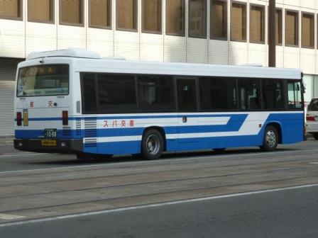 「熊本で見たバス2013」と題したバス画像のよせ集め。 今回の九州産交グループ編その6では、熊本市内で記録出来た熊本200か1060以降の一般乗合車両を並べていきます。 なお、並べている画像は九州産交バス所属車と地域子会社を統合した産交バス所属車が混在していることをあらかじめ御理解・御了承願いします。 ※型式・年式は『BJハンドブックシリーズS85 九州産交バス』(2014),BJエディターズを参照し、2015年4月14日に追記しました。 熊本200か1060.KC-UA460LAN(00年車)。 西武バスからUAワンステップ移籍車が登場。側面窓の銀サッシが目立ちます。九州産交バスに富士7Eボディワンステップ車が着々と増えていきます。 熊本200か1065.KC-HU2MLCA(00年車)。 熊本200か1066.KC-HU2MLCA(00年車)。 続いて登場したのが、大阪市交通局からの日野HUツーステップ車。市営バス時代に装備していた後輪カバーは取り外しています。自社発注の中型車は前後扉仕様で導入しているとはいえ、大型車にも前後扉仕様を導入するとは驚きです。 熊本200か1070.KC-HU2MLCA(00年車)。 大阪市営交通局からのHU移籍車が続々と登場しています。 熊本200か1083.KC-HU2MLCA(00年車)。 まとまった台数が在籍していると書いておきながら、リヤ側が記録出来たのはこの車両だけ。 熊本200か1086.KK-MK23HJ(00年車)。 神奈川中央交通からの三菱ふそうMK移籍車も引き続き登場しています。 熊本200か1088.KL-HR1JNEE(01年車)。 京王電鉄バスグループからJPに続き、日野HRが登場。やはり九州産交バス一般塗装となっています。それにしても前後扉仕様のツーステップ車とノンステップ車を並行して導入することになるとは・・・。 PR