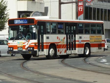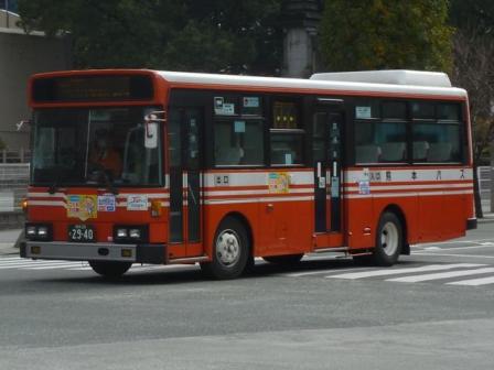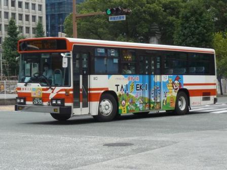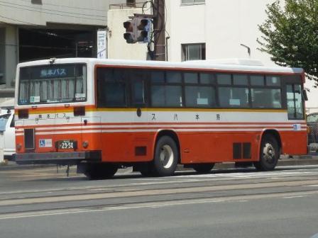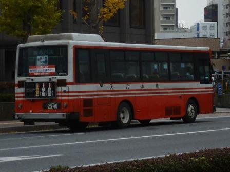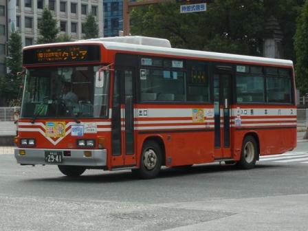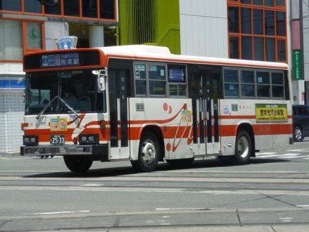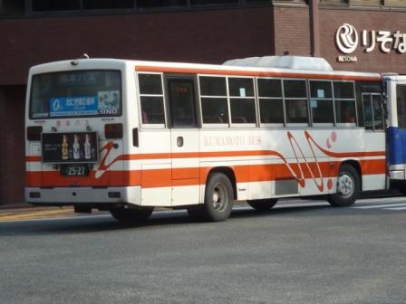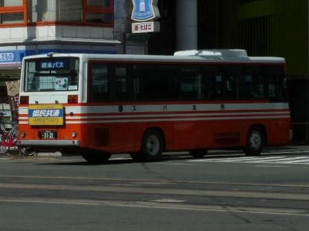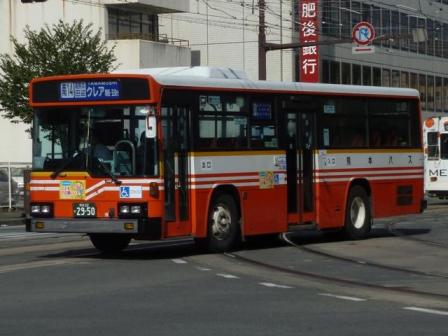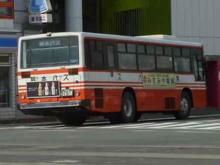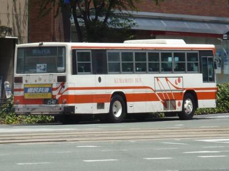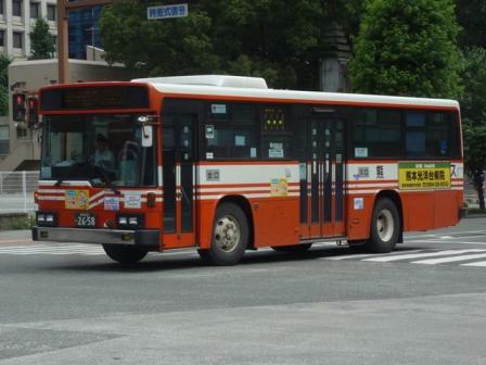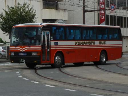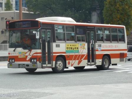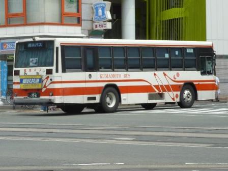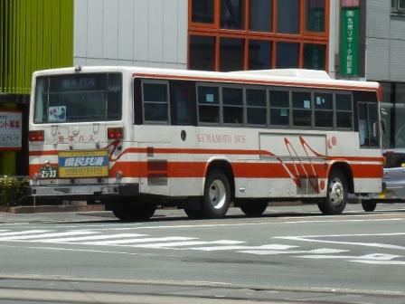 「熊本で見たバス2013」と題したバス画像のよせ集め。 今回の熊本バス編その3では、記録出来た熊本22か2500~3100番台の一般乗合車画 像を並べていきます。軽めの更新にしたいと考えていましたが、結局2012年編とほぼ同じ内 容となってしまいました。 熊本22か2512. 日野純正ボディはU規制車で若干モデルチェンジしました。モデルチェンジしたところを除けば、 P規制車同様のテールライトを採用するなどこれまでの熊本バス仕様を継続しています。 このあたりの車両もボディ更正のタイミングで現行塗装に塗り替えられたようです。 なお、上下の画像で記録日時が異なっています。 熊本22か2527. 丸1つ目ライトの熊22ナンバー以来となる日野中型車。やはり現行塗装に塗り替えられています。 熊本22か2529. 熊本22か2528. P規制車から引き続き登場した三菱ふそうエアロバススタンダードデッカー。上下で車両が異 なり失礼します。 熊本22か2533. 西工ボディの日野車。なお、熊本バスでは後部の行先表示を使用せず、「熊本バス」幕で固定 しています。 熊本22か2547. 同じく西工ボディですが、こちらはいすゞ車。 帯部の塗装を比べると、先ほど並べた日野車と若干異なっていることにお気づきかと・・・。 熊本22か2548. U規制車でいすゞの大型車にも純正ボディが登場。西工ボディ車と異なり、ビルドインクーラーを 採用しています。 熊本22か2658. 県内他社局に比べると仕様変化が少なかった熊本バスですが、この年の導入から扉側のフ ロントガラスが一段下がったB-Ⅱを採用。あわせて側面窓も上部引違の逆T字と呼ばれる 仕様に変更しています。 まずは久々に登場した西工ボディの三菱ふそう一般乗合車。旧塗装となっており、帯デザイ ンの関係で側面・後面の大きな「熊本バス」表記がポイント。 熊本22か2659. 少ないながらも同時期に複数車種を導入するところが熊本バスをはじめとした地方事業者の 特徴。西工B-Ⅱボディのいすゞ車で、ビルドインクーラーを採用。 長らくサントリー熊本工場の工場見学送迎バスとして活躍してきましたが、2011年にその役 目をBRCハイブリッド車に譲り、以後一般乗合車として運用中です。乗合車への転用にあたり、 現行塗装への塗替や行先表示のLED改造などが行われています。 熊本22か2940. 中型車は純正ボディで導入してきた熊本バスに、西工ボディの中型車が初登場。さらに熊本バス 初となるワンステップ車となっています。行先表示はLEDに改造されています。 熊本22か2941. 純正ボディも並行して導入していますが、こちらはツーステップ車で仕様が異なります。 熊本22か2950. 中扉にリフトを装備した西工ボディのいすゞLV。窓下の黄色ラインが目印です。 熊本22か3119. KC規制車となった西工ボディのいすゞLRワンステップ車。テールライトが変わりました。 熊本22か3120. 純正ボディのいすゞLRも同時導入。西工ボディ同様ワンステップ車となっています。 2013年も熊本22ナンバー末期に登場したの7mサイズのMJワンステップ車の熊本22か3284 は記録できませんでした。 PR