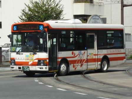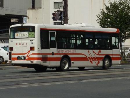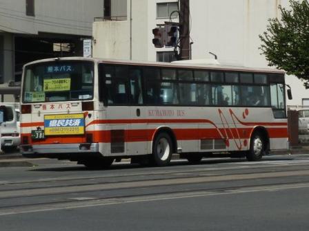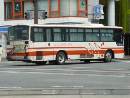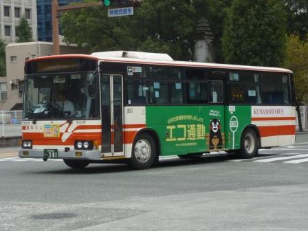 新ネタが無いので出来る限り続けていきたい「熊本で見たバス2013」と題したバス画像の よせ集め。今回の熊本バス編その4では、記録出来た熊本200か100~300番台の一般 乗合車画像を並べていきます。 なお、ノンステップ車の型式・年式は『バスラマインターナショナル』,ぽると出版 各号掲載の 「ノンステップバス採用実績」を参照しました。 熊本200か118. 熊本200か119. 新車導入が少なくなった熊本バスですが、この年は西工ボディのいすゞLRワンステップ車を 2台導入。これまで使用していなかった後面の行先表示も活用しています。 とはいえ、一般乗合車の代替は移籍車をメインとしており、この頃は北九州市営バスからの 移籍車をまとまった台数導入しています。 熊本200か262.KK-LR233J1改(03年車)。 03年は純正ボディのいすゞLRノンステップ車を1台導入。オーソドックスなつくりですが、側面行先 表示を中扉後に装備しているところがポイント。 熊本200か325.KK-HR1JKEE(04年車)。 04年は日野HRの9mサイズを1台導入。側面行先表示位置はLR同様中扉後に装備。 今のところ、この車両を最後に熊本バスでは一般乗合車の新車導入を見送り、移籍車で の代替をすすめることになります。 熊本200か381. いよいよワンステップ車の移籍車が登場。京浜急行バスから三菱ふそうエアロスターK移籍車で、 車内は京浜急行時代と変わらず前中扉間両側とも横向きのシートとなっています。 この車両は2012~2013年の間に視野確認窓を撤去する改造を受けました。 熊本200か382. こちらは視野確認窓が残る原型タイプで運用中です。京浜急行バスからのエアロスターK移籍 車は2台在籍しています。 熊本バスではこれまで熊本市営バス、長崎バス、北九州市営バス、名鉄から移籍車を導入して いましたが、現在は動態保存的に残る熊本市営バスからのリベット付なブルドック1台を除き代替 されています。エアロスターKも他事業者ではそろそろ全車引退となっていますが、P規制車がま だまだ現役な熊本バスですから、もうしばらく活躍するものと推測。 PR