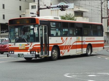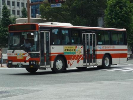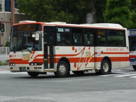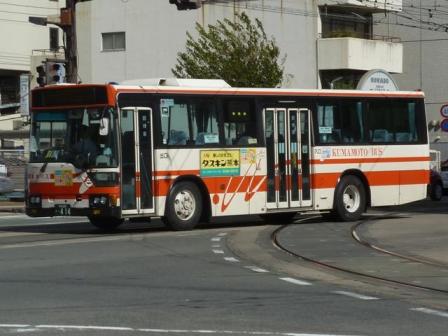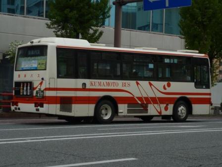 「熊本で見たバス2013」と題したバス画像のよせ集め。 今回の熊本バス編その5では、記録出来た熊本200か400~499番台の一般乗合車画像を 並べていきます。 熊本200か400. 一般乗合車の代替は移籍車のみとなった熊本バス。遠州鉄道から三菱ふそうMP移籍車を導入。 中扉4枚折戸仕様や、長距離路線に対応した立派なシートの内装、おまけにリヤの行先表示が遠 州鉄道時代から無いことなど、いろいろと熊本バスにぴったりな仕様です。 熊本200か403. 熊本200か412. 熊本200か414. 遠州鉄道からのMPはまとまった台数移籍しています。 熊本200か434. 県内他事業者で大人気移籍車モデルとなったのが京浜急行バスからの日野ワンステップ車。 熊本バスにも登場しました。内装はエアロスターK移籍車同様、京浜急行バス時代ほぼそのまま で運用しています。 熊本市営バスの路線移譲が行われることもあり、この頃から県内大手の九州産交バスも積極的 な移籍車導入を進めることになりました。 熊本200か462. 京浜急行バスからの日野ワンステップ移籍車は画像の車両のほか、こちらもまとまった台数が 移籍しています。 熊本200か477. 熊本市営バスが運行していた御幸木部への路線移譲を受けるにあたり、様々な事業者から 中型移籍車を導入します。最初に登場したのが阪急バスからの三菱ふそうMK短尺車。 短尺のため前中扉仕様という、阪急バスでも少数派だった車両が熊本バス入りしました。 熊本200か496. 中扉4枚折戸で側面引き違い全開窓仕様の日野HTツーステップ車は千葉の阪東自動車から の移籍車。阪東自動車時代と変わらず中扉後方は横向きの三方向シートの内装で運用中です。 阪東自動車の塗装デザインに影響を受けたことは間違いないと思われる塗装で登場。申し訳 ない程度の赤帯が赤バスらしさでしょうか。 後部の行先表示は阪東自動車時代の大型サイズの表示機を活用し、大きな「熊本バス」幕で 固定されています。 PR
