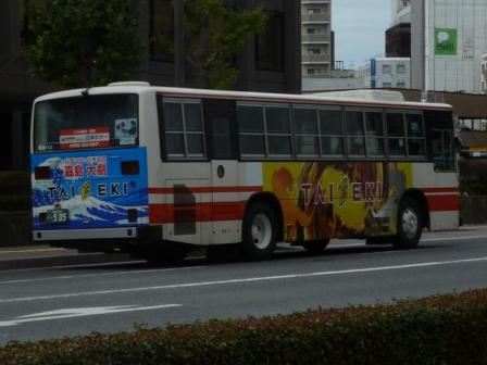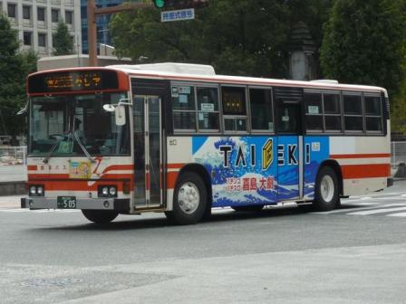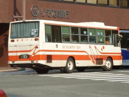 「熊本で見たバス2013」と題したバス画像のよせ集め。 今回の熊本バス編その6では、記録出来た熊本200か500~540番台の一般乗合車画像を 並べていきます。やたらと細かく括っているのは、更新回数を稼ぐため。こんなことばかりやって いるからアクセス数が減るわけなんですが。 熊本200か505. まずは京成バスグループからの日野HTツーステップ移籍車。この車両は沿線のパチンコ屋 「大劇(TAIGEKI)」のラッピング広告車となっています。「大劇(TAIGEKI)」は2013年の熊 本のラッピングバス界で有力なスポンサーといえます。 熊本200か513. せっかくなので京成バスグループからの日野HT移籍車もう1台。熊本バスで京成系事業者 からの移籍車導入はこの2台のみとなっていますが、熊本県内では少ない台数ながらコンス タントに導入されています。 熊本200か516. 熊本市営バスからの路線移譲のため、熊本バスでは中型車をかき集めました。当時は、 移籍車となるような中型車はまだまだ少ない状況。このため佐賀の昭和自動車から移籍 車にしては当時でも古い印象だったP規制車を2台導入しています。 1台は純正ボディの日野RJで、東武子会社系事業者→昭和自動車→熊本バスと複数事 業者を渡り歩いた車両です。 熊本200か532. もう1台はUDのRM。北九州市営バスからの移籍車でUD車を導入していましたが、さらに 富士6Eボディがお目見えすることになるとは・・・。側面T字窓仕様で車内はシートや細かい 表示類に昭和自動車時代を色濃く残しています。 熊本200か534. 純正ボディのいすゞLRは、山口の船木鉄道から2台導入。こちらは移籍車としては年式的に 妥当なU規制車です。 熊本200か539. せっかくなので船木鉄道からの移籍車をもう1台並べておきます。 PR