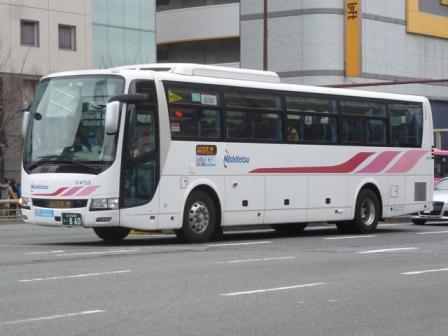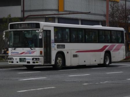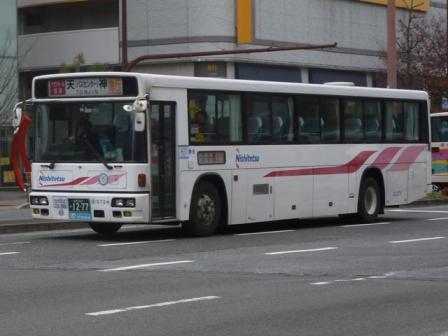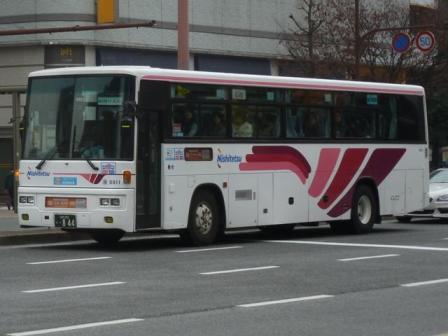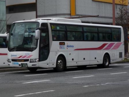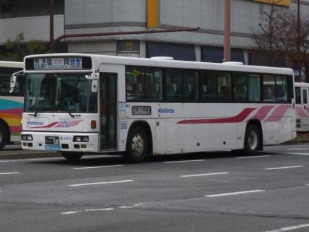 昨年9月に「BJハンドブックシリーズS81」の感想めいたものを書いたエントリで、手持ちの 西鉄高速車の画像を並べました。ただ、福岡県外で記録した画像中心だったため、近距離 高速塗装のS型やB型高速車の画像は数枚しか並べていませんでした。 2014年1月に出かけた福岡市天神付近で西鉄の高速車画像をまとまった枚数記録するこ とが出来ましたので、「天神で見た西鉄の高速車」と題したバス画像のよせ集めをスタートし ます。今回のその1では記録出来た三菱ふそう車を並べていきます。 なお、型式・年式は、『BJハンドブックシリーズS81 西鉄バス(高速貸切バス編)』(2013), BJエディターズ を参照しました。 社番:3159.KC-MS829P(96年車)。 まずは1980年代後半~90年代の西鉄の短・中距離高速車の主力として導入していた西 工S型ボディ車。かつては路線毎に独自の仕様や塗装も見られましたが、車両共通化など 効率化のため徐々に整理され、このデザインが現在短・中距離高速車の標準カラーとなって います。 社番:3321.KC-MS829P(98年車)。 リヤ側を記録出来た車両はこれだけなので並べておきます。非常口下のパネル周囲にサビ が目立ちます。 社番:3335.KC-MS829P(98年車)。 サビといえば、こちらの車両はトランクリッド上部のボディ部に大きめのサビ穴が目に付きます。 見ていると、車両ごとに結構コンディションが異なる模様。 社番:3505.KL-MP35JP(00年車)。 短・中距離高速車両の導入コスト削減のため、観光型シャーシーのハイデッカーではなく MPシャーシーに一般乗合車のB型ボディを架装した「新特急車」と呼ばれる高速車が登場。 画像の車両はトランクサイズを拡大した量産第1陣導入6台のうちの1台。トランクリッド上辺 がボディ部にくいこんでおり、トランク拡大に苦労の跡が見られます。 社番:3616.KL-MP35JP(01年車)。 翌年導入のこの車両から設計を見直し、トランクリッド上辺とその他のパネル部の上辺が揃 えられスッキリしました。 社番:3724.KL-MP35JP(02年車)。 2002年導入車からサブエンジン式冷房からオートエアコンを採用。 社番:3922.KL-MP35JP(04年車)。 こまかい仕様変更を加えながら、三菱ふそう車の「新特急車」は04年まで導入。 社番:4701.QRG-MS96VP(13年車)。 社番:4723.QRG-MS96VP(13年車)。 後述する事情から短・中距離高速車への三菱ふそう車導入が控えられていました。 西工解散後もジェイバス製造の「新特急車」を導入しましたが、2013年に観光型シャーシーの ハイデッカー導入を再開。久々に短・中距離塗装の三菱ふそう車が登場しました。 社番:3911.KL-MS86MP(04年車)。 続いては福岡県外路線などで運用中の中・長距離高速車で西工S型ボディのトイレ付車。 短距離高速車同様、こちらもかつては路線毎にオリジナルデザインの塗装を採用していま したが、現在は「火の鳥」カラーと呼ばれるこの塗装デザインに統一されています。 なお、西工ボディへのMSシャーシー供給がPJ規制車から中止されたことから、三菱ふそう 車の導入がしばらく少なくなりました。 社番:3672.QRG-MS96VP(12年車)。 西工S型ボディの製造中止後、「火の鳥」カラーの中・長距離高速車の主力となったのが E-ⅢボディのUD車でした。しかし、UDは国内のバス事業から撤退し、西工ボディはそ の影響を大きく受け解散。「火の鳥」カラーの高速車に11年車から三菱ふそう車が復活し ました。12年導入車からQRG規制車となっています。 社番:4730. 型式を参照したBJハンドブックシリーズ刊行以後に登場したMS。 PR