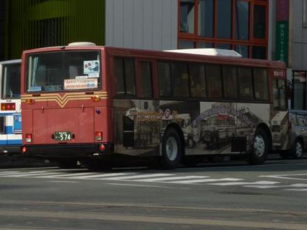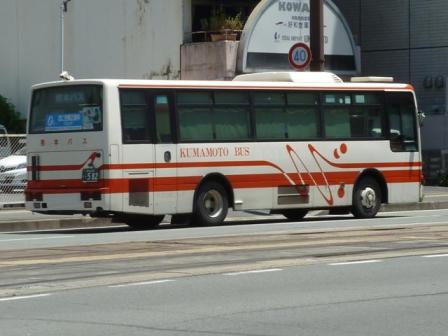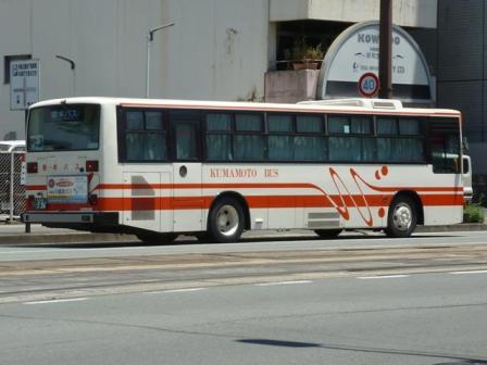 「熊本で見たバス2013」と題したバス画像のよせ集め。 今回の熊本バス編その7では、記録出来た熊本200か550~590番台の一般乗合車画像を 並べていきます。 熊本200か565. 熊本200か559. 最初から上下で車両が異なり失礼します。京浜急行バスグループからの三菱ふそうMPワンステップ移籍車。塗装は熊本200か496に突如採用された阪東風デザインで登場しています。 熊本200か574. 阪東自動車から日野HT移籍車をリピート導入し、富士7Eボディの日野車が熊本バスに初登場となりました。画像の車両は熊本バス90周年で登場した記念ラッピング車の2代目となり、年数部分を毎年貼り変えています。 熊本200か575. 阪東自動車からの移籍車ですが、阪東風塗装は採用せず一般塗装で登場。 なお、富士7Eボディの阪東自動車からの移籍車は大型の後部行先表示を撤去しています。 車内は阪東自動車時代と変わらず、後部は三方シート仕様となっています。 熊本200か578. おなじみの京浜急行バスグループからの移籍車で富士ボディのいすゞLVワンステップ車が 登場。 熊本200か582. 阪急バスから三菱ふそうMKをリピート導入。今回は短尺車でないので、当時の阪急バスで 標準的な前後扉仕様となっています。「熊本で見たバス2012」シリーズで並べていなかった 車両をようやく記録することが出来ました。 熊本200か592. 京王電鉄バスグループからのJPワンステップ移籍車。U規制車のJPで、熊本バス初のスロープ付き移籍車です。 熊本200か596. 京浜急行バスグループからの日野HTワンステップ移籍車。この車両は2012年9月まで 「くまもと美里町の石橋めぐり」のラッピング広告車となっていました。 熊本200か597. 同じく京浜急行バスからの日野HTワンステップ移籍車。この車両は前面行先表示横に運賃 支払方法など京浜急行バス時代の表示をそのまま残しています。 PR