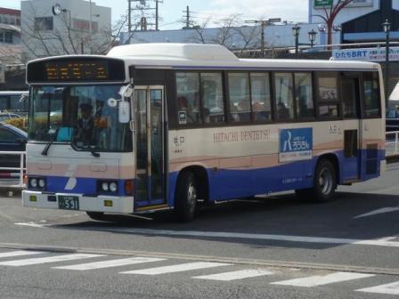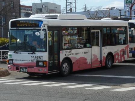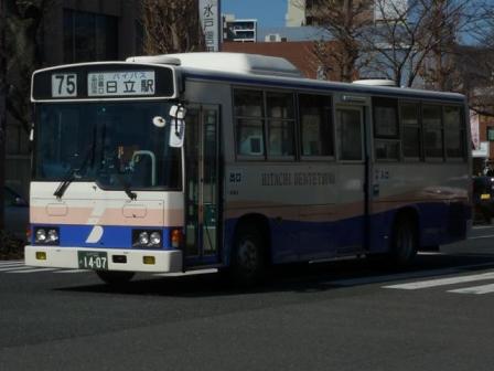 2月に刊行された『バスラマインターナショナル 142号』の感想めいたものを書くため、茨城県日立市へ出かけました。幸いにも好天に恵まれ、感想めいたエントリで使う以上の枚数を記録することが出来ました。交通費もかけているので、このままHDDの肥やしにするのは勿体無い。更新するブログのネタも無いので、題して「日立で見たバス」と、なんの捻りもなく数回に分けて並べていきます。今回のその1では、記録出来た日立電鉄交通サービスの日野車画像のよせ集めです。 型式・年式は、「日立電鉄交通サービス 在籍車両一覧」『バスラマインターナショナル142号』(2014),ぽると出版 を参照しました。 水戸22あ1188.P-RJ172CA(89年車)。 日立電鉄交通サービス生え抜き車では最古参格となる89年車。正面方向幕は今では小さく見える標準サイズを現在も装着しています。正面に貼られたラッピング広告は、日立電鉄交通サービスで絶賛展開中の「ワイドバスマスク」。かなり目立ちます。 水戸22あ1407.U-RJ3HJAA(91年車)。 このあたりの車両になると方向幕が大型化し、系統幕と行先幕を分割しています。 旧塗装から現行塗装に塗り替えられた車両は少ない模様。 水戸22あ1408.U-RJ3HJAA(91年車)。 こちらは旧塗装で残る車両。古参車でもラッピング広告車が多数在籍しています。 水戸22あ1525.U-RJ3HJAA(92年車)。 92年車もほぼ同様の仕様。この車両は「ワイドバスマスク」を装着しています。旧塗装のリヤ側を記録できたのはこの車両だけでした。 水戸22あ2105.U-RJ3HJAA(91年車)。 前後扉仕様の中型車は移籍車となります。画像の車両は元事業者が分かりません。 水戸200か173.P-RJ172CA(89年車)。 視野確認窓など特徴的な仕様が特徴の京阪バス移籍車。側面逆T字窓などから新しく見えますが、実はP規制車。 水戸200か591.U-RJ3HJAA(93年車)。 日立電鉄鉄道線廃止代替バス運行にむけ、南海バスからまとまった台数の移籍車を導入。 水戸200か757.U-RJ3HJAA(93年車)。 こちらも南海バスからの移籍車。 水戸200か1409. 再掲となりますが、「ひたちBRT」カラーで登場したばかりのKRノンステップ車。運転席側の側面窓は、メーカー標準の中央部1枚固定ガラスとなっています。 PR