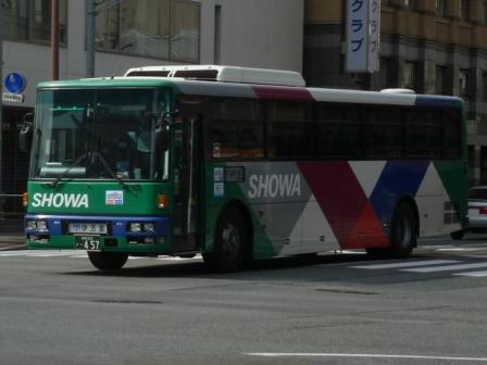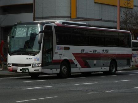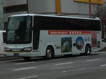 2014年1~2月に福岡市内で記録したバス画像のよせ集め「福岡市内で見たバス」シリーズ。 今回は宮崎・鹿児島・佐賀、そして西鉄を除く福岡県内事業者をまとめて並べていきます。福岡市内と各県を結ぶバラエティに富んだ高速車両をどうぞ。 <宮崎交通> 宮崎200か223. 宮崎交通は福岡市内と宮崎市内を結ぶ「フェニックス号」と延岡市内を結ぶ「ごかせ号」2路線の共同運行事業者です。画像の車両は「フェニックス号」の運用に入っていた側面固定窓仕様で床下仮眠室を装備するPJ規制車の三菱ふそうMSハイデッカー。床下仮眠室は「フェニックス号」に夜行便設定があったことの名残。 <南国交通> 鹿児島200か366.KL-MS86MP(04年車)※1。 続いては鹿児島県内事業者の南国交通。鹿児島市内と福岡市内を結ぶ「桜島号」の共同運行事業者です。記録出来た車両は床下仮眠室を装備した三菱ふそうMSスーパーハイデッカーのエアロクィーンⅠ。 <いわさきバスネットワーク> 鹿児島200か117.KL-RA552RBN(01年車)※2。 「桜島号」の共同運行事業者に2事業者が名を連ねている、いわさきグループ。いわさきバスネットワークは林田バスを引き継いだ事業者。運用車両のメインとなっているのが01年に5台導入した側面固定窓仕様の富士1Sボディ。画像の車両はいわさきグループの「白露酒造」ラッピング広告車となっています。 <鹿児島交通観光バス> 鹿児島22き940.KC-MS822P(97年車)※2。 いわさきグループの「桜島号」共同運行事業者もう1社が鹿児島交通観光バス。いわさきグループ内のめまぐるしい組織変更で、いつの間にか共同運行事業者に名を連ねていたという印象。画像はグリーントライアングル塗装の三菱ふそうMSエアロクィーンⅠで、導入時は鹿児島交通に在籍していました。側面固定窓仕様で床下仮眠室を装備しています。 鹿児島200か431.KL-RU1FSEA(04年車)※2。 こちらは日野セレガRのGDで、側面固定窓+床下仮眠室など先ほど並べたMSとほぼ同仕様。岩崎美術館のラッピング広告が貼られています。 鹿児島交通観光の「桜島号」専用車に現代ユニバースが導入されたようですので、いつかは乗車してみたいところ。 <昭和自動車> 佐賀200か191. 佐賀県唐津市に本社をもつ昭和自動車。かつては福岡市中心部に乗り入れる一般路線バスを運行していましたが、数年前の路線再編で撤退。福岡市中心部へは「からつ号」、「いまり号」、「いと・しま号」といった高速路線のみとなっています。高速車の主力となっているのが西工E型ボディ。初期導入車両はサブエンジン式冷房を採用しています。この車両は伊万里PRラッピング車となっていました。 佐賀200か244. 佐賀200か243. 昭和自動車では高速車両にも移籍車導入を行っています。前扉折戸+フロントガラス左右分割の日野セレガFS。扉側後部に荷物用?扉を装備し、運転席側にある非常口は中央部と、なかなかユニークな仕様となっています。上下で車両が異なり失礼。 佐賀200か371. フロントバンパー形状からU規制車と分かる三菱ふそうMSハイデッカーは、どうやら移籍車の模様。昭和自動車は佐賀・福岡両県に営業所があるため、転属によるナンバープレートの変更も少なくありません。登録番号と合わない年式の車両が移籍車なのか転属車か、在籍車両を把握していない余所者に判別は困難です。 佐賀200か393. 佐賀200か457. 尿素SCRエンジンのRAとなった西工E型高速車。西鉄同様、直結冷房仕様となっています。 昭和自動車の高速車にはこのほか富士ボディの車両や最近登場した現代ユニバースなどバラエティに富んでいます。次回行く機会があれば、このあたりの車両を記録したいところです。 <ジェイアール九州バス> 車号:748-04551(略称8451).KL-RA552RBN(04年車)※3。 ジェイアール九州バスはコーポレートカラーの赤一色ボディで、高速車は「HIGHWAY」表記が入ります。 側面固定窓仕様の西工SD-Ⅰボディ。宮崎ナンバーは「フェニックス号」の専用車両です。 ちなみに扉横の4ケタ数字は複雑な社番を略した「ドア番号」とよばれるもの。さらにボディ後部に大きく書かれた「75」という2桁の数字は「デザイン数字」です。 車号:748-05554(略称8554).KL-RA552RBN(05年車)※3。 鹿児島ナンバーの車両は「桜島号」専用車。鹿児島土産で有名な「かるかん」などを販売する薩摩蒸氣屋のラッピングを貼っています。 車号:644-11566(略称4166).LKG-MS96VP(12年車)※4。 LKG規制車の三菱ふそうMSで、こちらも鹿児島配置車両。屋根上直結冷房で側面固定窓仕様のエアロエースです。 <九州急行バス> 長崎200か116. 福岡市内と長崎市内とを結ぶ高速乗合バス「九州号」を運行している九州急行バス。本エントリでは1月に更新したエントリで並べられなかった車両をいくつか。まずは複数台数在籍しているという「龍馬が愛したまち・長崎」ラッピングの旧マスクな西工C-Ⅰボディ。窓を開けたらラッピングの龍馬さんがおかしなことになりそうなラッピングデザインです。 長崎200か696.LKG-MS96VP(11年車)※5。 西日本車体解散で純正ボディ車が九州急