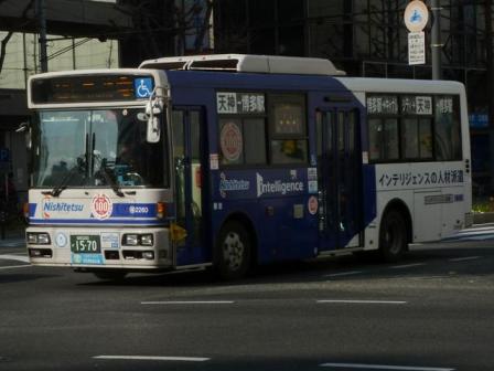 2014年1~2月に福岡市内で記録したバス画像のよせ集め「福岡市内で見たバス」シリーズの派生系。福岡市内で見られるバスの代名詞、西日本鉄道の一般乗合車画像を並べていきます。今回のその2では、記録出来たいすゞ中型車編です。 なお、型式・年式は、『BJハンドブックシリーズS82 西鉄バス(一般路線バス編)』(2013), BJエディターズ を参照しました。 社番:2117.PA-LR234J1(06年車)。 福岡市内中心部の一般乗合車は大型車ばかりですが、「福岡都心100円循環バス」が中型車メインの運用となっています。西工ボディのUD車と画像のPA規制車のいすゞLRワンステップ車など比較的年式の新しい車両が専用車となっています。 また、運行エリアが福岡都心ということもあり、専用車のほとんどがラッピング広告車となっています。正面帯色をラッピング広告にあわせて変更するところが西鉄バスの特長。この車両は九州をメインとする製パン企業の「フランソア」がスポンサー。感動的と一部で話題となった佐藤好春作画による同社テレビCMのアニメキャラクターが描かれています。 社番:2118.PA-LR234J1(06年車)。 こちらも「福岡都心100円循環バス」専用車。正面帯色は黄緑色となったラッピング広告車。ラッピング広告スポンサーは「くばら」こと「久原醤油」で博多の名店「岡ぽん」のサラダキットをPR。 社番:2260.PA-LR234J1(07年車)。 07年導入車からミラーステー形状を変更。 画像の車両は「福岡都心100円循環バス」専用車。やはりラッピング広告車となっており、正面帯色が青色となっています。 社番:2276.PA-LR234J1(07年車)。 旧塗装のいすゞLR。福岡市中心部ではラッピング広告車となっていない中型車を見かけるほうが少ない印象。 社番:2799. 西日本車体解散後は大型車同様、純正ボディの導入となります。 現行「SMART LOOP」塗装のノンステップ車で中扉は引戸仕様となっています。 社番:2812. 2013年後半導入のいすゞLRノンステップ車。 「SMART LOOP」塗装はラッピング広告車にする場合、正面の帯をどう処理するのか疑問でした。そんな個人的疑問の答えがこの車両、正面を旧塗装風デザインのラッピングで対応しています。 PR ![]() ![]() |