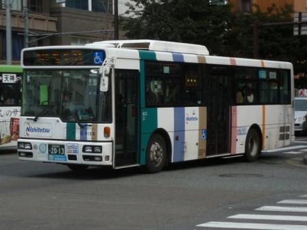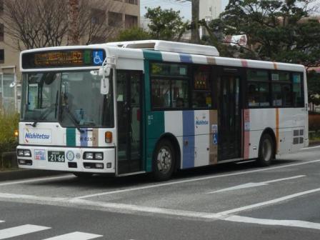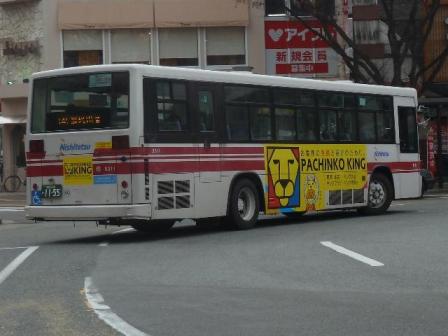 2014年1~2月に福岡市内で記録したバス画像のよせ集め「福岡市内で見たバス」シリーズの派生系。福岡市内で見られるバスの代名詞、西日本鉄道の一般乗合車画像を並べていきます。今回のその3は、記録出来たUD大型車編です。 なお、型式・年式は、『BJハンドブックシリーズS82 西鉄バス(一般路線バス編)』(2013), BJエディターズ を参照しました。 社番:5607.KL-UA452MAN(01年車)。 今回記録出来たUDの大型車は01年以降の導入車のみ。まずはエアサス・ワンステップスロープ付きとなった01年車。このあたりの車両は08年より採用された「SMART LOOP」塗装への塗替えが進んでいます。 社番:5608.KL-UA452MAN(01年車)。 ちなみに連番の車両は旧塗装のまま。塗替えは時間の問題でしょうか。 社番:9100.KL-UA452MAN(04年車)。 03年にUDの標準バスボディが西日本車体へ集約されると、大型・中型問わず西鉄のバスはUD車の導入第一となりました。ちなみに側面窓は02年以降、T窓とよばれる下部が開くタイプに変更されました。 社番:9279.KL-UA452MAN(05年車)。 日清チキンラーメンのラッピング広告車。正面の帯色はチキンラーメンの袋デザインと同色に変わっています。 社番:9311.KL-UA452MAN(05年車)。 この車両は中扉後ろ側と、運転席側ホイールベース間のみのラッピング広告車。西鉄バスのラッピング広告は2種類あり、こちらはハーフタイプとよばれるタイプです。 社番:9654.PKG-RA274MAN(07年車)。 尿素仕様となったRAワンステップ車。この車両もハーフラッピング車です。 社番:6123.PKG-RA274MAN(10年車)。 08年より現行塗装の「SMART LOOP」が登場。 社番:6172.PKG-RA274MAN(10年車)。 RA初期車のテールライトはマイクロバスのシビリアンと同じものを採用していましたが、のちに汎用テールライトに変更。リヤガラス下中央部にはストップランプもつきました。 社番:6257.PKG-RA274MAN(10年車)。 西日本車体が解散する2010年は、まとまった台数のRAを導入。おそらく西鉄に最後まで残る西工ボディ車となるのでしょうが、この車両が代替される15~20年後の在籍車両は予想もつきません。 PR
