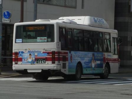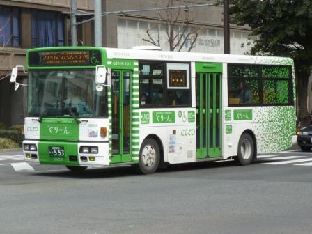2014年1~2月に福岡市内で記録したバス画像のよせ集め「福岡市内で見たバス」シリーズの派生系。福岡市内で見られるバスの代名詞、西日本鉄道の一般乗合車画像を並べていきます。今回のその4は、記録出来たUDの中型車・中型幅低床車編です。 なお、型式・年式は、『BJハンドブックシリーズS82 西鉄バス(一般路線バス編)』(2013), BJエディターズ を参照しました。 社番:9129.KK-RM252GAN(04年車)。 今回は中型車メインの「福岡都心100円循環バス」運用車両中心となります。UD車は、西工ボディのCNGノンステップ車が循環バス専用車となっています。その2で並べたいすゞ車同様、ラッピング広告車となっている車両がほとんど。 社番:9401.KK-RM252GAN(06年車)。 こちらの06年車は日野のエンジンを搭載したPB規制車となる年式ですが、CNG車のため引き続きUD純正エンジンを搭載したKK規制車として登場。このため、フォグランプ周りをマイナーチェンジ+シビリアンテールを採用したKK規制車というレア車になっています。ラッピング広告のスポンサーは棒ラーメンでおなじみの「マルタイ」。 社番:9534.KK-RM252GAN(06年車)。 同じく06年導入のCNGノンステップ車。こちらはハーフラッピング車となっているので、正面など西鉄旧塗装が見られます。 社番:9624.PK-JP360NAN(07年車)。 「福岡都心100円循環バス」専用車には、JPノンステップ車も在籍しています。JPは北九州線代替バスなどで多数導入されましたが、PK規制車のJPはわずか2台のみの在籍となっています。 ラッピング広告スポンサーはアベックラーメンで知られる熊本の「五木食品」。 <福岡シティループバス「ぐりーん」専用車> 社番:5720.KK-RM252GSN(02年車)。 福岡シティループバス「ぐりーん」は福岡都心部の主要な観光スポットを約85分かけて循環する周遊観光バス的要素もある乗合バス。2008年9月より運行を開始し、現在は土曜・日曜・祝日及び長期休暇期間に運行しています。特徴的な塗装からお分かりの通り、車内外装のデザインはドーンデザイン研究所によるもの。内装はシートや床など木のインテリアを多用しています。 社番:5721.KK-RM252GSN(02年車)。 「ぐりーん」は04年式のRMワンステップ車4台が専用車となっていますが、この車両のみ車内シート配列が3方向タイプとなっています。 PR