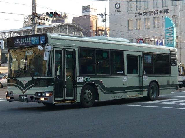 昨日の続きです。割と新しめの車両が中心になります。 型式等は『バスラマインターナショナル』各号の新車導入一覧を参照しています。 337、KL-HU2PMEE改(02年式)、ブルリシティノンステ。 685、KL-LV834L1(03年度導入車)、エルガノンステ。 702、KL-UA272KAM改(03年度導入車)。西工、エアコンがデンソーなので日野か と思いました。奥が深い世界です。 722、KL-HU2PMEE(03年度導入車)。02年式とクーラー形状が異なります。 988、KL-HU2PMEE(04年度導入車)。ノンステ標準仕様となります。ステッカー付。 1462、PJ-KV234N1(06年度導入車)。サモキンクーラーでKVとは・・・。 小生レベルではとうてい判別が不可能です。 1478、PJ-KV234L1(06年度導入車)。こちらもKV、尺が短めなのはワンステの為。 西工の判別が出来ないということが痛いほど分かった京都の旅でした。 なお、撮影地は西賀茂車庫と北大路バスターミナルです。 PR
