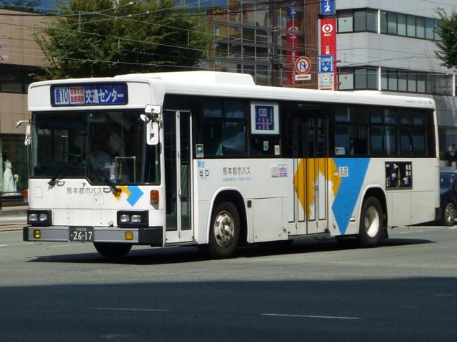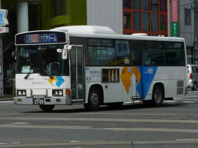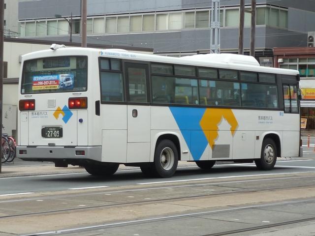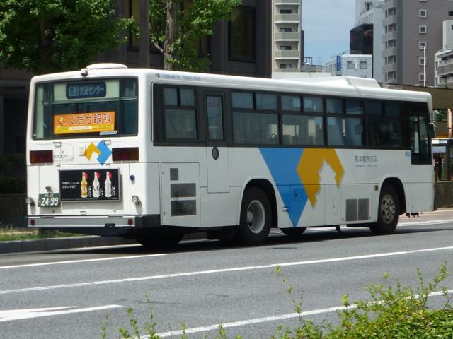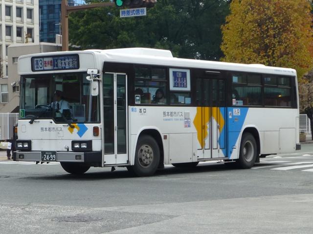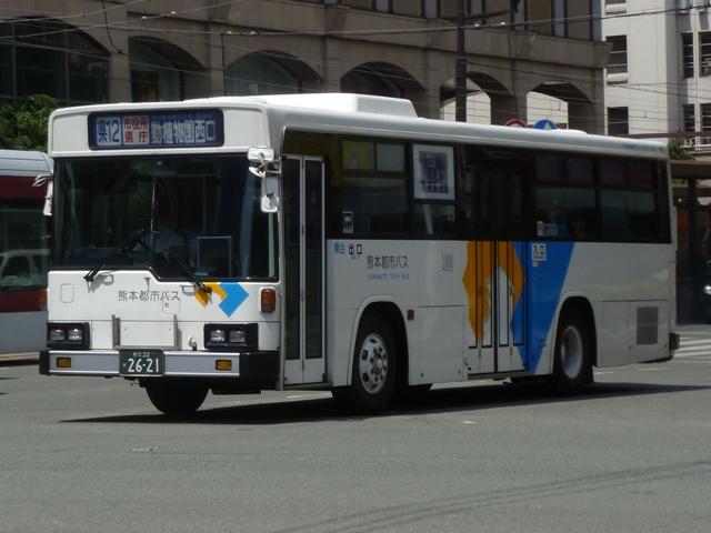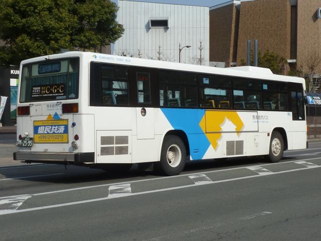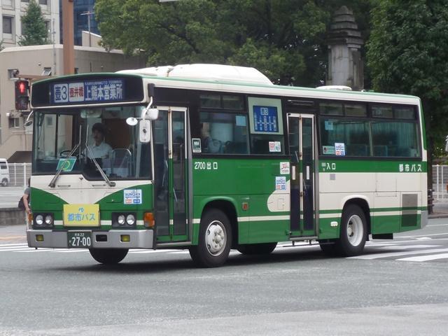 2014年に記録した画像をメインに、多少2015年の画像も混ぜ込んだ「熊本で見たバス2014-15」と題したバス画像のよせ集めシリーズ。 今回は路線移譲にともない熊本市営バスから熊本都市バスへ転籍した、バラエティ豊かな車両編です。「熊本22か」ナンバーの車両だけでも結構な分量となるので、画像を2回に分けて並べていきます。その1では、記録出来た89~92年車編です。なお、今回並べた画像の車両が既に代替されている可能性もあることをあらかじめお断りしておきます。 型式・年式は 「熊本市交通局・熊本都市バス在籍車両一覧表」『バスマガジン65号』,(2014),講談社ビーシー/講談社 を参照しました。 熊本22か2315.P-LV314M(89年車)。 まずは最古参格となるP規制車のいすゞLV。側面逆T字窓仕様の西工58MCボディのため、それほど古さを感じさせませんが、熊本市内一筋27年目を迎えます。 熊本市営バス塗装で運行している都市バス車両は、動物看板を掲示していた正面部に、「都市バス」の看板を掲示しています。 熊本22か2321.P-LV314M(89年車)。 同じく89年導入のいすゞLVですが、こちらは都市バス塗装に塗り替えられています。早い段階で熊本都市バスに転籍した車両は、古参車も塗り替えの対象となりました。 熊本22か2461.U-MP218M(90年車)。 熊本市交通局が90年に導入した大型車は、三菱ふそうMPの標準尺車と日野HT短尺車。まずは市営バス塗装で残る三菱ふそうMP。 熊本22か2499.U-HT2MLAA(90年車)。 こちらは都市バス塗装に塗り替えられた日野HT短尺車。 熊本都市バス発足後しばらくして、正面動物看板部分に「都市バス」の看板を掲示するようになりました。当初は塗り替えた車両も「都市バス」看板を掲示していましたが、2012年4月から市営バス塗装の車両のみに変更。2013年初め頃から看板枠の撤去が始まり、ご覧のようにスッキリとした車両を見かけるようになりました。 熊本22か2617.U-UA440LSN(91年車)。 熊本22か2595.U-UA440LSN(91年車)。 91年導入の大型車は、UA標準尺車といすゞLV短尺車。まずはUA標準尺車。都市バス塗装に塗り替えられています。上下で車両が異なり失礼。 熊本22か2621.U-LV324K(91年車)。 こちらはいすゞLV。都市バス塗装に塗り替えられています。 熊本22か2700.U-RJ3HGAA(92年車)。 92年は大型車と中型車を導入。中型車は中扉折戸仕様で、狭隘路線の高平団地線向けに短尺車も導入していました。92年導入の中型車は純正ボディの日野RJで、うち2台が短尺車。熊本都市バス運行開始時に転籍していますが、都市バス塗装への塗り替えは行われませんでした。 熊本22か2709.U-RJ3HJAA(92年車)。 こちらは9mサイズの中型車。既に都市バス塗装へ塗り替えられています。 熊本22か2715.U-MP218K(92年車)。 大型車は、三菱ふそうMPの短尺車と日野HT標準尺車を導入。三菱ふそうMPの短尺車 熊本22か2719.U-HT2MMAA(92年車)。 こちらは日野HT標準尺車で、1台が熊本市営バスに残っています。画像の車両は2013年度に都市バスに転籍していますが、前扉部に(小峯)と市営バス時代の所属営業所標記が残っています。 PR