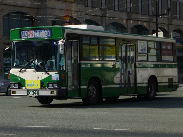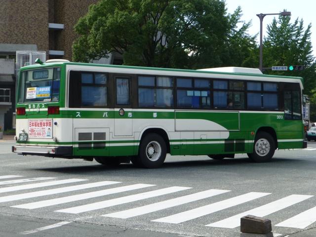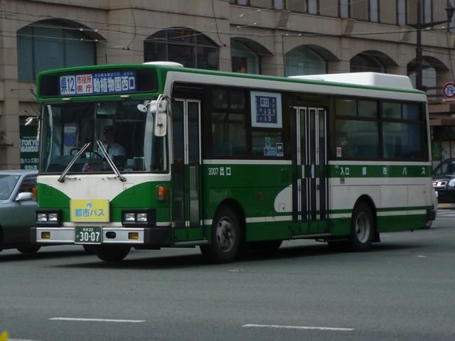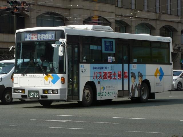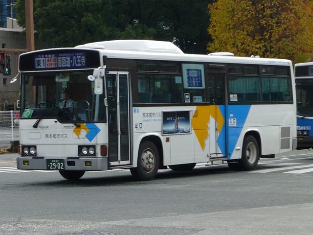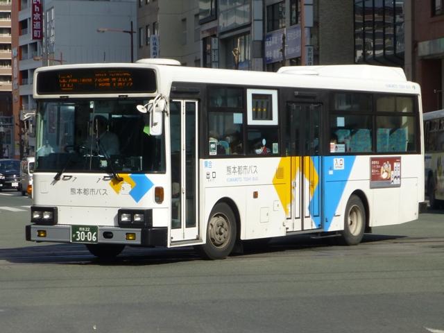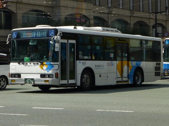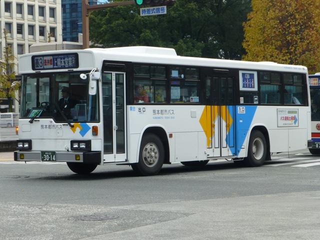 「熊本で見たバス2014-15」と題したバス画像のよせ集めシリーズ。2014年に記録した画像をメインに、多少2015年の画像も混ぜ込んでお送りしております。 前回に引き続いての熊本都市バス編その2です。今回は熊本市営バスから路線移譲により熊本都市バスへ転籍した93~99年車編です。なお、今回並べた画像の車両が既に代替されている可能性もあることをあらかじめお断りしておきます。 型式・年式は 「熊本市交通局・熊本都市バス在籍車両一覧表」『バスマガジン65号』,(2014),講談社ビーシー/講談社 を参照しました。 熊本22か2782.U-RM210GSN(93年車)。 前年に引き続き、熊本市営バスは93年も中型車と大型車を導入。中型車はUDのRMツーステップ車で、富士ボディ架装を選択。なぜ西工ボディにしなかったのかが気になるところ。仕様的には中扉折戸+側面逆T字窓という、これまでの熊本市営バスの中型車と変わりません。 熊本22か2785.U-RM210GSN(93年車)。 転籍時期により、都市バス塗装に塗り替えられた車両も在籍しています。ちなみに93年導入の大型車は、短尺を三菱ふそうMP、標準尺をいすゞLVを採用しています。短尺車のMPが熊本都市バスへ転籍していますが、残念ながら画像を記録できず。 熊本22か2891.U-MP218M(94年車)。 94年導入の大型車は、日野純正ボディで短尺のリフト付きバス1台と、三菱ふそうMPの短尺と標準尺車を採用。標準尺のMPの多くは熊本市営バスに残っていますが、画像の1台が転籍しています。 熊本22か2895.U-MP218K(94年車)。 熊本22か2896.U-MP218K(94年車)。 MPの短尺は純正ボディのエアロスターMというのが特徴。全車既に都市バスへ転籍し、塗装の塗り替えも完了しています。視野確認窓は都市バス塗装への変更で無用のものとなりました。 ちなみに純正ボディの日野リフト付きバスも都市バスに転籍していますが、小生のタイミングと全く合わず一度も見ることが出来ません。 熊本22か2902.U-RJ3HGAA(94年車)。 94年導入の中型車は92年以来となる日野RJ。92年は短尺車も導入していますが、94年は9mサイズのみ。 熊本22か3006.U-LR332J(95年車)。 熊本22か3007.U-LR332J(95年車)。 95年も中型車と大型車を導入。中型車は西工ボディのいすゞLRワンステップ車を採用。中扉が大型車同様4枚折戸仕様となっています。都市バス塗装に塗り替えられた車両、市営バス塗装で残る車両どちらも在籍しています。 熊本22か3009.U-LV324M(95年車)。 大型車は、短尺が西工ボディのUAツーステップ車と日野純正ボディで試作車扱いの「超低床バス」、標準尺がツーステップのいすゞLVとバラエティに富んだ導入。標準尺のLVは1台が都市バスに転籍しています。 熊本22か3014.U-UA440HSN(95年車)。 短尺車は全車熊本都市バスへ転籍しています。まずはUDのUAで市営バス塗装で残る車両。 熊本22か3014.U-UA440HSN(95年車)。 同じくUAで、こちらは都市バス塗装に塗り替えられた車両。 熊本22か3015.HU2ML(95年車)。 そして「超低床バス」として2台登場した日野HUワンステップ車。中扉はグライドスライド仕様で格納式のスロープを装備。型式に排気ガス記号が無いのは試作車扱いで製造されたため。画像の車両はここ最近もっぱら教習車として運用中で、前扉後ろに教官用のミラーを取り付けています。 熊本22か3016.HU2ML(95年車)。 ちなみに、もう1台の「超低床バス」は路線運用に入っています。 熊本22か3176.KC-MP747K(97年車)。 97年は、熊本市営バス初となるノンステップ車を3台導入。その1台が画像の三菱ふそうMPノンステップ車で、熊本市営バスが新車導入した唯一のMTノンステップ車です。のこり2台のノンステップ車はフルフラットなUAで、3台とも熊本都市バス運行開始時に転籍しました。古参車がまだまだ現役にもかかわらず、フルフラットなUAノンステップ車は既に廃車となっています。 熊本22か3301.KC-HU2PMCE(99年車)。 99年頃は東京都交通局からまとまった台数の移籍車を導入し、新車導入は非常に少ない状況。それでもフルフラットAT仕様の日野ノンステップ車を3台導入しています。 熊本22か3303.KC-HU2PMCE(99年車)。 こちらの車両は行先表示をLEDに改造。後面は既存車にあわせて大型のものを取り付けています。フロントには元々無かった日野のエンブレムを取り付け、カスタマイズ感アップ。 PR