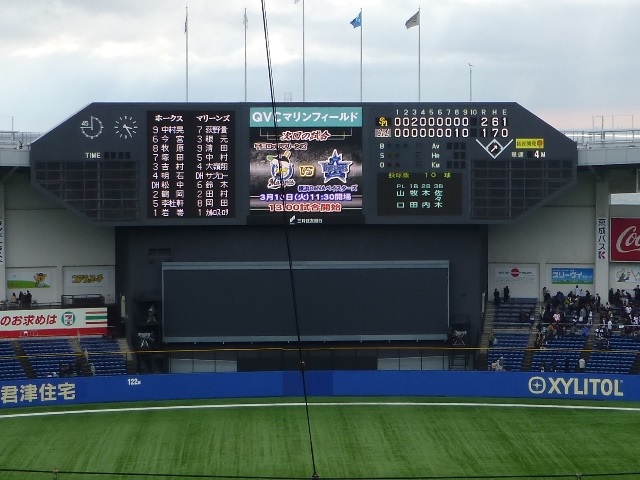 ブログの更新が結構面倒になってきた今日この頃。拙ブログでまったく人気のない野球観戦記エントリでお茶を濁す季節がまたやってきました。 ということで、2015年シーズンのプロ野球初観戦。小雨降るQVCマリンフィールドへ出かけました。 千葉ロッテ 1 - 2 福岡ソフトバンク 勝敗よりもあくまでも調整が目的のオープン戦ですが、天気も悪くおまけに寒い!怪我でもされたらたまりませんから、主力は早々に交代していきました。ロッテ先発の石川は柳田に一発を浴び、球数も少々多かったものの、5回2失点と無難にまとめました。打撃陣はもう1本が出ない状況でデスパイネが来日するまで我慢我慢でしょうか。 せっかくなのでバスの画像も1枚。今年もQVCマリンフィールドへの直通バスにグループ各社から応援を受けるようです。 PR