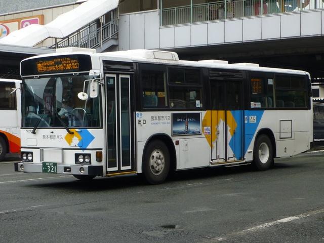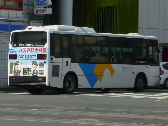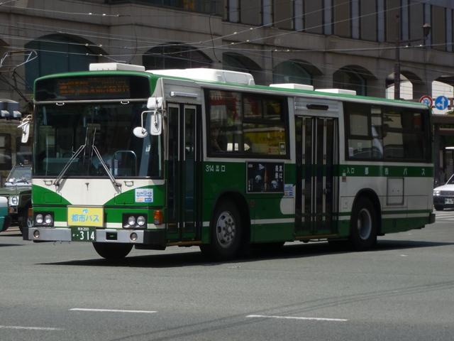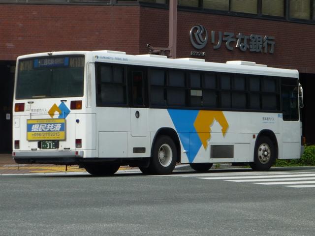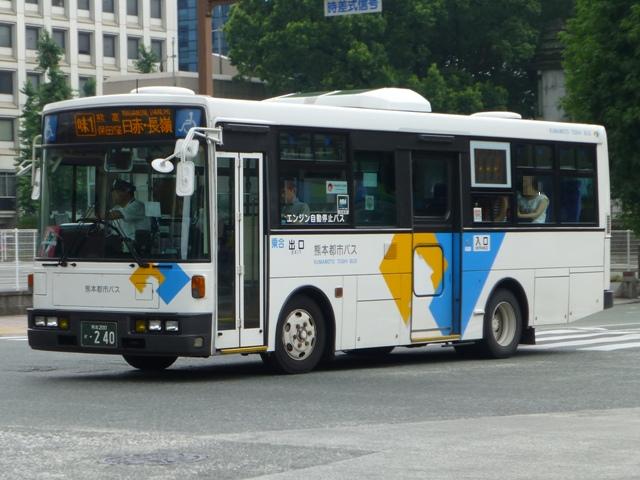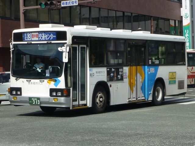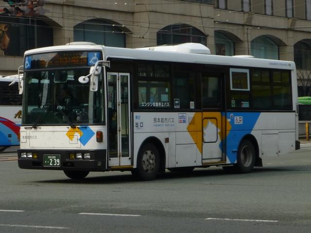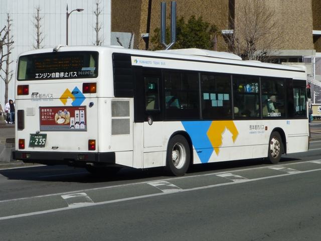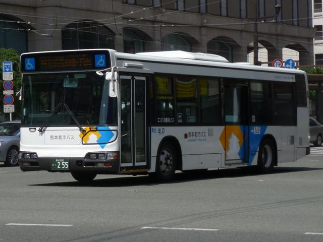 「熊本で見たバス2014-15」と題したバス画像のよせ集めシリーズ。2014年に記録した画像をメインに、多少2015年の画像も混ぜ込んでお送りしております。 前回に引き続いての熊本都市バス編。今回のその4では、記録出来た熊本200かナンバー239から321までの車両画像を並べていきます。 型式・年式は 「熊本市交通局・熊本都市バス在籍車両一覧表」『バスマガジン65号』,(2014),講談社ビーシー/講談社 を参照しました。 熊本200か239.KK-RM252EAN改(02年車)。 02年度の新車は大型・中型のノンステップ車のほか、狭隘路線用に富士ボディのRM短尺ワンステップ車を2台導入。中扉は明かり窓付引戸・3連テールライト・AT車と当時の標準的な熊本市営バス仕様となっています。正面の動物看板掲示枠を残した状態で都市バス塗装へ塗り替えたため、掲示枠撤去後も正面の社名ロゴが運転席側に寄ったままの状態となっています。 熊本200か240.KK-RM252EAN改(02年車)。 こちらは2013年4月に都市バスへ転籍。正面の動物看板掲示枠は都市バス塗装への塗り替え時に撤去しているので、社名ロゴは中央に位置しています。 熊本200か245.KK-MJ26HF改(02年車)。 中型ノンステップ車はノンステップエリアを拡大するためWBを延長した三菱ふそうMJを5台導入。3連テールライトでAT車で、熊本都市バス運行開始時に全車転籍しました。 熊本200か255.KL-HU2PMEE(02年車)。 大型ノンステップ車は日野ブルーリボンシティを導入。さすがに3連テールライトとはいかなかった模様。 熊本200か292.U-HT2MLAA(91年車)。 新車導入と並行して、東京都交通局からの移籍車も引き続き導入。都市新バス車を中心に導入していますが、希望台数が揃わなかったのか一般路線仕様の日野HTもやってきました。 熊本200か313.U-LV224K(91年車)。 都市新バス仕様の車両は日野だけでなく、キュービックボディのいすゞLVも登場。都営バス時代正面にあった愛称行灯は動物看板掲示枠設置の為撤去されましたが、ヘッドライトからターンシグナル部にかけて中途半端に飾りモール部品が残ります。都市バス塗装へ塗り替え時に枠が撤 去されたため、ヘッドライト周りが隈取りのような感じに。この車両は後部の行先表示周りの青部に都市新バス時代の名残。 熊本200か314.U-HU2MLAA(92年車)。 そして都市新バス仕様の日野HU移籍車。熊本市営バス塗装で残る車両はだいぶ減った感。 熊本200か321.U-HU2MLAA(92年車)。 せっかくなので都市バス塗装に塗り替えられた都営バス移籍車の日野HUの画像も並べてお きます。行先表示はLED改造され、後面は大型タイプを装備しています。 PR