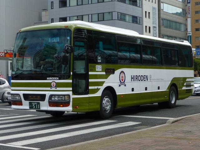 先月のバスマガジンの感想めいたものを書いたエントリの冒頭部分で、日本経済新聞朝刊で絶賛連載中の「禁断のスカルペル」についてうっかり書いてしまったところ、このキーワードで拙ブログをご覧いただいた方がいらっしゃった模様。こんなブログで本当、申し訳ありません。申し訳ついでに今月も書かせていただくと、充彦の存在は何だったの?ただ今月はスカルペルより、話題沸騰中のニトリホールディングス社長似鳥昭雄氏による「私の履歴書」でしょう。というわけで、月末恒例のバス雑誌の感想という名の、いろいろとアウトな創業社長の一代記。偶数月はバスラマこと、『バスラマインターナショナル149号』です。 特集と銘打たれたものは無い今号。頁数を割いている2つの記事が3月刊行の『バスマガジン70号』と全く同じ内容となっています。冒頭は「いすゞ“14.5型”エルガハイブリッド登場」と題し、メーカーの方へのインタビューと実際にハンドルを握ってのインプレッション記事となっています。 記事紹介のエルガハイブリッドは「基本的な構造は同一ながら採用事業者からの意見を反映してシステムのチューニングや軽量化を実施 」し、2015年1月29日より販売を開始しました。機械式ATのチューニングの改良で、けして宜しいと言いがたい評判を覆せるか気になるところ。 続いて「ヒュンダイ・ユニバースの衝突被害軽減ブレーキを韓国で体験」。現在「日本での正式認可を目標に審査 」が進められている衝突被害軽減ブレーキ搭載のユニバースを韓国内にある現代自動車の研究所で体験したインプレッション記事。書かれている内容はバスマガジンの記事と基本的に変わりありませんが、そこはバスラマ深みが違います。 レポートは今号も様々な話題を掲載。ここでは小生的に気になったものをいくつか。まずは「中国製の量産大型電気バス・BYDが日本発上陸」。前号で速報として紹介された京都急行バスの中国製大型電気バスを詳細に紹介し、あわせてBYD社担当者へのインタビューをまとめています。 京都200か3006.K9(15年車)。2015年3月に記録。 「日本市場向けの右ハンドル車で後部右側の非常口を装備するほか、車両全幅も2.5mに収まっている。ただしほかのスペックは既に世界各地で活躍中のBYD電気バスと同等で全長も12mある。このため後輪の軸重は11.46トンあり、規制緩和を受けている旨の表示がある 」とのこと。市街地の路線バスで12mは正直大きすぎ、軸重の規制緩和を抜きにしても運行可能な路線は限られそうです。ただ、BYD社担当者によれば、「1充電あたり250km走行できます。京都の場合でも200kmは走れるでしょう。充電は夜間電力を利用して1日に1回か2日に1回でいいようです。5時間あればフル充電可能です。また充電サイクルは4,000回と見込んでおり、新車で搭載したバッテリーは細かなパーツでは必要かもしれませんが、パックで交換する必要は無いはずです 」と、頼もしいコメント。 今号では、川崎鶴見臨港バスで運行を開始した国産の中型電気バス運行開始のレポートも掲載されていますが、こちらの「航続可能距離は最大40km 」。編集後記に書かれた、「国産電気バスはまだ実用の域に入っていないといっていいだろう 」という意見に納得せざるを得ません。 3月いっぱいで運行を終了した熊本市営バスについても、「熊本市営バス最終日の表情」と題して紹介するとともに、『バスラマアーカイブス02 熊本・九州の輝いていたバス達 - 昭和30・40年代に活躍を続けたローカルバスの素顔 - 』の作者でバスラマにも度々投稿を寄せている「地元の交通趣味界の重鎮 」の方によるメッセージ「市営バス終焉に寄せて」も掲載。非常に興味深いエピソードに読み応えがあります。 熊本200か948.KC-LV380L(98年車)。2015年4月に記録。 最終運行日は「セレモニーや最終運行の主役となった復刻塗装車 」。熊本市交通局で保存されるようなことはなく、熊本都市バスへ転籍しています。「都市バス」の社名表記は地色にあわせており、それなりに配慮をしている模様。車内は見たところ市営バス時代同様、懐かしい市営バスの写真が飾られていました。 事業者訪問は1998年発行の46号以来2度目の登場となる「広島電鉄」と、己斐地区を地域分社した「エイチ・ディー西広島」を紹介。 社番:74833.QKG-KV234N3(13年車)。 社内カンパニー制をやめ、事業本部へ組織再編を行った広島電鉄。記事では系統番号やバスロケーションの導入など近年の施策や、今後計画される路線再編、さらにはドライバーの確保についてなど気になる情報満載です。 ここからは小生手持ちの広島電鉄のバス画像のよせ集めです。今回この感想めいたものを書くためだけに、4月に広島へ出かけました。こんなことしているからお金が無くなるんですが。 社番:74702.PJ-KV234N1(07年車)。 まずは広島電鉄のバスの顔的存在となった日野KV。いすゞLVと判別が難しいPJ規制車の「2006年に採用が始まり、以降毎年増備され、現在は120台を超え最大勢力