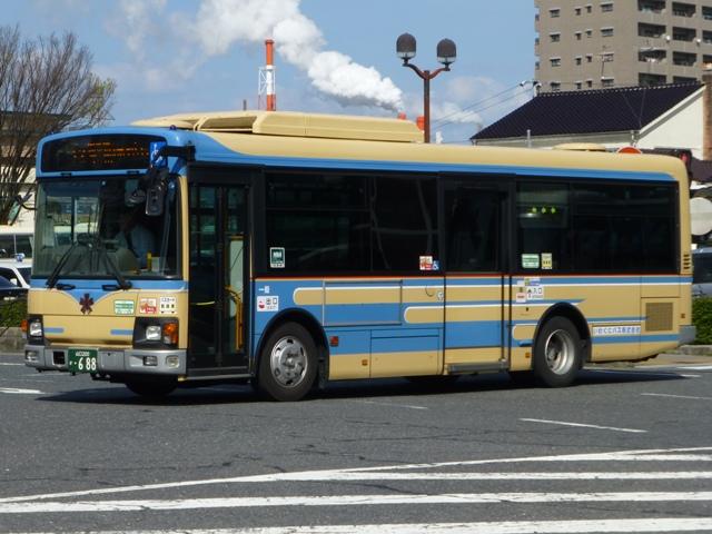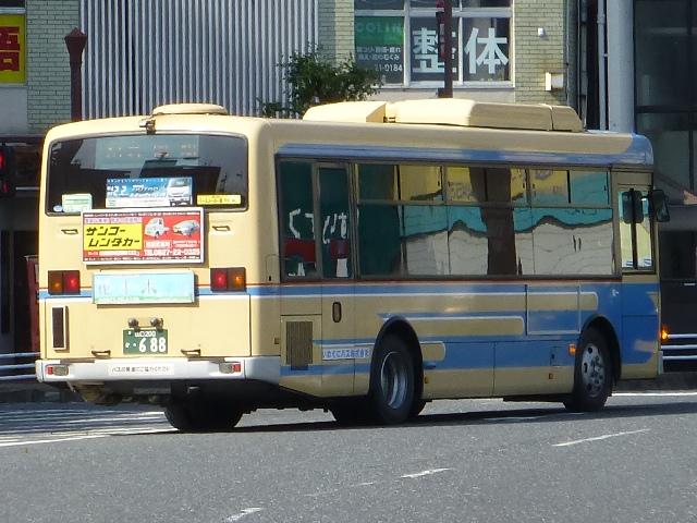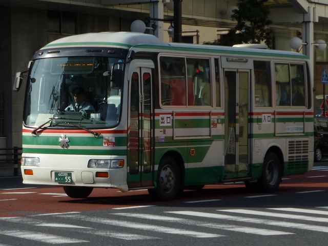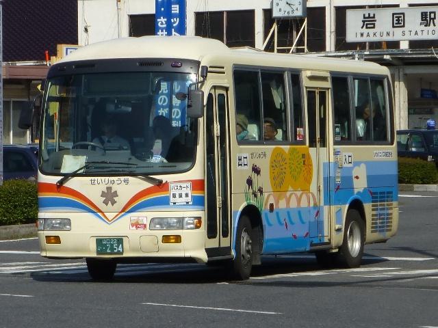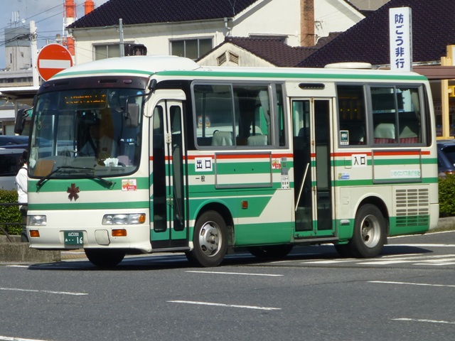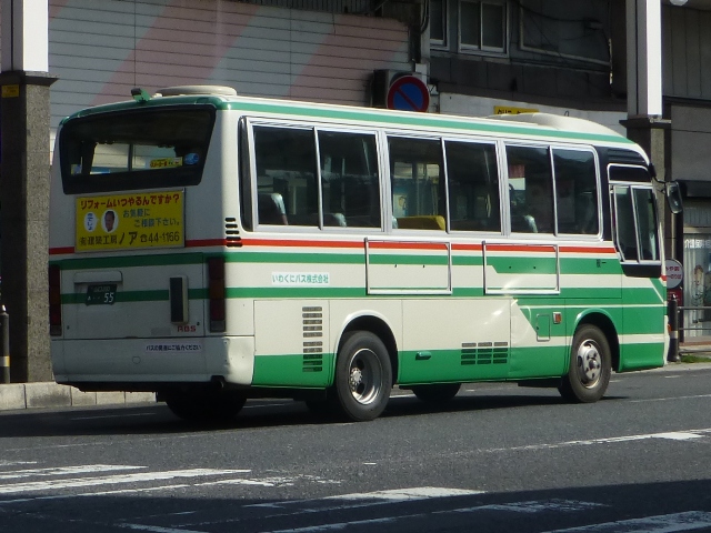 バスラマの感想めいたものをブログに書くため、4月に広島へ出かけました。せっかく広島市内へ出かけたのだからということで、2008年以来となる山口県岩国市内へも足をのばしました。 山口22う3360. 続いて一般乗合車。岩国市交通局は90年代以降中型車をメインに導入しています。画像の車両は側面上下開閉式サッシ窓で中扉4枚折戸仕様の三菱ふそうMKワンステップ車。交通バリアフリー法施行以前からワンステップ車導入を進めているのはさすが公営バスといったところでしょうか。いわくにバス完全移管後は運行本数削減もあり、「いちすけ号」や後述する小型車運行便を除くとほぼ低床車による運行となっています。 山口200か51. 200かナンバーとなったあたりから日野車の導入が増えていきます。日野中型ワンステップ車で、側面窓は上下開閉サッシ仕様でこれまでと変わらず。画像の車両は全面ラッピングの「バイいわくに号」となっており、地元いわくにの商店や業者の利用をPRしています。 山口200か116. 山口200か117. 同じく日野中型ワンステップ車。こちらの車両には側面窓上にも広告掲示枠を装備しています。 さて、岩国市交通局からいわくにバスへ転籍した多くの車両は社名の変更程度で、ほぼ市営バス時代のままとなっています。 山口200か688. ノンステップ車が登場するのは時代の流れ。1つ目ヘッドライトの日野KR。 山口230あ1892. ごく少数ですが、いわくにバスが導入した車両も在籍。画像の日野KRノンステップ車は初の自社発注車。登録番号は希望番号となっていますが、年式等をあらわすものでは無い模様。 塗装は水色1色とシンプル。ちばシティバスかと思ったのは秘密です。市営バスからの転籍車も、この水色1色塗装に塗り替えられた車両も在籍しています。 山口22か254. 小型車も少なからず在籍しており、主力となるのが日野RX。前中扉仕様でバスで言うところの小判ナンバーをつけています。まずは「せいりゅう号」と名付けられた特別塗装車。 山口200あ16. こちらの日野RXは緑色帯の入った塗装。これが小型車標準の塗装デザインで、中型車と全く異なるところがポイント。 山口200あ55. 帯の塗り分けは修正が加えられたようで、こちらの日野RXは正面側にも赤帯が入ります。 山口200か733. 小型車も低床化をということで、ロングタイプの日野HXが登場。岩国市交通局が導入した最後の新車となるのでしょうか。 <岩国錦帯橋空港アクセスバス> 山口230あ1213. 岩国基地の軍民共用化により2012年12月13日に岩国錦帯橋空港が開港。いわくにバスは空港と岩国駅を結ぶアクセスバスの運行を担当しています。専用車として登場したのが、画像の日野KVのN尺ノンステップ車。全面ラッピング車となっており、愛称は「ソラッピー」です。 <高速車> 山口22う2871. 防長交通と共同運行している高速バス「周防大橋・岩国~広島線」のうち、いわくにバスは岩国市内と広島バスセンターを結ぶ便を担当。高速バスには岩国市交通局時代の2006年に参入し、いわくにバスへ移管されました。運用車両は貸切車からの転用車をメインとしています。まずは正面行先表示の後付感が目立つ日野セレガ。 山口22う3110. 同じく日野セレガですが、こちらは岩国随一の観光名所となる錦帯橋の秋をイメージしたラッピング車となています。タイトルと異なり広島バスセンターで記録した画像で失礼。 山口22う3292. いすゞガーラの高速車も在籍。こちらは春をイメージしたラッピングとなっています。 *** *** *** *** *** いわくにバスの車両画像よせ集めは以上となりますが、せっかくなので私感を少々。 交通局から全面移管したばかりということで、岩国市交通局・岩国市営バスの名が残る案内などまだまだ見られます。急いで張り替える必要はありませんが、それにしても雑な移管です。全国的にバス事業者のドライバー不足は問題となっていますが、いわくにバスも運転士が確保できないことによる運休が2015年3月に頻発したことから、かなり深刻な状況といえそうです。公式HPを見ると運転士だけでなく、運行管理者、整備士、社長アシスタント(アルバイト)も募集中(※2015年5月11日参照)ですから、とにかく人が足りていない状況と推測。余計なお世話ながら、今後どうなっていくのか心配になりました。そんなことを思いながら岩国をあとにした4月某日でした。 PR