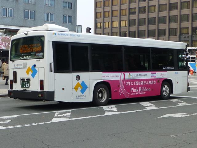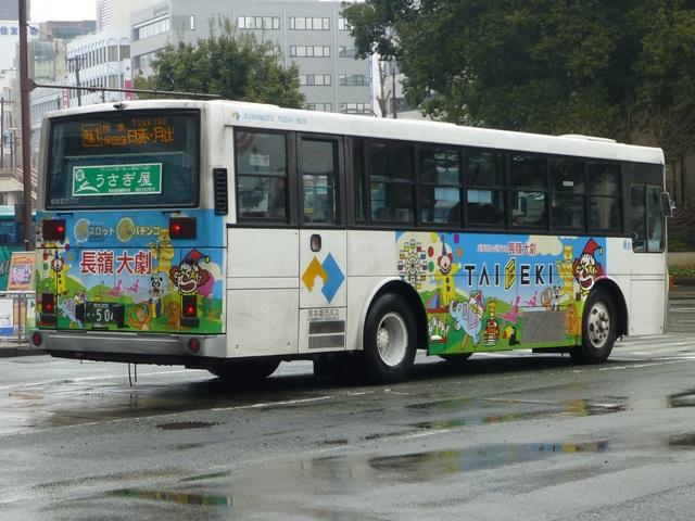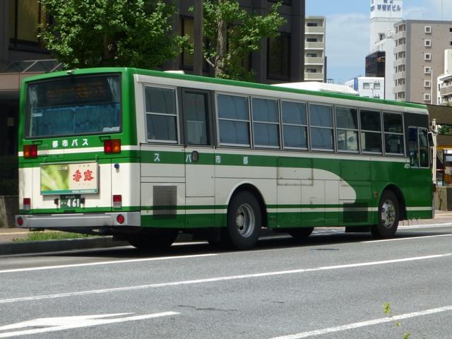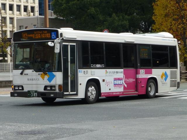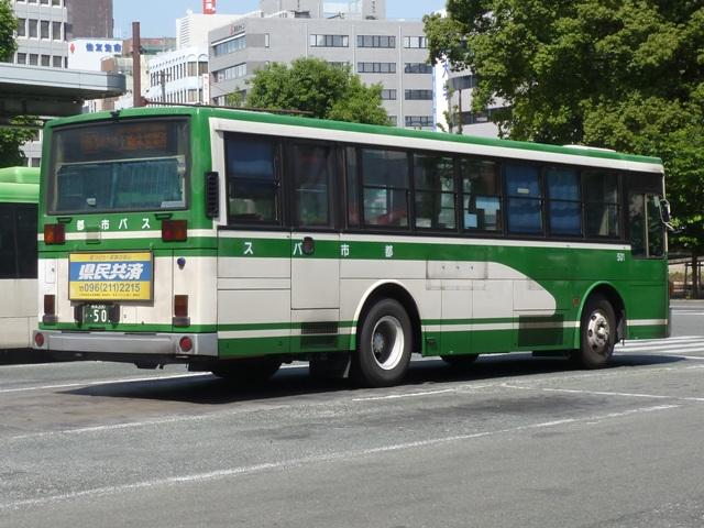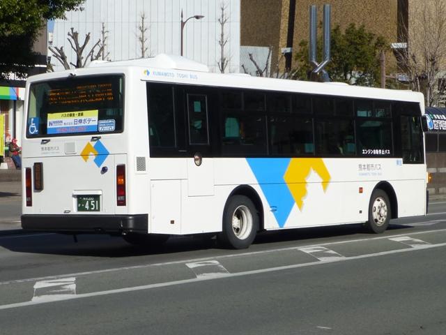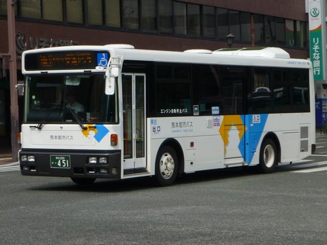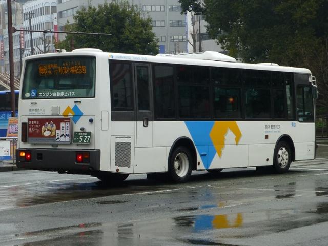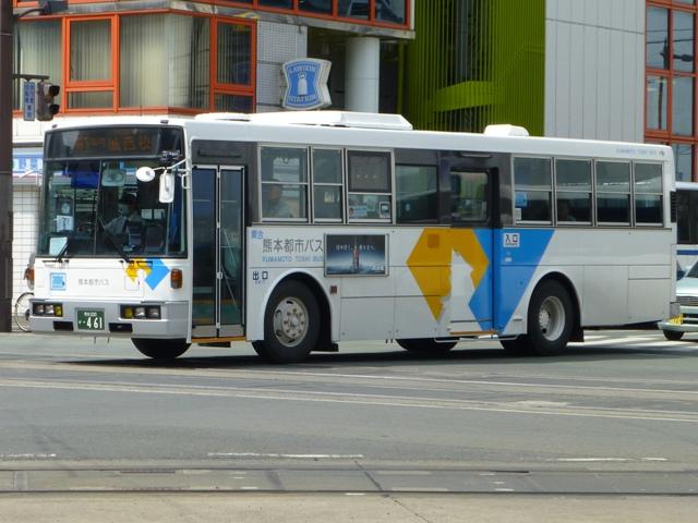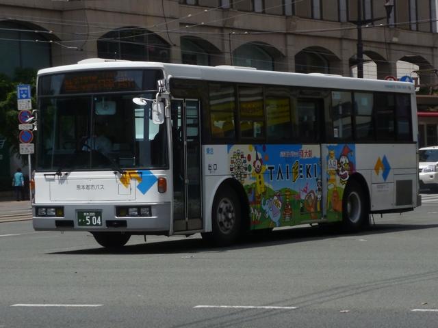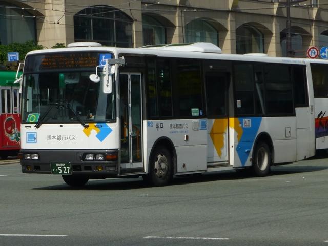 「熊本で見たバス2014-15」と題したバス画像のよせ集めシリーズ。2014年に記録した画像をメインに、多少2015年の画像も混ぜ込んでお送りしております。 前回の更新から2ヶ月近く経った熊本都市バス編その5では、記録出来た熊本200かナンバー334から527までで、かつ市営バスから2014年度までに都市バスへ転籍した車両の画像を並べていきます。 なお、型式・年式は 「熊本市交通局・熊本都市バス在籍車両一覧表」『バスマガジン65号』,(2014),講談社ビーシー/講談社 を参照しました。 熊本200か334.KK-RM252GAN(04年車)。 熊本市交通局では04年にまとまった台数の中型ノンステップ車を導入。まずは03年度予算で10台導入したRMノンステップ車。3連テールライトではなくなりましたが、中扉の明かり窓やトルコンATは引き続き採用しています。13年までに全車都市バスへ転籍しました。 熊本200か389.PB-HR7JHAE(04年車)。 こちらは04年度予算で3台導入した日野HRの9mサイズ。3台とも12年の路線移譲時に都市バスへ転籍しました。 熊本200か451.PB-RM360GAN(06年車)。 06年はRMノンステップ車を5台導入。RMノンステップ車は04年以来となりますが、搭載エンジンが変わったことや日産シビリアンのテールライトを採用したことなどから、外観が少々異なります。14年4月の路線移譲時までに全車都市バスへ転籍しました。 熊本200か461.U-UA440LSN(95年車)。 1990年代後半から熊本市営バスでは車両代替に新車と並行して、都営バス移籍車を導入していました。しかし知事の意向により都営バス車両の売却が05年以降原則解体のみとなったため、他事業者からの移籍車が登場。まずは西武バスから複数台導入したUAツーステップ移籍車。行先表示はLED式を採用したので、在来車と同じく後面は大型サイズを取り付けています。上下で塗装が異なり失礼しますが、画像の車両は最近都市バス塗装に塗り替えられた模様。 熊本200か465.U-UA440LSN(94年車)。 同じく西武バスからのUAツーステップ移籍車ですが、こちらは元3扉仕様車。移籍時に後扉を埋める大掛かりな改造を行っていますが、窓部に名残があります。ほぼ同時期に登場した熊本競輪場送迎バス専用車にも3扉車が配置されましたが、こちらは3扉全て活用していました。 熊本200か500.U-UA440LSN(94年車)。 こちらは10年と早い段階で都市バスへ転籍した西武バスからの移籍車。本山営業所配置で第1環状線の運用に入ることが多い模様。行先表示は方向幕式となっているので、後面は既存車と同じく標準的なサイズとなっています。 熊本200か501.U-LV324K(94年車)。 続いて登場したのが川崎鶴見臨港バスから富士ボディのいすゞLVツーステップ車。 熊本200か504.U-LV324K(94年車)。 同じく川崎鶴見臨港バスから富士ボディのいすゞLVツーステップ車で、こちらは都市バス塗装に塗り替えられています。エンジンの状態が悪いのか、後面の油っぽい汚れが目に付きます。 熊本200か527.PA-MK27FH(07年車)。 市営バスの新車導入最終年となった07年に2台導入した三菱ふそうMKノンステップ車。三菱ふそうの新車はMJノンステップ以来の導入。14年4月の渡鹿長嶺線の都市バス移譲にあわせて転籍しました。現在は2台とも都市バス塗装に塗り替えられています。 PR