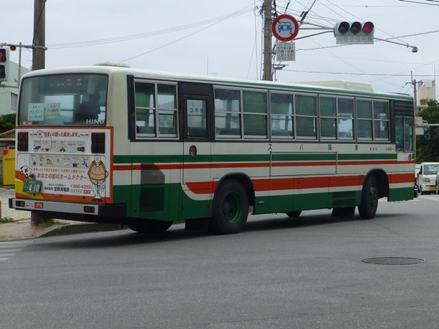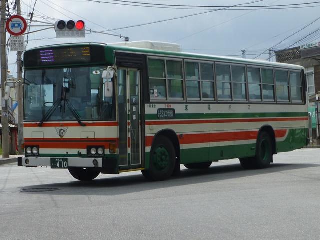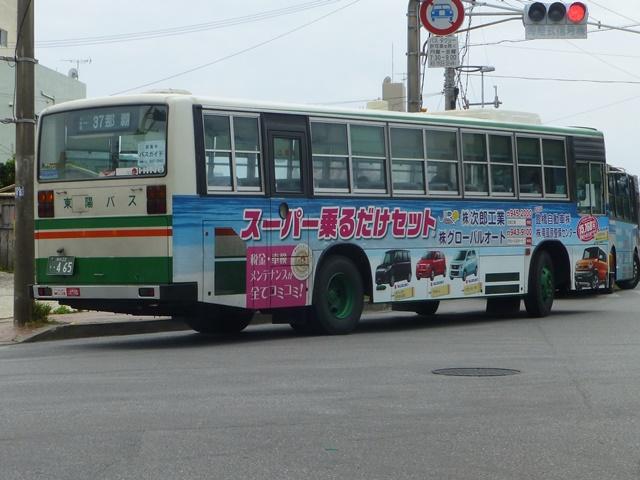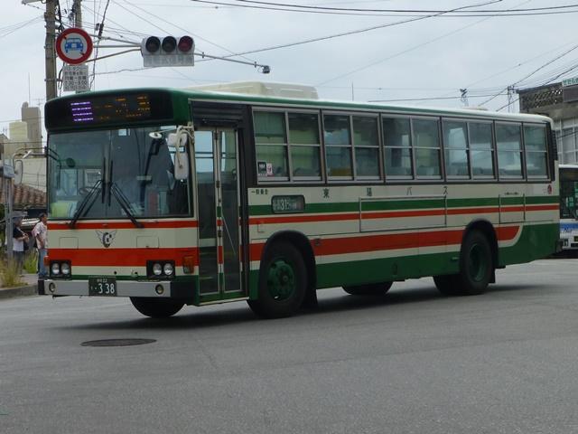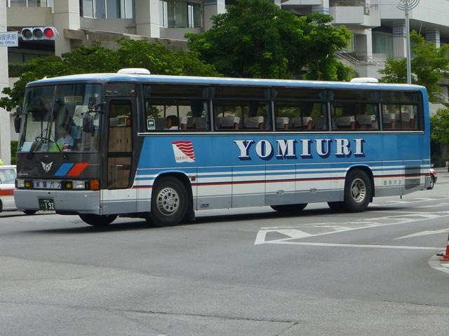 更新の予告をしてからだいぶ経ちましたが、新シリーズ「那覇市内で見たバス2015」と題したバス画像のよせ集めをスタート。2015年5月に沖縄県那覇市内へ出かけた際に記録したものを並べていきます。 シリーズ1回目の東陽バス編その1では、記録出来た「沖縄22き」ナンバーの車両画像を並べていきます。過去シリーズ同様、今回も見た感じ車両の動きが少ない東陽バスから始めるところに拙ブログの準備不足を理解していただけるかと思います。 ※なお、型式・年式を「沖縄本島4事業者 在籍車両一覧」『バスラマインターナショナル 150号』 (2015),ぽると出版 を参照し追記及び本文の修正を行いました(2015年7月3日)。 沖縄22き292.U-HT2MMAA(91年車)。 1978年7月30日に行われた交通方法変更で導入した、いわゆる730車の代替が課題となった沖縄本島のバス事業者。80年代後半からしばらくは補助金もあり、新車による代替が行われました。今回記録できた沖縄22きナンバーの若番車だったのが、側面上部引違で青の色付ガラス仕様のU規制車。ちなみに、この頃の東陽バスは側面行先表示を窓下に設置しています。 沖縄22き294.U-HT2MMAA(91年車)。 県主導による公共交通活性化策として、系統別カラーリングが一部路線に制定されました。これにあわせ、フルカラーLED行先表示の取り付けが行われています。東陽バスも一部車両がフルカラーLED行先表示を取り付けていますが、側面は方向幕のままとなっています。 沖縄22き338.U-HT2MMAA(91年車)。 同じく91年導入車ですが、側面窓仕様を上下サッシに変更。ちなみに東陽バス自社発注新車のテールライトは観光車のブルーリボンと同様な「田」の字タイプを採用しています。 画像の車両はフルカラーLED行先表示に改造されています。 沖縄22き410.U-HT2MMAA(92年車)。 こちらもフルカラーLED行先表示に改造済み。東陽バスではバス広告を広告看板・ラッピングと様々なサイズを販売しているようで、1台で広告枠・ラッピング用のフラットな側面と、それぞれに対応した装備となっています。 沖縄22き465.U-HT2MMAA(93年車)。 こちらは前面の開口蓋が大きくなった93年導入の自社発注新車。自社発注車をなんとか導入してきたのは94年車までで、以後の一般乗合車は移籍車導入で行われることになります。 <貸切車> 沖縄22き192.P-RU637BB(90年車)。 貸切車は1台だけ記録できました。読売旅行のエージェントカラーとなっている日野ブルーリボン。 今は無き「読売観光バス」カラーが沖縄で現役だったとは知りませんでした。 PR