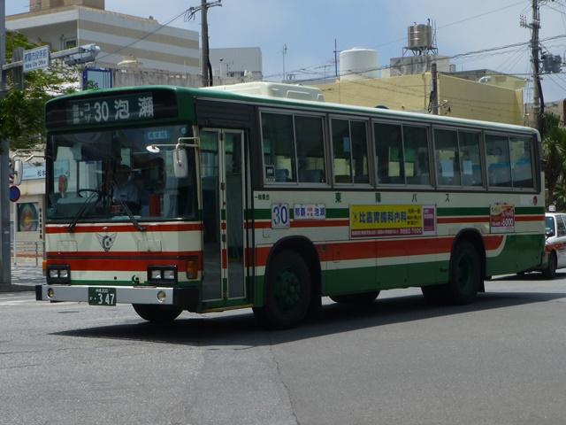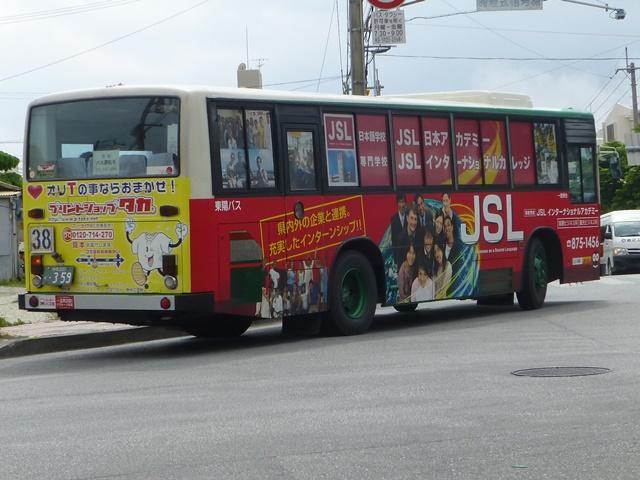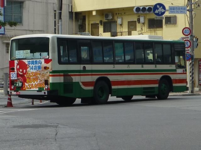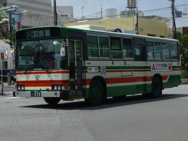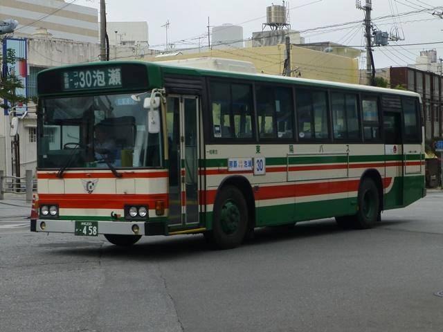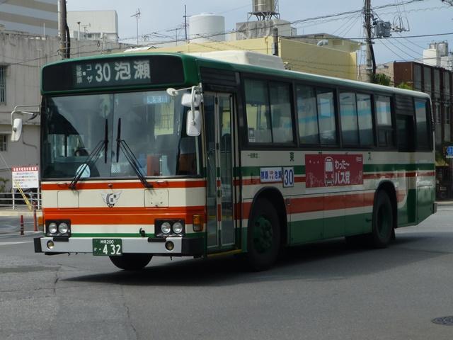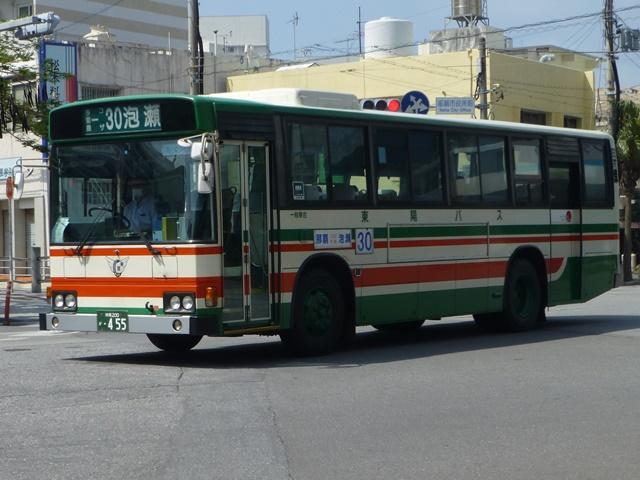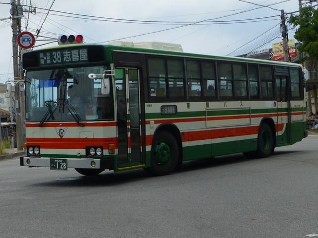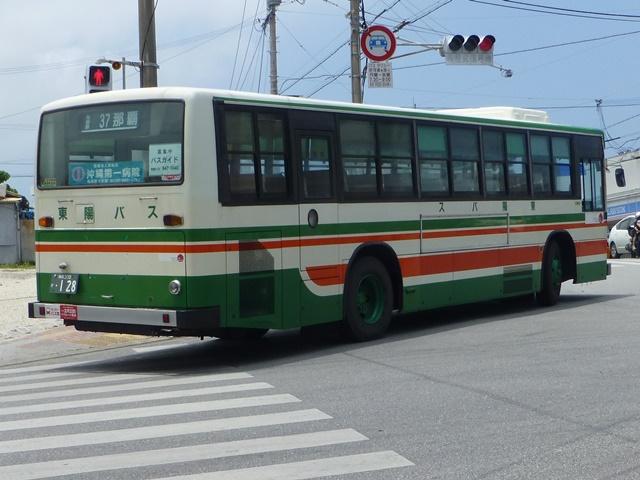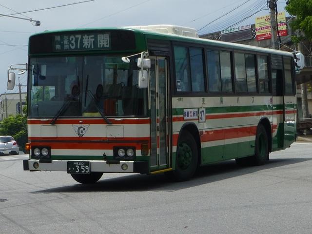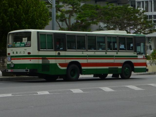 2015年5月に沖縄県那覇市内へ出かけた際に記録したバス画像のよせ集め「那覇市内で見たバス2015」。 今回の東陽バス編その2では、記録出来た「沖縄200か」ナンバーの車両画像を並べていきます。かなり短い滞在で那覇バスターミナル周辺をウロウロしていただけで終わってしまい、城間線の運用車両ははなから見にいくこともしませんでした。そのため中型車の画像すらない中途半端なものとなっていることを、あらかじめおことわりしておきます。 ※なお、型式・年式を「沖縄本島4事業者 在籍車両一覧」『バスラマインターナショナル 150号』 (2015),ぽると出版 を参照し追記及び本文の修正を行いました(2015年7月3日)。 沖縄200か83.P-HT233BA(88年車)。 東陽バスでは移籍車を内部の扉埋めにとどまらず、外観も扉自体を無かったことにする大改造を行っていました。画像の車両は中扉を綺麗に無くした横浜市交通局からの移籍車。戸袋窓を後部に再利用したため、前後扉のように見えるのが特徴。P規制の古参車ですが、フルカラーLED行先表示を装備しています。側面の行先表示は窓部に設置しています。 沖縄200か128.P-HT235BA(88年車)。 前後扉仕様でP規制車の日野HTは東武バスからの移籍車。このあたりの移籍車から外観の扉埋めまでは行われなくなりました。後扉の外観は残っていますが、車両により側面の行先表示を窓下前扉横に設置する手の込んだ改造は継続しています。 沖縄200か295.P-HT233BA(89年車)。 千葉交通からP規制車のHT移籍車もフルカラーLED行先表示を取り付けることになっているとは。ちなみにこのあたりの移籍車から側面行先表示の窓下設置をやめ、元事業者の巻き取り機を活用しています。 沖縄200か347.U-HT2MLAA(92年車)。 かつての沖縄では元自家用のスクールバスや企業送迎車だったトップドア車を乗合車に改造して導入する事例が少ないながらありました。画像の車両もそのような経緯をもつ移籍車で、トップドアで2人掛けシートという装備は当時の沖縄の路線バスとして最適だった模様。U規制車ながらオプションの角目ヘッドライトを装備していますが、東陽バスの一般乗合車では角目ヘッドライトは未だ少数派という状況・・・。側面行先表示はサボ掲示となっています。 沖縄200か359.U-HU2MLAA(93年車)。 近畿地方の事業者からの移籍車も導入しており、中でもまとまった台数在籍しているのが南海バスからの移籍車。東陽バスには側面全引違窓仕様のタイプが移籍しています。側面行先表示は後扉横のものを活用するというわけにはいかず、サボ掲示となっています。 沖縄200か373.U-HT2MMAA(91年車)。 前中扉仕様のHTは京浜急行バスでワンロマ車だった移籍車。側面行先表示はやはりサボ掲示。 沖縄200か432.U-HT2MLAA(93年車)。 「わった~バス党」の広告を掲示した南海バスからの移籍車。 沖縄200か455.U-HT2MLAA(94年車)。 せっかくなので南海バスからの移籍車をもう1台。 沖縄200か458.U-HT2MMAA(93年車)。 こちらはM尺と少々長い南海バスからの移籍車。長いといえば、東陽バスには千葉内陸バスからのP尺という長尺移籍車も在籍していますが、今回見ることは出来ませんでした。 PR