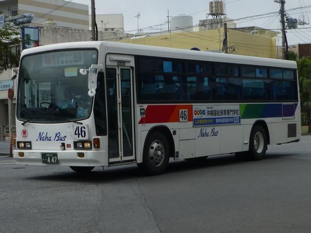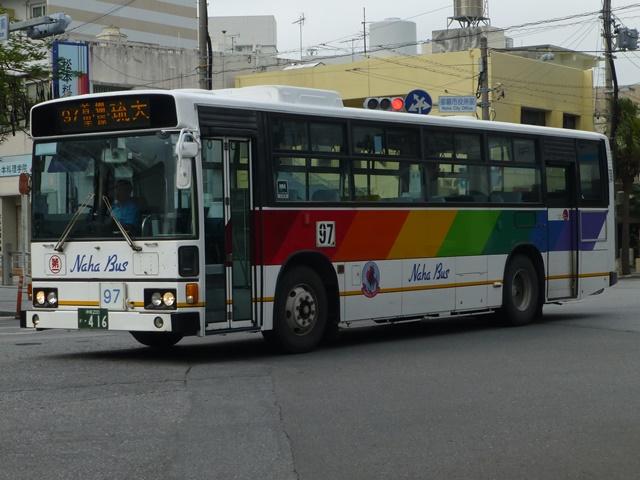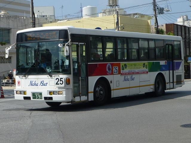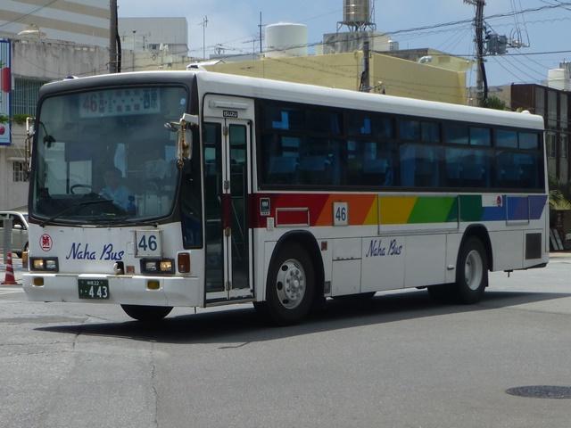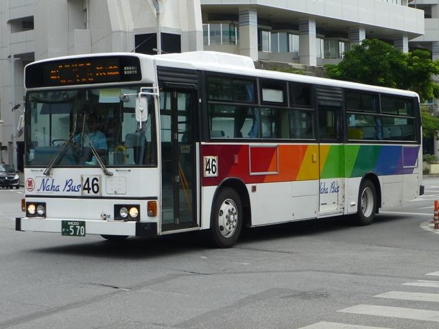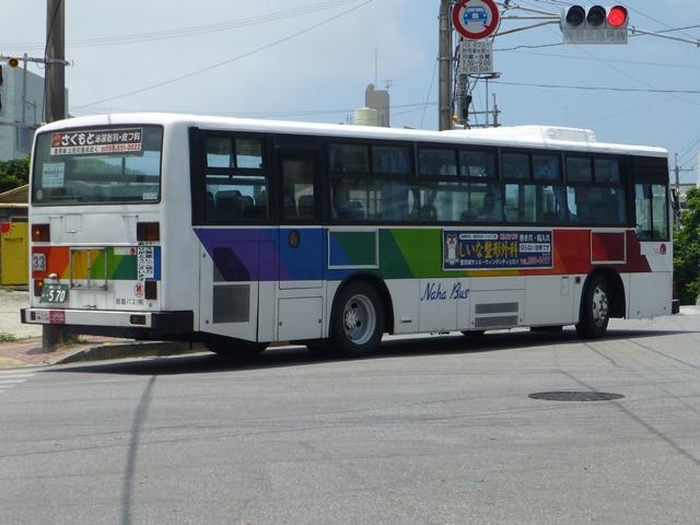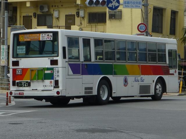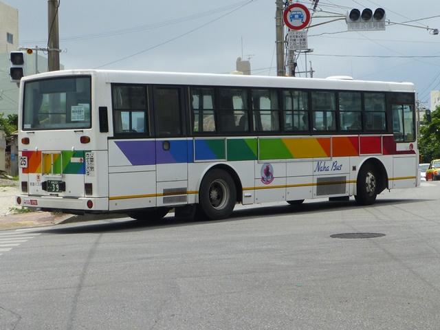 2015年5月に沖縄県那覇市内へ出かけた際に記録したバス画像のよせ集め「那覇市内で見たバス2015」。在籍車両の型式・年式がバスラマ最新号に掲載されたので、更新を再開していきます。 今回は那覇バス市外線編その1と題し、那覇交通時代に導入した沖縄22きナンバーの車両と那覇バス誕生後導入した沖縄200か570までの記録出来た車両画像を並べていきます。 なお、型式・年式は「沖縄本島4事業者 在籍車両一覧」『バスラマインターナショナル 150号』 (2015),ぽると出版 を参照しました。 沖縄22き407.U-LV324L(92年車)。 移籍車&新車導入で在籍車両の低床化が進んでいる那覇バス。市外線の古参格となるのが、那覇交通時代に導入したU規制車の純正キュービックボディのLVトップドア車。乗合車で採用事例が少ない大型前面ガラス仕様となっています。市外線の塗装デザインは那覇交通時代と概ね同じで、のちに第一グループ傘下となった琉球バス交通の一般路線車標準塗装にも採用されています。概ね同じと書いたのは、ボディ裾部の黄色帯が省略されたため。画像の車両は裾部の黄色帯が残り、正面の行先表示はLEDとなっています。 沖縄22き408.U-LV324L(92年車)。 別の車両となりますが、リヤ側はこんな感じ。特徴的なフロント側から3連テールライトくらいは付いているように思いますが、ごく標準的なものを取り付けているだけで非常にあっさりしています。画像の車両は裾部の黄色帯はありませんが、社名ロゴ横に沖縄の花「デイゴ」ステッカーを貼付しています。 沖縄22き443.U-LV324L(93年車)。 LV自社発注車いろいろということで、こちらは裾部黄色帯&沖縄の花「デイゴ」ステッカー無しの車両。(第一)マークの位置も沖縄22き407と比べると微妙に異なっています。 沖縄22き447.U-LV324L(93年車)。 裾部黄色帯&沖縄の花「デイゴ」ステッカー無しに加えて、正面ガラス周りの黒色塗装も無い車両。色々なパターンがあります。 沖縄200か391.U-LV324L(94年車)。 2003年に那覇交通が破綻したことを受け、翌2004年に第一交通産業資本のもと運行を開始した那覇バス。那覇バスは老朽車代替を行うべく、営業開始早々に東武バスから日野HT3扉車や大阪市交通局からいすゞLV移籍車を導入しました。画像の車両は東武バスから、第二次投入としてまとまった台数導入したいすゞLV。前後扉車は主に市外線に配置されました。 ちなみに型式を参照したバスラマ掲載の在籍車両一覧によると、営業開始時に導入した東武バスからのHT移籍車や大阪市交通局移籍車は既に代替されていることが分かりました。 沖縄200か416.U-HT2MMAA(92年車)。 こちらは京阪バスからのHT移籍車。 沖縄200か567.U-LV324L(94年車)。 2006年に琉球バスが第一交通産業傘下入りしたことで、移籍車導入もスケールアップ。2007年に京浜急行バスから大量の移籍車を導入し、琉球バス交通と那覇バスに分配しました。まずはツーステップのLV富士ボディ。塗装は細かいバラエティに富んでいますが、多くはボディ下部の黄色帯が省略されています。リヤ側の画像のみで失礼。 沖縄200か570.U-HT2MMAA改(95年車)。 同じく京浜急行バスからの日野HTワンステップ移籍車。正面の系統板設置場所が京阪バス移籍車と異なっています。 PR