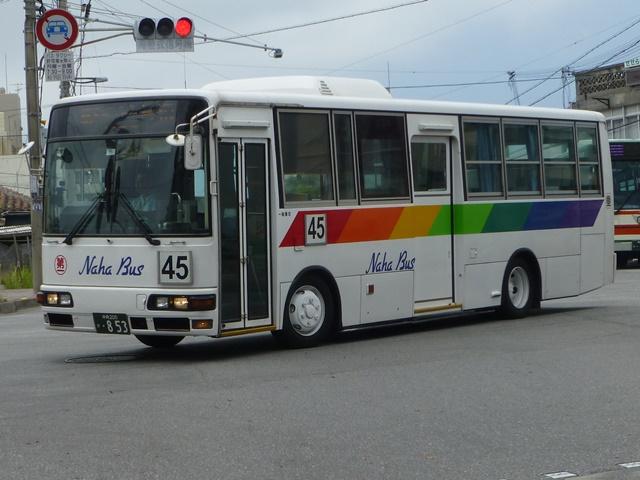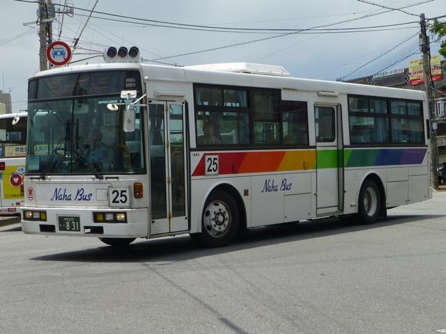 2015年5月に沖縄県那覇市内へ出かけた際に記録したバス画像のよせ集め「那覇市内で見たバス2015シリーズ。 那覇バス市外線編その3では、沖縄200か812から1026、及び希望番号で登録した自社発注車のうち記録出来た車両画像を並べていきます。京浜急行バスグループを中心に様々な事業者からの移籍車を導入し、バラエティに富んだ状況となっています。 なお、型式・年式は「沖縄本島4事業者 在籍車両一覧」『バスラマインターナショナル 150号』 (2015),ぽると出版 を参照しました。 沖縄200か812.KC-HU2MLCA(98年車)。 大阪市交通局からの移籍車が久々に登場。那覇バス誕生時の導入はいすゞ車でしたが、今回は純正ボディの日野HUツーステップ車を導入。後輪の巻き込み防止カバーは取り外しています。ちなみに大阪市交通局からの移籍車は琉球バス交通にもほぼ同時期に登場しています。 沖縄200か831.KC-UA460LSN(98年車)。 お馴染みの京浜急行バスからの移籍車。京浜急行バスではこの頃から大型ワンステップ車をエアサスで導入していますが、UAワンステップ車はリーフサスを継続していました。 沖縄200か834.KC-HU2MMCA改(98年車)。 こちらは日野HUワンステップ車。それにしてもこの頃の京浜急行バスのシートは首都圏ではトップクラスの豪華さでした。 沖縄200か853.KC-MK219J改(99年車)。 このあたりから東急バスからの移籍車も登場。三菱ふそうMKワンステップ車はまとまった台数登場しています。 沖縄200か896.KC-LV280L改(99年車)。 純正キュービックボディのいすゞLVワンステップ車は京浜急行バスからの移籍車。 沖縄200か1026.KL-MP37JK(02年車)。 那覇バスでは2010年頃からノンステップ車の移籍車も登場。導入開始当初は市内線向けの配属となっていましたが、ノンステップ車の台数が増えてきたことから市外線配属の車両も登場。KL規制車の三菱ふそうMPノンステップ車。沖縄の道路事情からノンステップ車の採用は難しいと言われていた時代からすると、随分変わったものです。 沖縄230あ1536.QPG-KV234L3(15年車)。 第一交通傘下の琉球バス交通と那覇バスは2013年から補助金を活用し、日野KVノンステップ車の新車導入を開始。琉球バス交通はN尺・那覇バスはL尺を採用し、登録番号は希望番号で導入年式+両社通しの番号(末尾4・9は欠番)となっています。那覇バス導入車は市内線配属がメインですが、市外線配属車も在籍。リヤ側のみで失礼します。 PR ![]() ![]() |
