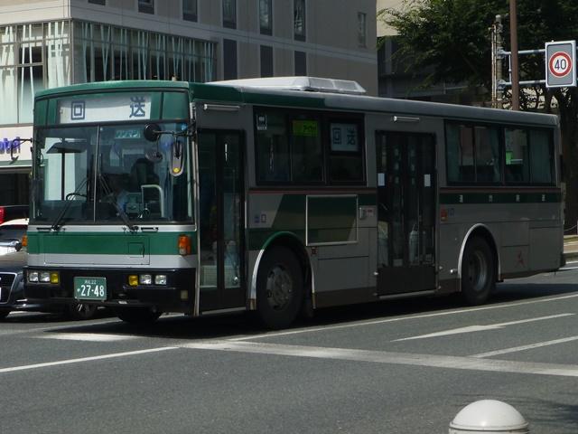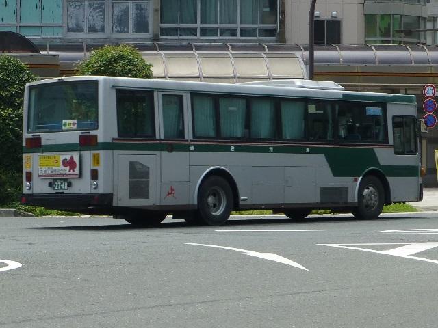 猛暑でブログを更新する気が起きず、しばらく放置状態でした。放置のお詫びということで、「浜松駅前で見た遠州鉄道のバス」と長ったらしいタイトルの新シリーズを開始していきます。那覇で見たバスシリーズが中途半端な状態ですが画像のトリミング作業が一向に進んでいないので、新シリーズで間をつないでいくことにします。 シリーズ1回目の今回は「ツーステップ車編」ということで、2015年7月に記録したツーステップ乗合車の画像をメーカーごとに並べていきます。 <三菱ふそう車> 浜松22か2588.KC-MP217M改(95年車)※1。 静岡県の浜松圏内に路線網を展開している遠州鉄道。早い段階でノンステップバスを大量導入し低床化が進んでいる印象ですが、まだまだツーステップ車も現役で運行しています。とはいえ、ここ数年の新車代替で、このあたりのKC規制車が古参格となる様ですが、ご覧のように外装の状態も良く非常に手を入れているのが特徴です。まずはエアロスターMボディな三菱ふそう車から並べていきます。 浜松22か2647.KC-MP217M(96年車)※1。 遠州鉄道のツーステップ車といえば、中扉4枚折戸+側面全引違窓が標準的な仕様で、後面は3連テールライトとなっています。ただし後面の行先表示は長らく装備していませんでした。 遠州鉄道では大型乗合車をU規制車まで短尺や長尺車も導入していましたが、KC規制車では標準尺車のみの導入となりました。 浜松22か2651.KC-MP217M(96年車)※1。 ラッピング広告車も在籍しています。 浜松22か2737.KC-MP317M(97年車)※2。 モデルチェンジしたニューエアロスターは97年に初導入。フロントバンパーにコーナリングライトを装備し、テールライトの配置の変更や縦配置側面窓は上部開閉の逆T字を採用するなどこれまでと大幅な仕様変更が行われました。翌年以降はノンステップ車のみの導入が続いたため、ニューエアロスターのツーステップ車は8台のみの導入にとどまり、少数派となっています。 <日野車> 浜松22か2598.KC-HT2MMCA(95年車)※2。 遠州鉄道では日野の大型ツーステップ乗合車を富士ボディで導入し、かつては富士5EボディのHTが在籍していました。現在は富士7Eボディ架装車のみとなっていますが、まだまだ結構な台数が在籍しています。外観的な仕様は三菱ふそう車と同様で、中扉4枚折戸+側面全引違窓+3連テールライトとなっています。 浜松22か2672.KC-HT2MMCA(96年車)※2。 96年導入の富士ボディな日野HT。 浜松22か2738.KC-HT2MMCA(97年車)※2。 97年導入車からフロントバンパー端部にコーナリングライトを装備。さらに画像の車両はアイドリングストップ装置を装備しているため、フロントガラス下にだいぶ色褪せてしまっていますがハートに地球を描いた「エコドライブバス」マークのステッカーを貼付しています。 浜松22か2748.KC-HT2MMCA(97年車)。 こちらの車両はアイドリングストップ装置を装備していないので、「エコドライブバス」のステッカーはありません。ちなみに画像の車両が遠州鉄道で富士ボディを架装した日野車の最終導入車となります。 <いすゞ車> 浜松22か2686.KC-LV380N(96年車)※2。 三菱ふそう車、日野車に比べると在籍台数がぐっと少なくなるいすゞ車。P・U規制車では純正のキュービックボディを採用していましたが、KC規制車は富士ボディに変更。キュービックボディのLVは既に全車代替済みとなっており、大型ツーステップ車は富士7Eボディ車のみとなっています。導入台数は96年4両、97年3両のみとなっており、富士ボディの日野車の中にではもはや間違い探しという感。 KC規制車のいすゞLVは全車アイドリングストップ装置を装備しているため、かつては「エコドライブバス」マークを貼付していたようですが、ボディ更新の際などで剥がされた模様。 浜松22か2751.KC-LV380N(97年車)※2。 97年導入車は他メーカー車同様、フロントバンパーにコーナリングライトを装備しています。 型式・年式は下記を参照しました。 ※1)「遠州鉄道車両一覧表」『バスマガジン 4号』(2004),三推社/講談社 ※2)『BJニューハンドブックスNo.40 遠州鉄道』(2003),BJエディターズ PR ![]() ![]() |