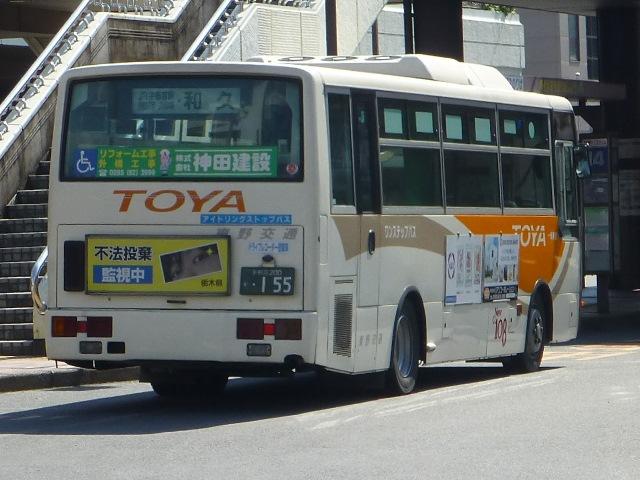 バスに関する書籍を買ったら感想めいたものをブログに書くという、ただただルーチンワーク的に更新しているだけのシリーズです。 今回は9月に刊行された『BJハンドブックシリーズS89 東武バス 東野バス』です。刊行からだいぶ経ってからの更新となったのは、手持ち画像を確保するため。小生はルーチンワークにお金と時間をかけすぎです。 社番:5114.QPG-KV234L3(15年車)。2015年4月に記録したものを再掲。 BJハンドブックシリーズでは2004年刊行のR52以来、2度目の登場となる東武バス。前作では東武バス本体単独で1冊となっていましたが、今回は栃木県宇都宮市以北をメインに路線展開している東野交通とセットとなりました。東武バスと東野交通はともに東武グループのバス事業者ではありますが、なぜセットになったのかは分かりません。とはいえ、車種統合によりかつてのバラエティに富んだ車種・車型が整理されてしまった現在の東武バス単独で1冊造るくらいなら・・・・、ということなのかもしれません。掲載事業者は東武バス側が東武バスセントラル・東武バスイースト・東武バスウエスト・東武バス日光の4運行事業者、東野交通側は東野交通と貸切メインのやしお観光バス・那須交通となっています。 内容は車両編・歴史編・紀行編という、いつも通りの3部構成。東武バスと東野交通の2事業者掲載のため、東武バスについては前作に比べるとダイジェスト版となったような印象。「終点の構図」は東武バスイーストの布瀬。紀行編は「初夏の川辺をの街歩き」と題し、東武バスエリアと東野交通エリアを途中東武鉄道の特急「しもつけ号」を利用してめぐる1泊2日の乗り歩きルポです。 車両編の掲載写真は、粗い&コントラストの調整が酷くて側面窓形状が分かりにくいものが見られるここ最近刊行のハンドブックシリーズクオリティというのが残念なところ。また、那須交通に在籍する特定車の一部は、「事業者の要望 」ということで掲載写真がありません。京浜急行バスからの移籍車なんか見てみたかったのですが、要望ですから仕方ありません。車両の解説部は2事業者掲載のためだいぶ簡略され、型式によってはあっさりしすぎではないかと思うものも少なくありません。これまでのハンドブックシリーズの中で本作は、いろいろと物足りない1冊というのが正直な感想です。 感想めいたものはこのくらいにして、ここからは今回の感想めいたものを書くために撮りためたものを含む小生手持ち画像を並べていきます。なお、本文中の「斜字 」部分は本作からの引用部分、型式・年式は掲載の車両リストを参照しました。 <東武バス> 社番:2580.KL-LV280L1(03年車)。2015年7月に記録。 まずは東武バス在籍車両の画像から並べていきます。東武バスは前作刊行の2004年時点では台数にだいぶ偏りがありましたが一応4メーカー在籍していました。現在は三菱ふそう車とUD車が無くなり、いすゞ車と日野車というジェイ・バス製造のモデルにほぼ集約。路線車の扉は前中扉・前後扉・3扉と路線環境にあわせた仕様を採用していましたが、低床化により前中扉に統一され、マニア的な面白みは少なくなりました。 そんな東武バスですが、かつて一代勢力を築いた富士重工ボディの車両もごく少数ながら在籍しています。画像は新7EボディのいすゞLVノンステップ車で、富士重工のバスボディ製造最終年の03年車です。車庫敷地外から記録したものであることを追記しておきます。 社番:2618.KL-LV280L1(03年車)。2015年2月に記録。 富士重工がバスボディ製造から撤退してからは、純正ボディオンリーとなります。キュービックボディ時は特徴的な1枚ガラスがネックとなったらしく、2枚ガラス仕様が設定されるまで富士重工ボディで導入していたことも、もう昔の話になりました。 社番:2628.KL-LV280L1(03年車)。2015年2月に記録。 低公害車として、03年からCNGノンステップ車を導入。画像のいすゞLVノンステップ車を数次に渡り導入しましたが、既に一部の車両が廃車となっています。 ちなみに、東武バスは4桁の社番を採用し、社番の頭数字「2」はいすゞ車をあらわします。 社番:9800.KL-KV280L1(05年車)。2015年8月に記録。 見た目はいすゞLVとそっくりですが、こちらは社番の頭数字「9」ということで日野車。ジェイ・バス誕生により、typeAノンステップ車がOEMで日野KVとして販売をスタートしました。V8エンジンを搭載したKL規制車のKVは販売期間が短かったため、東武バスでは05年のみの導入となっています。 ちなみに05年導入車は正面窓下のノンステップバス表示が白地の大きなステッカーという特徴的なものとなっています。 社番:9889.BJG-HU8JLFP(07年車)。 フロントガラス下の特徴的なノンステップバス表記は、翌年に現行の白文字のアルファベット表記に変更されました。 CNG車に続く低公害車として、日野ブルーリボンシティハイブリッド車を05年から09年にかけて導入しました。 社番:9985.PDG-KR234J2(09年車)。2015年8月に記録。 もちろん中型車も在籍