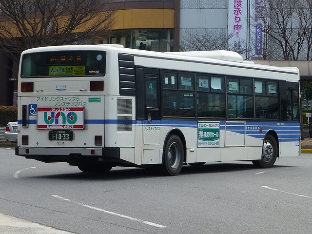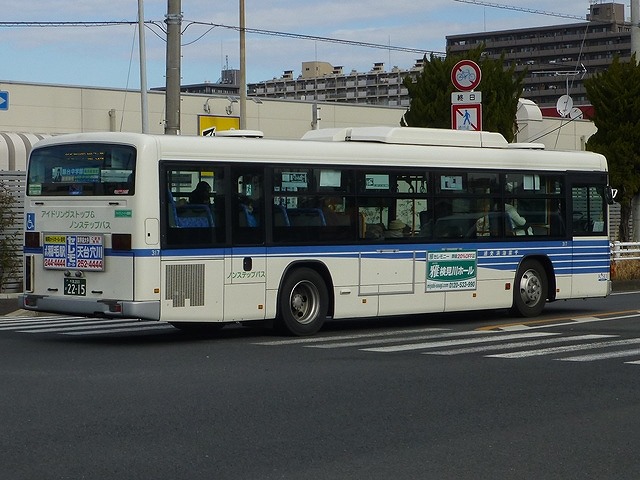 千葉海浜交通に登場しているという新型ブルーリボンの画像を記録するため、寒空のなか稲毛海岸駅周辺をウロウロ。新型ブルーリボンの画像を記録することは出来ましたが、インフルエンザにもかかりました。絶賛更新頻度低下中の拙ブログですが、それどころではなくなりました。皆様もお気を付けください。 ということで、久々の更新となる今回は稲毛海岸駅周辺で記録した千葉海浜交通の車両画像のよせ集めです。 社番:286. 千葉市稲毛・検見川沿岸部の埋め立て地に造成された団地輸送を目的に誕生した千葉海浜交通。長らく3扉の長尺車が在籍車両の中心となっていましたが、低床化のため3扉から前中扉、長尺車から標準、短尺とじわりじわりとダウンサイジングが続いています。まずは現在の最古参格と思しき日野ブルーリボンシティノンステップ車。正直全国的に評判が良いとはいえないフルフラットATノンステップ車ですが、千葉海浜交通ではきっちり使い続けています。 社番:297. ジェイ・バス誕生により日野の大型ノンステップ車は、いすゞエルガのOEMとなるブルーリボンⅡへ。日野車の導入を続ける千葉海浜交通ですから、ほどなく登場。日野車とはいえ、エルガと見分けるのが困難なPJ規制車は導入当初かなりの違和感を持ちました。 社番:317. 日野ブルーリボンⅡはマイナーチェンジによりヘッドライトが1つ目に変更。 社番:322. 社番:333. 10穴ホイールとなったあたりから、後部の換気扇位置が後方へ変更となりました。 社番:340. 再掲画像ですが、新型ブルーリボン。次はハイブリッド車の登場を待ちたいところです。 社番:276.2015年12月に記録。 2015年12月に記録した旧塗装のブルーリボンシティワンステップ車。新型ブルーリボンの導入で代替となったと思いますがどうなんでしょうか。千葉海浜交通はHR9m車の一部を早期代替しているので、案外?・・・。まあ年式的に案外はないと思いますが。 PR