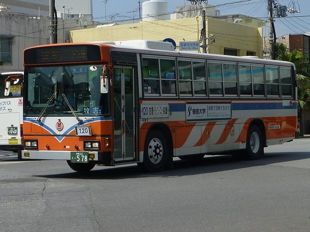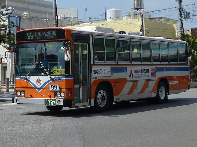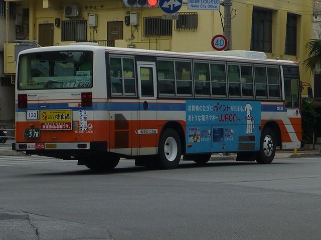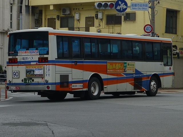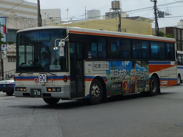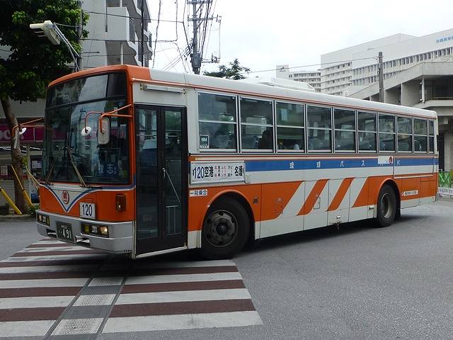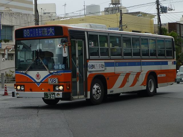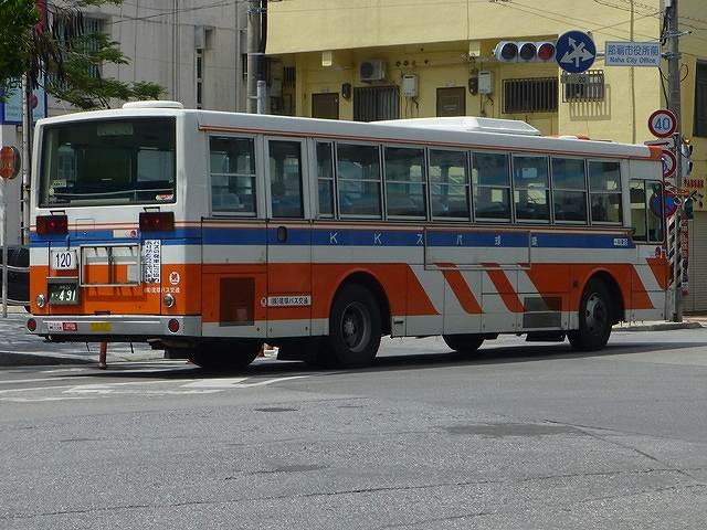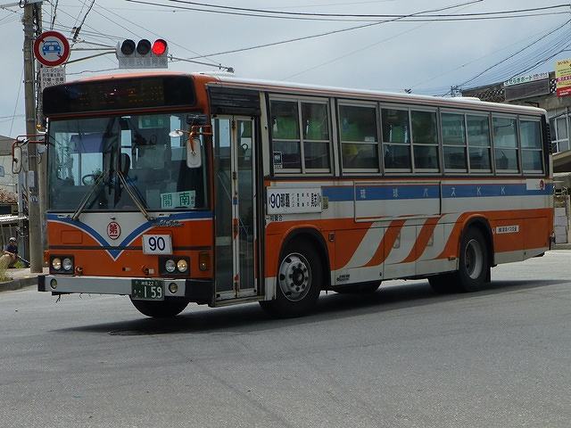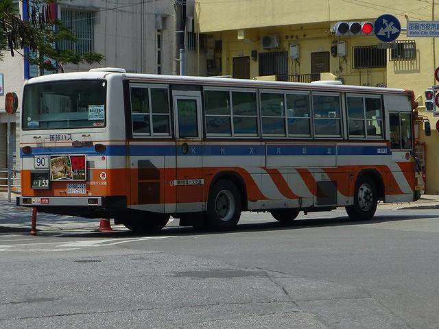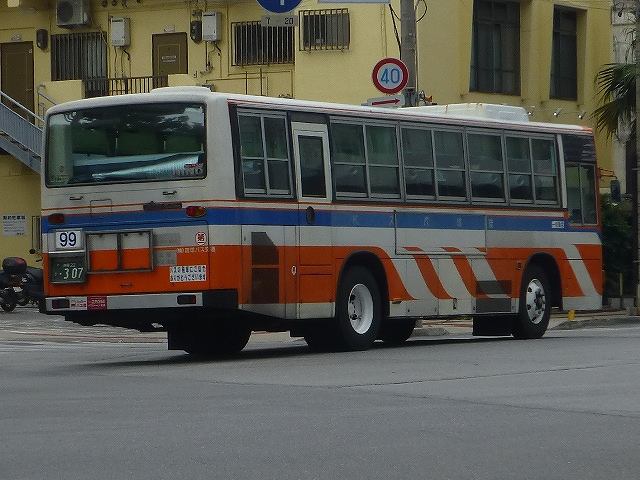 2015年5月に沖縄県那覇市内へ出かけた際に記録したバス画像のよせ集め「那覇で見たバス2015」シリーズ。シリーズ最終章となる琉球バス交通編にようやく突入です。今回のその1では、旧琉球バス時代に自社発注した一般乗合車と元スクールバスな転用車の画像を並べていきます。 なお、型式・年式は「沖縄本島4事業者 在籍車両一覧」『バスラマインターナショナル 150号』(2015),ぽると出版 を参照しました。 沖縄22き470.U-UA440LSN(93年車)。 沖縄22き469.U-UA440LSN(93年車)。 フロント1枚ガラス仕様の富士7BボディのUA短尺車は111番高速バス用に導入。導入当初は神奈川中央交通のB&Y色にも似たデザインの独自塗装でしたが、高速バス運用から離れた後に琉球バス「新塗装」と呼ばれた現在の姿に塗り替えられました。 前後で車両が異なり失礼します。 <元スクールバス> 沖縄22き159.P-HT233BA(89年車)。 旧琉球バスでは長らく米軍スクールバスの運行を担当しており、複数時にわたり長短様々なスクールバス専用車を導入していました。しかし、米軍の入札方法変更などもありスクールバスは2000年7月をもって運行終了。余剰となったスクールバス車両は乗合車に転用となりました。 スクールバス乗合転用車は琉球バスの730車に施された塗装デザインと色違いとなっており、車内に英語表記の注意書きが残ります。また、前面ナンバープレート取り付け位置が片側に寄っているのも特徴。これはスクールバス時代、フロント中央部に大きな看板を取り付けていたため。 型式を参照したバスラマのリストによれば、スクールバス転用車は長尺の87年導入車も残っているようですが、記録出来たのは89年以降の導入車でした。まずは89年導入のP規制車の日野HT短尺車。さすがにボディは痛みも目立ちますが、琉球バスKK表記が今も残ります。 沖縄22き307.U-HT2MLAA(91年車)。 日野車はU規制から尺を表す型式を変更。このため、分かりにくいですが画像の91年導入車も 89年車同様の短尺車となります。画像の車両は前面行先表示をLED式に改造。 沖縄22き309.U-HT2MLAA(91年車)。 もちろん方向幕で残る車両も在籍しています。 沖縄22き438.U-HT2MPAA(93年車)。 93年導入車は長尺で導入。スクールバスの路線によって乗車人数など様々だったので しょう。 沖縄22き491.U-UA440NSN改(95年車)。 95年はUDのUA長尺車を導入。画像の車両は120番名護西空港線の運用に入っていました。 沖縄22き578.KC-HT2MMCA(97年車)。 97年車は日野車に戻り、M尺を導入。KC規制車ということで、角目ライトとなりました。スクールバス専用車の導入はこの年までとなり、スクールバス運行終了は旧琉球バスの経営悪化を加速しました。 PR