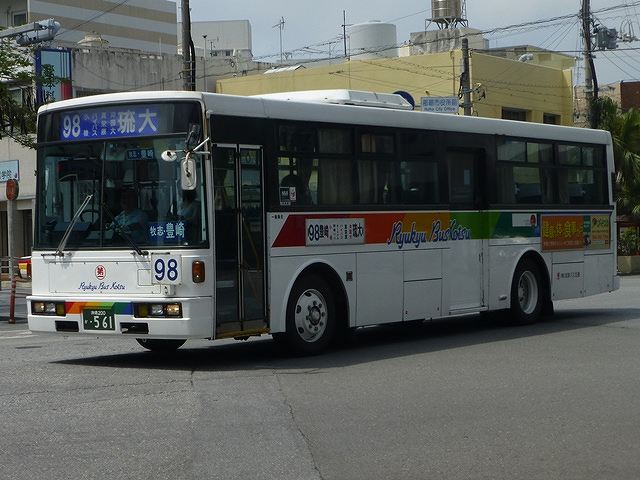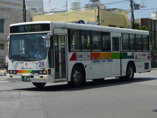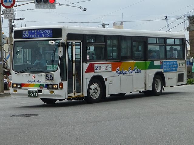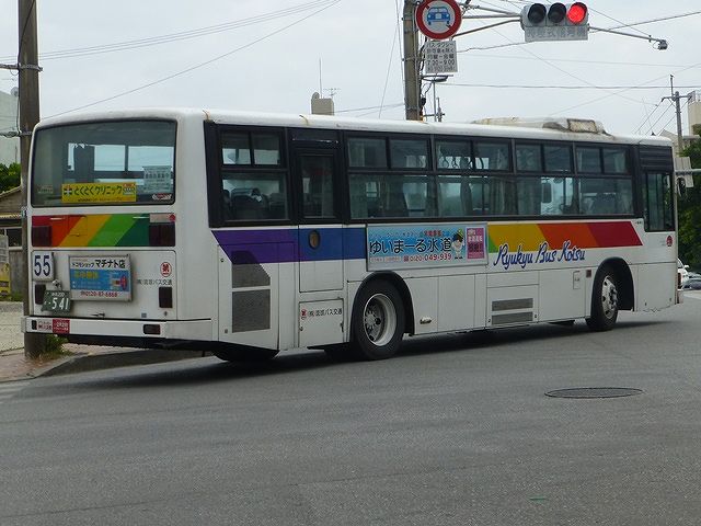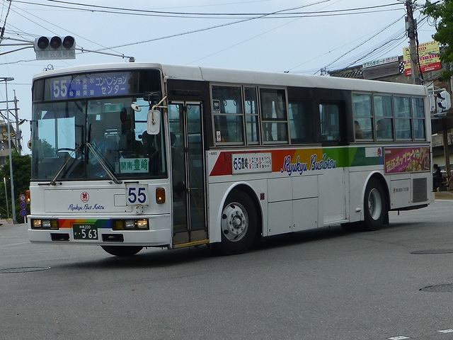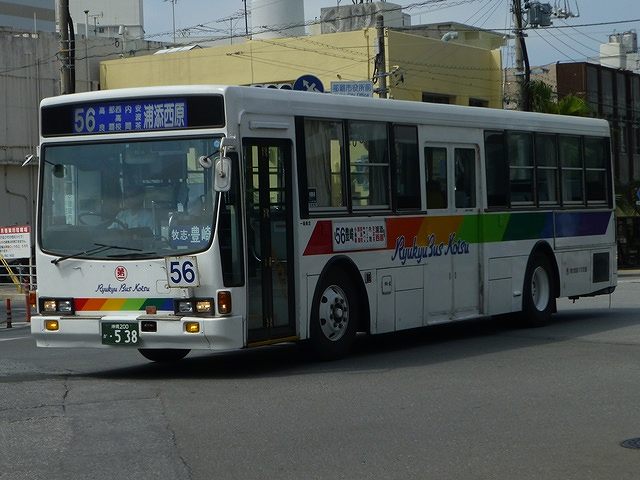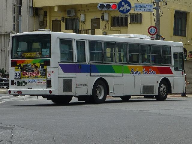 2015年5月に沖縄県那覇市内へ出かけた際に記録したバス画像のよせ集め「那覇で見たバス2015」シリーズ。今回のその3では、琉球バス交通誕生後まもなく導入した京浜急行バスグループからの乗合移籍車の画像を並べていきます。 なお、型式・年式は「沖縄本島4事業者 在籍車両一覧」『バスラマインターナショナル 150号』(2015),ぽると出版 を参照しました。 沖縄200か536.U-HT2MMAA改(94年車)。 沖縄200か541.U-HT2MMAA改(94年車)。 経営状態が悪化していた旧琉球バスは2006年に琉球バス交通として第一交通産業傘下の バス事業者となりました。琉球バス交通では那覇バス同様に古参車や状態の悪い車両代替を積極的に開始し、2007年に第一交通産業傘下の那覇バスとあわせ、京浜急行バスからまとまった台数の移籍車を導入しました。この京浜急行バス移籍車は、那覇バス市外線カラーとほぼ同様のレインボーカラー帯デザインで登場し、新生琉球バス交通の標準塗装となりました。 まずは日野HTワンステップ車。ちなみに琉球バス交通初期に塗り替え及び導入された車両は、正面ライト間にもレインボー帯があります。 沖縄200か538.U-LV324N改(94年車)。 こちらはスーパーワイドドア仕様のいすゞLVツーステップ車。琉球バス交通も那覇バス同様、これまで導入してきたメーカーの縛りがなくなりました。 沖縄200か544.U-LV324N(94年車)。 同じくN尺のいすゞLVツーステップ車ですが、こちらは元ワンロマ車。正面行先表示はフルカラーLED式に改造しています。 沖縄200か551.U-MP618N(94年車)。 京浜急行バスの廃車をまとめて購入したため、旧那覇交通・旧琉球バスでは縁の無かったメーカーの車両も登場。具体的には、琉球バス交通と那覇バスそれぞれに三菱ふそう車が登場しました。エアサスで中扉折戸仕様の三菱ふそうMP長尺車は、京浜急行バス時代羽田空港発着路線で活躍していました。中扉は埋められていますが、ガラスに名残。 沖縄200か558.U-UA440LSN(94年車)。 リヤ側からの画像のみですが、こちらはUAツーステップ車。こうやって見ると、当時の京浜急行バスは様々な仕様の車両を導入していたことを実感。 沖縄200か559.U-HT2MMAA(94年車)。 リヤ側からの画像のみが続きますが、日野HTツーステップ車。元ワンロマ車です。 沖縄200か561.U-UA440LSN改(94年車)。 上部引き違い側面窓仕様はワンステップ車。UAワンステップ車。 沖縄200か563.U-LV324L(94年車)。 先ほどのUAと同じく富士7Eボディ車ですが、こちらはいすゞLVのツーステップ車。 沖縄200か564.U-LV324L改(94年車)。 純正キュービックボディのいすゞLVワンステップ車。これらの京浜急行バス移籍車が琉球バス生え抜き730車や状態の悪い初期導入移籍車などを代替していきました。 PR ![]() ![]() |