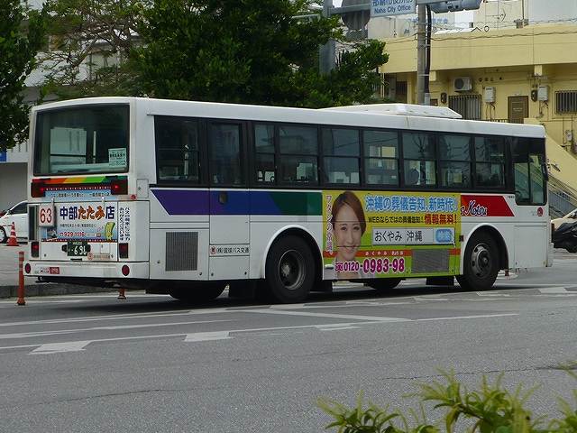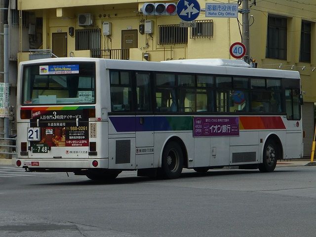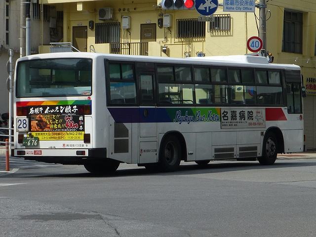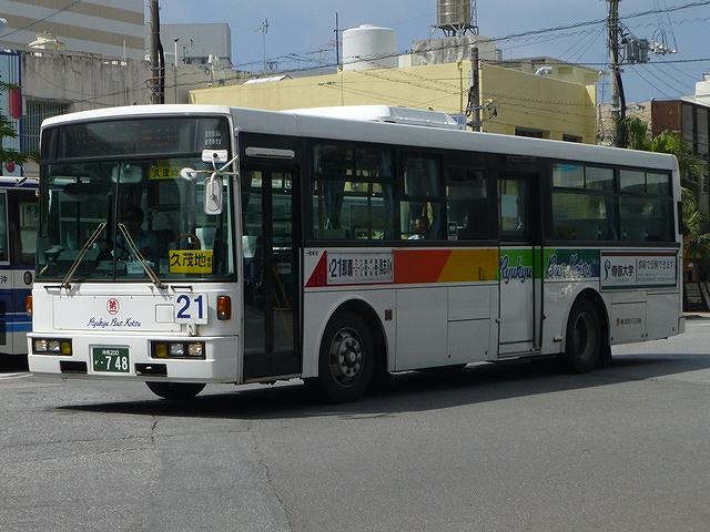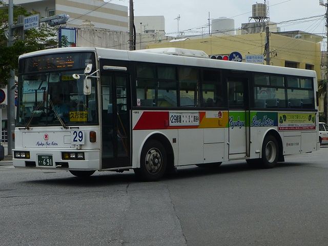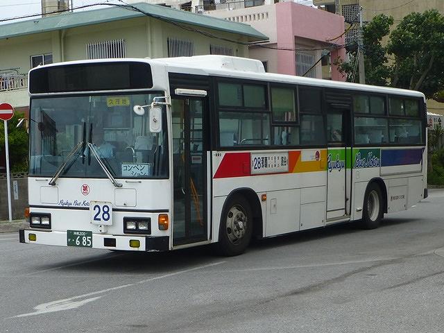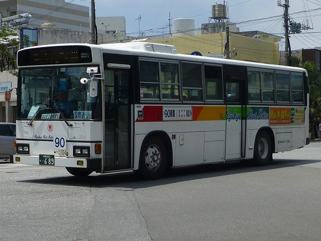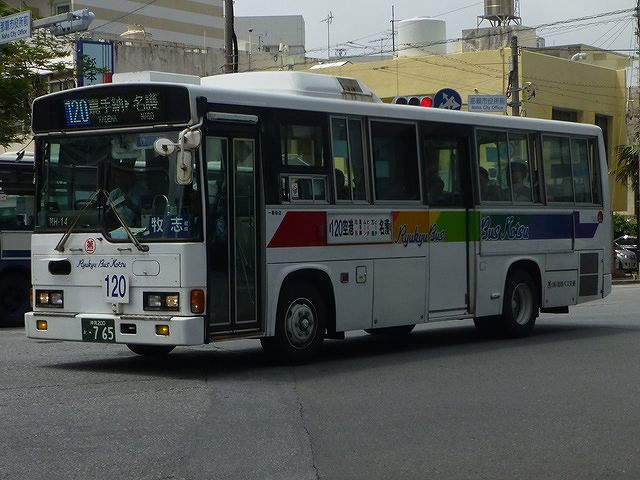 2015年5月に沖縄県那覇市内へ出かけた際に記録したバス画像のよせ集め「那覇で見たバス2015」シリーズ。今回のその5では、前回に引き続き琉球バス交通発足後導入が続く乗合移籍車の画像を並べていきます。 なお、型式・年式は「沖縄本島4事業者 在籍車両一覧」『バスラマインターナショナル 150号』(2015),ぽると出版 を参照しました。 沖縄200か685.KC-HT2MMCA改(96年車)。 沖縄200か676.KC-HT2MMCA改(96年車)。 古参車代替のため、積極的な移籍車導入が続く琉球バス交通。KC規制車の日野HTワンステップ車は、おなじみの京浜急行バスからの移籍車。上下で車両が異なり失礼します。 沖縄200か689.KC-HT2MMCA(96年車)。 こちらは正面行先表示横の「運賃後払い~」表示から京浜急行バスからの移籍車と分かる日野HTツーステップ車。京浜急行バス時代は貸切兼用のワンロマ車でした。 沖縄200か691.KC-UA460LSN(96年車)。 日野HTと同時期に京浜急行バスから移籍した96年車は、富士7EボディのUAワンステップ車もやってきました。 沖縄200か698.KC-UA460HSN(97年車)。 富士7EボディのUAですが、こちらはH尺のツーステップ車。東急バスからの移籍車で、97年車がまとまった台数移籍しました。東急バス時代と変わらずフォグ無しとなっています。 沖縄200か746.KC-UA460NAN(97年車)。 リヤ側からの画像のみで失礼しますが、側面全引き違い窓仕様のUA長尺車は京浜急行バスからのワンロマ移籍車。 沖縄200か748.KC-UA460LSN(97年車)。 同時期にUAワンステップ車も移籍しています。 沖縄200か765.KC-RR1JJAA(98年車)。 東急バスからのUAに続く、まとまった台数を導入した名古屋市交通局からの中型移籍車。日野RRが20・120番名護西空港線に配属となり、同線の中型化に貢献しました。前面運転席部に名古屋市交通局時代の局番表記が残っています。ほとんどの座席が名古屋市交通局時代のままの薄っぺらい椅子のため、長距離路線の乗車は正直厳しいです。 沖縄200か785.KC-UA460HSN(98年車)。 そしてフォグランプが無いUAツーステップ車。前年からまとまった台数が登場している東急バスからの移籍車で、98年車もやってきました。 PR