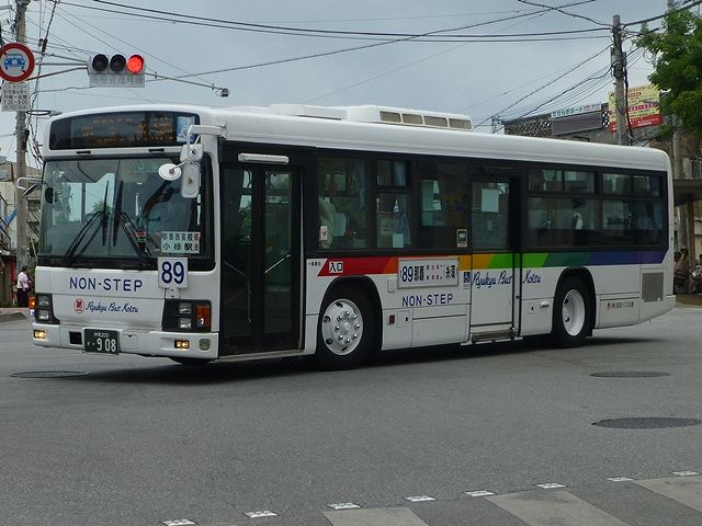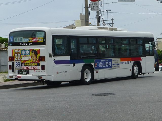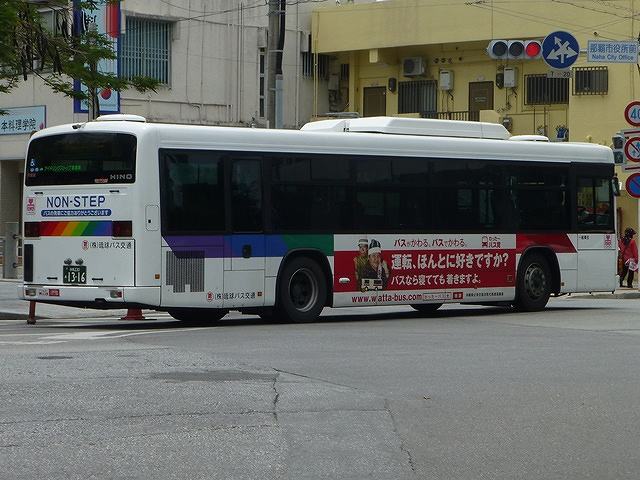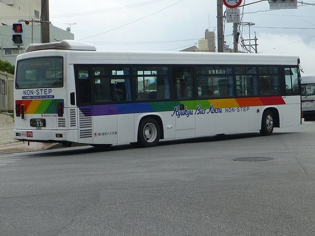 2015年5月に沖縄県那覇市内へ出かけた際に記録したバス画像のよせ集め「那覇で見たバス2015」シリーズ。中断していたこともあり、1年近くダラダラと更新してきたシリーズですが、今回が最終回。琉球バス交通編その7では、沖縄200か900以降の移籍車と自社発注ノンステップ車の画像を並べていきます。 なお、型式・年式は「沖縄本島4事業者 在籍車両一覧」『バスラマインターナショナル 150号』(2015),ぽると出版 を参照しました。 沖縄200か908.KL-LV280L1改(01年車)。 東急バスからまとまった台数のいすゞエルガノンステップ移籍車が琉球バス交通に登場。沖縄でノンステップバスは難しいと長らく言われていましたが、道路整備など環境が整ったということなんでしょう。 沖縄200か911.KL-LV280L1改(01年車)。 東急バスからのいすゞエルガノンステップ移籍車には、ライトベゼルを真っ白に塗った車両も複数台在籍しています。塗装工場の違いなのでしょうが、小生的にこの塗り方はちょっと・・・という感じです。 沖縄200か922.KL-UA452MSN(00年車)。 おなじみ京浜急行バスグループから移籍車が登場。まずは富士重工新7EボディのUAワンステップ車。 沖縄200か996.KL-HR1JNEE(01年車)。 中型幅の10.5mサイズノンステップバスも登場。日野HRが沖縄本島で走るようになるとは、時代は変わったと実感。 <自社発注車> 沖縄230あ1303.QPG-KV234N3(13年車)。 ノンステップバス導入推進のため、2012年度から補助金が大幅アップ。これを受け、第一交通産業グループの2社は日野KVノンステップ車をまとまった台数購入。琉球バス交通はN尺車を導入しました。 沖縄230あ1316.QPG-KV234N3(13年車)。 せっかくなのでもう1台、「わったーバス党」側面ラッピングとなっている車両。琉球バス交通が13年に導入した日野KVノンステップ車は20台。登録番号は登録年(西暦)+末尾4と9が欠番の連番の希望番号を採用しています。 沖縄230あ1402.QPG-KV234N3(14年車)。 翌14年は18台導入。 沖縄230あ1522. 15年は21台。3年間でノンステップバスの自社発注車が59台となり、一大勢力となっています。引き続きノンステップバスの新車導入が続くようなので、旧琉球バス時代に導入した車両が少数派となる日もそう遠くないのかもしれません。 PR ![]() ![]() |