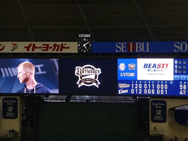 プロ野球を観戦したらブログに書いてアリバイ的に更新回数を水増しする拙ブログ。 2016年開幕シリーズ観戦に、西武プリンスドームへ。この開幕シリーズは来場者プレゼントが充実。2・3戦目は防寒対策のお供にということで、フリースをプレゼント。プレゼント効果もあってか、開幕1・2戦は前売りで完売。 3戦目も完売し、3連戦とも満員御礼。対オリックス戦が完売になるとは、失礼ながら予想できませんでした。 埼玉西武 4- 5 オリックス 両チームとも外国人が先発したこの試合。オリックス先発のディクソンは2週間前のオープン戦で大乱調でしたが、今日も早々に同点に追いつかれる微妙な投球。それでも西武の下位打線相手には粘って6回3失点と試合はつくりました。最終回に抑えのコーディエが初戦に続き失点し1点差まで追いつかれます。昨年に続き、開幕シリーズ3連敗が頭によぎりましたが、西武の下位打線に助けられなんとか勝利。西武はこの試合、山川がアンラッキーボーイとなってしまったのが残念。次のチャンスがあるのか?ちょっと心配です。 PR