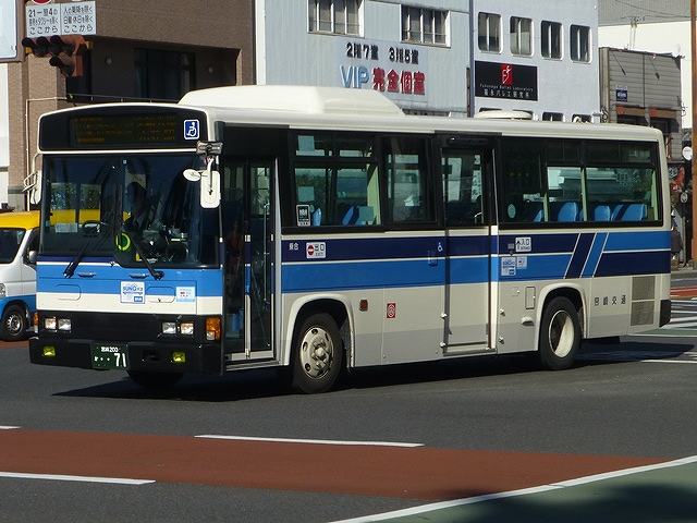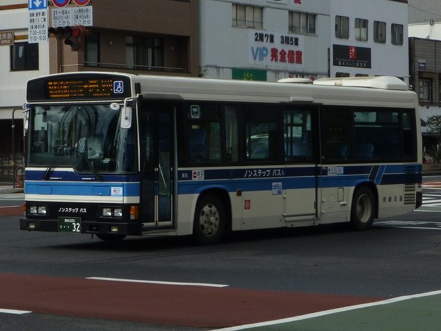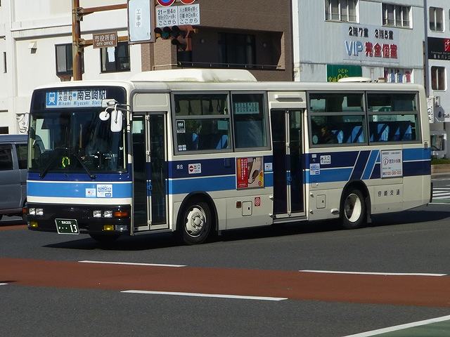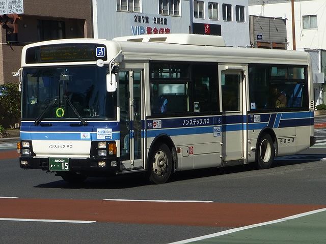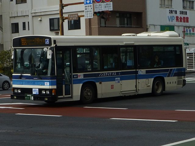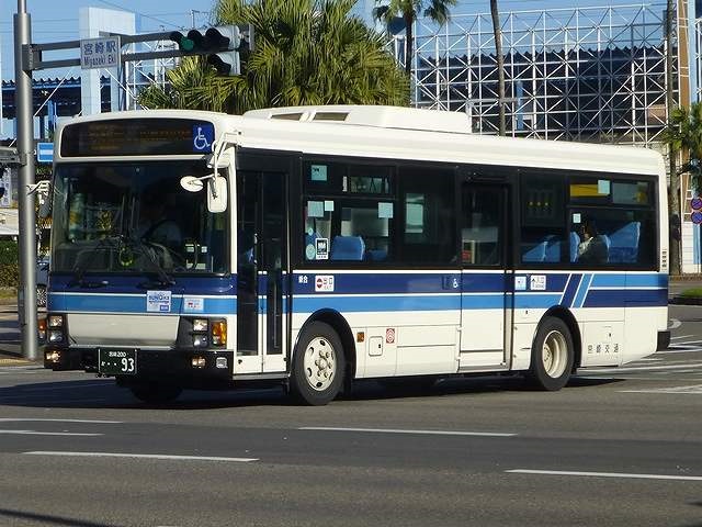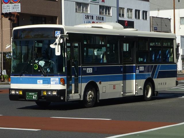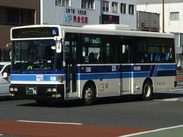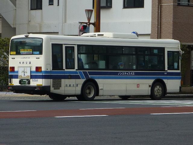 今回から2015年12月と2016年2月に宮崎市内で記録した宮崎交通のバス画像よせ集めシリーズをスタートしていきます。拙ブログでは何度か宮崎交通の画像よせ集めシリーズを更新しており、新鮮味はありませんがひとつお付き合いのほどをお願いします。 さて、今回のその1では、99年より交付が開始された宮崎200かナンバーで、100までの一般乗合車画像のうち記録できたものを並べていきます。なお、 型式・年式は「宮崎交通所有車両全データ」『バスマガジン16号』(2006),三推社/講談社 及び、「宮崎交通 所有車両一覧表」『BUS Life Vol.4』(2016),笠倉出版社 を参照しています。 宮崎200か13.KK-MK23HH(99年車)。 一般乗合車は中型車をメインに、4メーカーを揃える宮崎交通。KK規制車で板バネ仕様の三菱ふそうMKワンステップ車は99年に2台のみの導入。中扉は既存の中型乗合車同様折戸を採用しています。 宮崎200か15.KK-LR233J1(00年車)。 宮崎交通では99年にノンステップバスを大型・中型それぞれ導入していますが、本格的な導入は翌00年から。乗合車の主力となる中型ノンステップ車を複数台導入しました。まずはいすゞLR。中扉はオーソドックスな引戸仕様となっています。 宮崎200か18.KK-HR1JKEE(00年車)。 日野HRの9mサイズも導入。最初期導入車は正面の「ノンステップバス」表記を水色帯上に配置しています。 宮崎200か32.KK-HR1JKEE(00年車)。 水色帯上ではアピール不足と考えられたのか、00年後期導入の日野HRから表記位置がヘッドライト間の黒色部に変更。 宮崎200か65.KK-LR233J1改(01年車)。 ノンステップ車と並行してワンステップ車も導入。いすゞLRワンステップ車。 宮崎200か67.KK-RM252GAN(01年車)。 宮崎交通は富士重工ボディを愛用した事業者ということもあり、UDのRMワンステップ車は西工・富士それぞれを導入しています。 宮崎200か71.KK-RJ1JJHK改(01年車)。 日野RJのワンステップ車は2台のみの在籍。 宮崎200か93.KK-LR233J1改(02年車)。 いすゞLRのワンステップ車は日野RJに比べ、まとまった台数が在籍しています。 宮崎200か96.KK-RM252GAN(02年車)。 西工ボディのRMワンステップ車。西工ボディの中型車は、KC規制車までフロントガラス1枚のいわゆるスペースランナー顔を採用していましたが、KK規制車から2枚ガラスの96MCに変わりました。 PR ![]() ![]() |