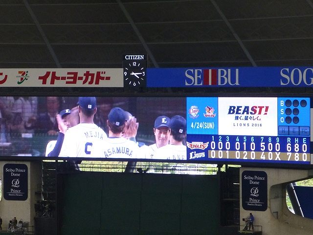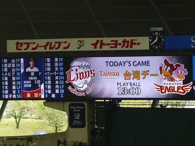 プロ野球を観戦したらブログに書くシリーズ。 いまいちな天候で肌寒い西武プリンスドームへ観戦に出かけました。この日は「台湾デー」ということで、台湾への観光パンフレットの配布や台湾グルメの出店も見られました。台湾で人気のあるという緑茶ヤクルトを飲んでみたかったのですが、販売箇所が分からず断念。 埼玉西武 7- 6 東北楽天 メヒアの満塁弾を含む3連発で西武が逆転勝利。しかし中4日で強行先発したエースの岸が足の負傷で降板し、1ヶ月近く戦列を離れる痛い結果となりました。エースの離脱でそれでなくても厳しい投手事情が、さらに厳しいことになりました。楽天はメヒアの前に走者を出したことが敗因というしかありません。そんな試合でした。 PR ![]() ![]() |