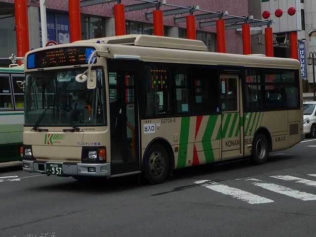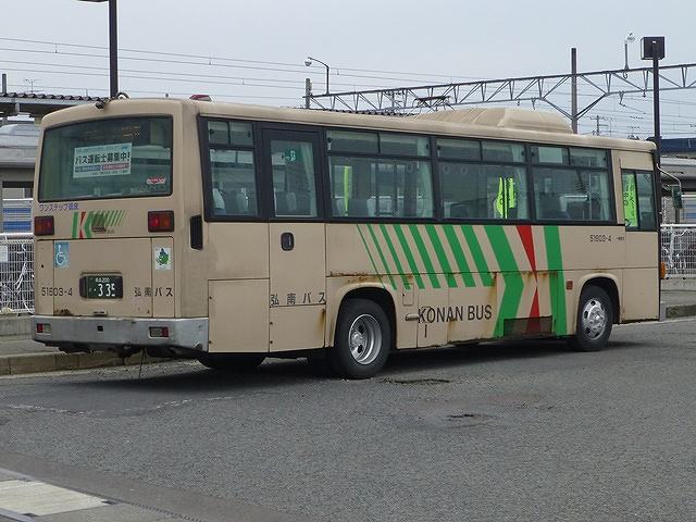 2016年5月に記録したバス画像のよせ集め「青森・弘前で見た弘南バス」。シリーズ2回目となる日野編その2では、記録できた01年以降に導入した自社発注の日野一般乗合車の車両画像を並べていきます。 社番:51301-9. トップドア車を標準採用してきた弘南バスですが、交通バリアフリー法施行により前中扉ワンステップ車の導入を開始します。とはいえ中扉は車椅子専用で、これまで通り前扉での乗降となっています。車内には中扉のステップに降りられないように仕切り棒を設置し、誤降?を防止しています。 ちなみに画像の車両は側面・後面の窓周りが紫色になっています。何かの名残なんでしょうが、よく分かりません。 社番:51302-5. 同年式車をもう1台。標準塗装の車両の例。 社番:51401-2. 見たところ02年導入車からLED行先表示を標準採用した模様。 社番:51504-2. 03年導入車から側面窓を上部開閉の逆T字仕様に変更。見ばえが結構かわるもんです。 社番:51602-9. 社番:51603-4. 04年導入車。上下で車両が異なり失礼します。 社番:51802-7. いすゞOEM車のKRワンステップ車は05年から導入を開始しますが、残念ながら見ることは出来ず。記録できたのは06年車以降となりました。これまで上部に設置してきた前面のウィンカーは、ヘッドライト横の標準的な位置となりました。 社番:51901-2. 07年導入車。除雪で路肩に積み上げられた雪が厄介な存在で、バンパーの破損・凹みは当たり前。さらに融雪剤による腐食となるのだから、降雪地域のバス事業者は大変です。 社番:52001-2. 08年導入車から1つ目ヘッドライトとなりました。 社番:52405-3. 12年導入のKRワンステップ車。一般乗合車にほぼ毎年新車を導入しているのはさすがです。 社番:52503-3. 13年導入車。 社番:52505-6. 同じく13年導入のKRワンステップ車ですが、こちらは「青森市民バス 浪岡線」で運用していたところを記録したもの。浪岡線は浪岡町と青森市が合併することにあわせ青森市営バスが運行を開始し、弘南バスが運行委託を受けていました。郊外不採算路線の再編により、2014年から「市民バス」に転換。弘南バスが引き続き運行を担当しています。 社番:52601-3. 14年導入の日野KRワンステップ車。新しい車両は青森市内を担当しているのか、弘前よりも見かけた感。 社番:52705-6. 15年導入のKRワンステップ車。 中型乗合車の後継モデルはノンステップ車のみとなったことから、弘南バスもいよいよノンステップバスが主力となるのでしょうか。 PR