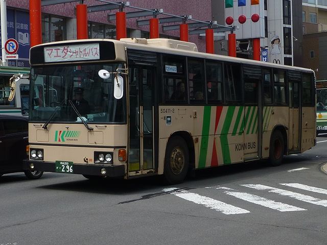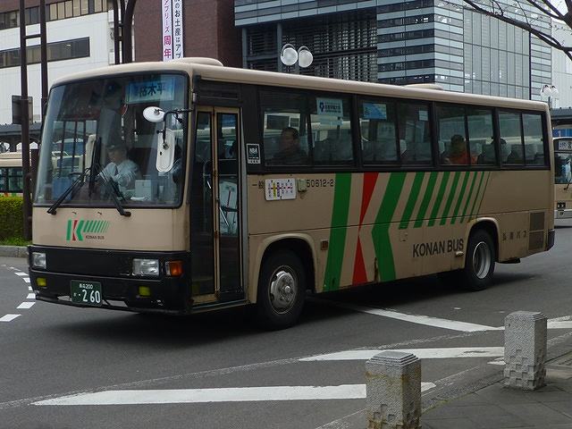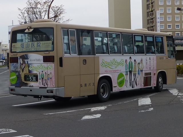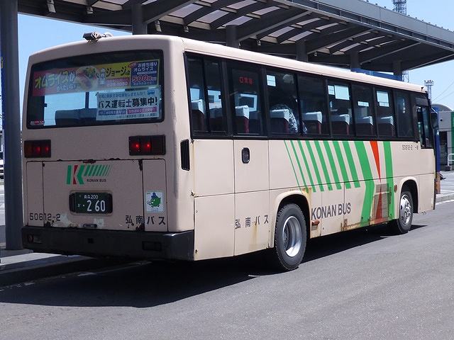2016年5月に記録したバス画像のよせ集め「青森・弘前で見た弘南バス」シリーズ。 今回の日野編その3では、移籍導入した一般乗合車や、貸切転用した高速車、貸切車など記録できた車両画像を並べていきます。 <移籍車> 社番:50121-2. 弘南バスはトップドア路線車を採用していましたが、同じ仕様の路線車を移籍車として探すとなるとなかなか難しいもの。そこで、トップドアの送迎車をしばしば路線車改造して導入しました。元々どこぞの送迎車だった観光マスクの中型車に行先表示など路線バス機器を後付け改造し、画像のような仕上がりとなっています。 社番:50315-2. トップドア仕様の路線移籍車はまったく無いというわけではありません。画像の車両は同じくトップドア車を当時採用していた箱根登山鉄道からの移籍車。複数台移籍していたようですが、見かけたのはこの車両のみでした。箱根登山鉄道の特徴といえる側面の行先表示位置に機器は残っているようですが、使用せず。他車同様サボを使用しています。 社番:50411-2. 路線車は中型・小型車をメインとしている弘南バスですが、大型路線車も少数ですが在籍しています。記録できたのは青森市内で見かけた東武バスからの3扉移籍車。青森市近郊にあるショッピングセンター「ガーラタウン 青森ウエストモール」への100円シャトルバスで運用中でした。 社番:50612-2. ハイバックシートが並ぶ送迎車から路線車改造した移籍車。登録番号から先ほど並べた東武バス移籍車よりも前に導入しています。 社番:50707-2. 同じく送迎車改造のトップドア移籍車ですが、画像の車両は現在「ふらいんぐうぃっち」という弘前を舞台としたアニメのラッピングバスとなっています。土手町循環100円バスで運用中で、一部停留所はアニメキャラクターによる車内アナウンスを放送中。「ふらいんぐうぃっち」ラッピングバスは今年の9月末まで期間限定とのこと。 社番:51214-2. 登録番号から近年久々に登場したトップドア仕様の路線移籍車。これといった特徴のなさそうな車両で、側面窓は上下開閉のサッシ仕様。いったいどこからやってきたのか。 社番:51215-2. こちらは前後扉仕様の移籍車。ツーステップ車にこだわって導入しているのか?と思うような選択です。 <貸切転用高速車> 社番:51112-2. 弘前と青森空港への路線やトイレ無し車両で運用している一部の高速路線には、貸切車からの転用車を使用しています。貸切車から路線へ転用という流れは弘南バスの伝統となっている模様。 まずは日野セレガFS貸切転用車。かつては扉を折戸に改造していたようですが、現在はスイング扉のまま転用しています。 社番:51306-2. セレガRも貸切車から路線車へ転用が進んでいる模様。画像の車両は弘前と青森空港を結ぶ路線で運用中でした。 社番:51515-3. 社番:51708-6. 青森駅前で記録したセレガRのFS貸切転用車を2台ほど。これらは青森と盛岡を結ぶ「あすなろ号」の運用に入っていました。 <貸切車> 社番:51904-2. 最後に貸切車から、現行ボディのセレガハイデッカー。十数年後に路線車となっているのかもしれません。 PR ![]()