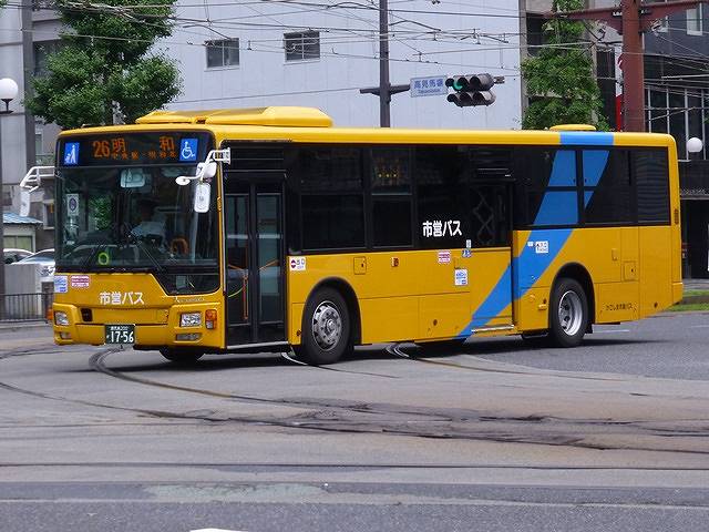 前回の更新では九州産交バスに登場した現代ユニバース高速車の画像を並べましたが、この現代ユニバースな「きりしま号」に乗って7月に鹿児島市内へ出かけました。短時間の滞在でしたが、バスの画像をそれなりの枚数記録できました。 というわけで、2012年以来となる「鹿児島市内で見たバス2016」シリーズをスタート。シリーズ1回目は、鹿児島市交通局の現行塗装車を新しい順に並べていきます。タイトルは現行塗装の車体表記「かごしま市営バス」から採用しています。 なお、型式・年式は「鹿児島市交通局 在籍車両一覧」『バスラマインターナショナル65号』(2001),ぽると出版 及び、『バスラマインターナショナル』各号掲載の「ノンステップバス採用実績一覧」や「各地の新車から」記事を参照しました。 鹿児島200か1756.QKG-MP38FM(16年車)。 鹿児島200か1752.QKG-MP38FM(16年車)。 ここ数年は毎年まとまった台数の新車導入を行い、古参車代替を進めている鹿児島市交通局。今のところ最新車となるのが、16年に登場した三菱ふそうMPノンステップ車。正面行先表示横の「ベビーカーマーク」と赤色の国土交通省標準仕様ノンステップバス認定ステッカーが16年導入車両の目印です。 今回のエントリでは、上下で車両が異なるものが多数あることをあらかじめおことわりしておきます。 鹿児島200か1678.QKG-MP38FM(15年車)。 鹿児島200か1673.QKG-MP38FM(15年車)。 15年はモデルチェンジした三菱ふそうMPノンステップ車を10台導入。15年導入車は正面行先表示横に車椅子マークと鹿児島市交通局の局章を貼付しています。 鹿児島200か1530.QKG-MP37FM(13年車)。 鹿児島200か1525.QKG-MP37FM(13年車)。 だいたい年度末に新車が登場する鹿児島市交通局ですが、2013年度はややイレギュラー。まずは12月に登場した三菱ふそうMPノンステップ車10台。三菱ふそう純正ボディのMPは07年のCNG車以来久々の登場となりました。 鹿児島200か1502.QPG-LV234N3(13年車)。 QPG規制車のいすゞLVノンステップ車は画像の13年度購入分の3台と13年2月に登場した12年度分の9台、あわせて12台が在籍。エアコンはデンソーを採用しています。 鹿児島200か1429.SKG-LR290J1(13年車)。 12年度は中型車も導入しており、いすゞLRノンステップ車が2台登場しています。こちらのエアコンはサーモキングを採用。同じいすゞの大型車と中型車ですが、異なるメーカーのエアコンを採用しているのが趣深いところです。 鹿児島200か1245.LKG-KV234N3(12年車)。 12年からハイブリッドバスなどの採用を見送る代わりに、ディーゼル車をこれまでよりも多く導入することで古参車代替をスピードアップする方針に転換した模様。この年10台登場したのが日野KVノンステップ車。 鹿児島200か1161.LJG-HU8JMGP(11年車)。 11年に3台登場したLJG規制車の日野ブルーリボンシティハイブリッド。省エネを考慮した新タイプの冷房装置を搭載したことが特徴です。11年はハイブリッド車のほか、大型ディーゼル車に三菱ふそうMPノンステップ車1台、中型車に日野KRノンステップ車を4台、さらに「カゴシマシティビュー」専用の特装車1台と気合の入った新車導入を行いました。 鹿児島200か855.PKG-AA274MAN(09年車)。 09年は西工ボディの大型ノンステップ車を導入。当時はUDと三菱ふそうが国内バス販売事業を統合する動きがあり、大型ノンステップ車はUD車をOEM販売していました。画像の車両は2台在籍する三菱ふそうのAAで、正面の小さなスリーダイヤがポイント。 09年はこのほか、購入年度違いでUDのRAノンステップ車やいすゞLVのCNGノンステップ車、日野ハイブリッド車も導入しています。 鹿児島200か726.PKG-RA274MAN(08年車)。 08年は日野ハイブリッド車5台のほか、UDから画像のRAノンステップ車を2台導入。AAが基本的に同仕様で採用していることが分かります。 鹿児島200か614. しばらく一般乗合車へ新車導入が途絶えていた鹿児島市交通局ですが、06年にまとまった台数を導入。まずはリヤ側からの画像だけですが、シビリアンテールのRAで、この年試験的に導入したワンステップ車。鹿児島市交通局はツーステップ車からいきなりノンステップ車を導入したことから、ワンステップ車は少数派。一般乗合車へのワンステップ車導入は結局この年限りでした。 鹿児島200か543.ACG-HU8JMFP(06年車)。 06年導入の目玉といえるのが、5台採用した日野ブルーリボンシティハイブリッド。当然ながらハイブリッドノンステップ車は県内初導入です。屋根上バッテリー部・後方の側面窓上に「人に環境にやさしいハイブリッドバス」のキャッチフレーズを表示し、これでもかとアピールしています。正面の行先表示横には車椅子マークのほか、ここ数年内に鹿児島市交通局の局章も追加して貼られています。 鹿児島200か208.KK-MJ26HF改(02年車)。 02年は三菱ふそうMJノンステップ車を12台導入。この頃の鹿児島市交通局はコスト削減などを目的に大型車を中型車へのダウンサイジングに力を入れていました。 鹿児島200か135.KL-LV280N1改(01年車)。 01年3月に県内初のノンステップ車を大型・中