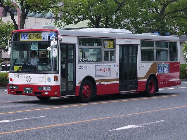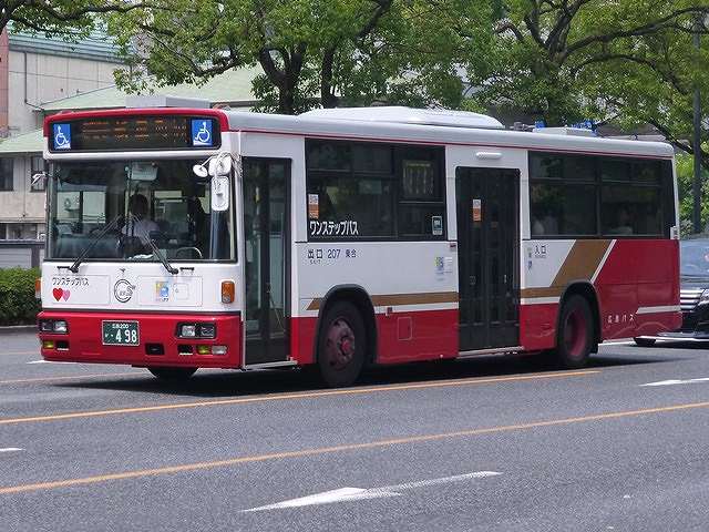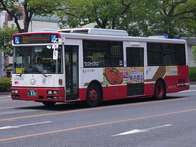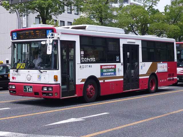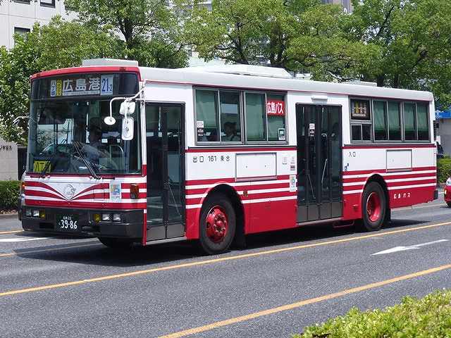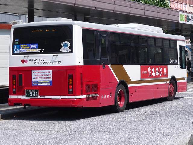 8月に広島市内へ出かけた際に記録したバス画像のよせ集め、「広島市内で見たバス2016」シリーズ。今回は広島へ出かけた主目的だった広島バスの車両画像よせ集めです。その1では、記録出来た自社発注のUDの一般乗合車画像を並べていきます。 なお、型式・年式は「広島バス 在籍車両一覧」『バスラマインターナショナル 157号』(2016),ぽると出版 を参照しました。 社番:161.U-UA440LAN(95年車)。 広島バスは富士重工ボディを愛用していた事業者です。富士5Eボディは数年前に代替となり、現在のUD車は富士7Eボディの91年車が最古参となる模様。自社発注の富士7Eボディは中扉4枚折戸+側面全引違窓仕様のツーステップ車です。 社番:165.U-UA440LAN(95年車)。 再掲画像ですが、 リヤ側画像もある車両画像も並べておきます。 社番:203.KL-UA452MAN(00年車)。 新車導入台数が極端に減った90年代後半の広島バス。UD車は97~99年の導入がなく、久々の導入となった00年車は新7Eボディのワンステップ車で登場。側面行先表示位置が中扉前に移動しました。MPノンステップ車で採用したデザインを簡略したものが、広島バスの低床車標準塗装となりました。 社番:207.KL-UA452MAN(03年車)。 01~02年の新車導入は無かったため、03年導入車は富士重工ボディに変わり西工ボディへ。基本的な仕様は富士ボディと変わっていませんが、サッシとガラスに色が入りました。 社番:208.KL-UA452MAN(04年車)。 翌04年導入車はデンソーエアコンの屋根上機器形状が変わりました。 社番:212.ADG-RA273MAN改(06年車)。 06年導入車から尿素使用のRAとなります。 社番:217.PKG-RA274MAN(07年車)。 07年導入車はPKG規制車となります。前半の導入車はこれまでと変わらず中扉4枚折戸仕様。 社番:220.PKG-RA274MAN(07年車)。 後半の導入車から中扉が引戸仕様に変更。中扉の下部にも窓を設置していますが、画像の車両は中扉部にもラッピング広告がかかっていて活用されず・・・。中扉の下部窓設置が現在無くなった理由のひとつかもしれません。 社番:236.LKG-AP35FM(11年車)。 10年からOEM車のAPワンステップ車の導入を開始しますが、UDの国内新車バス販売撤退により翌11年導入の画像の車両が広島バスのUD自社発注最終車となります。 PR
