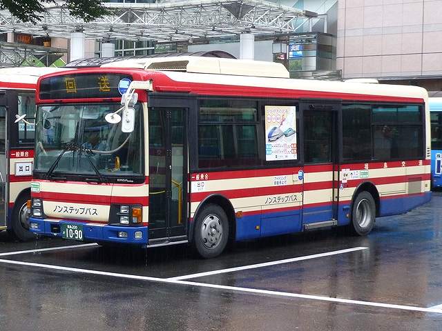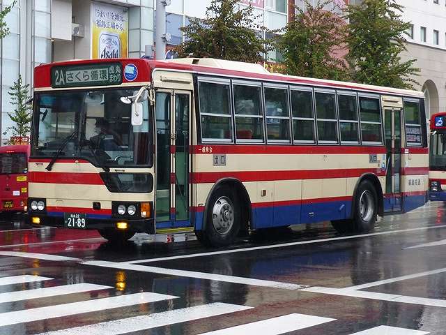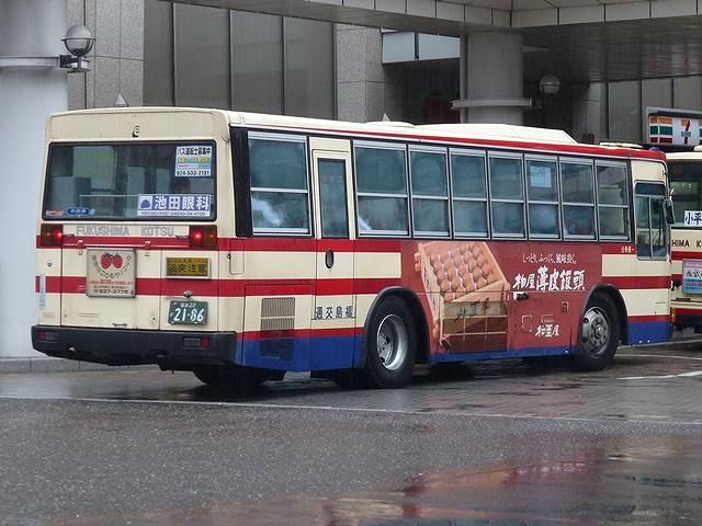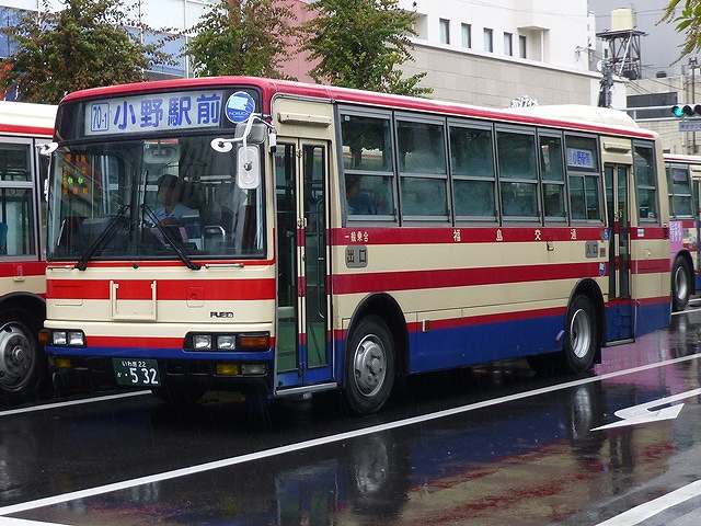 バス雑誌の感想めいたものを月末に更新している拙ブログ。奇数月は「バスマガジン」の最新号についてをもはやルーチンワークとして書いていますが、9月と11月の刊行分は例年通り翌月の更新となりますのであしからず。延ばしたからといって、たいしたこと書いていないんですけどね。 ただ、月末に感想めいたものを書いておきたいお年頃。というわけで、今回は『BJハンドブックシリーズS93 福島交通』です。 福島200か1090.PDG-LR234J2(09年車)。2016年9月に記録。 BJハンドブックシリーズでは初登場となる福島交通。 路線バスは福島県の中通りをメインに路線網を展開しているほか、飯坂温泉への鉄道線など、社名の通り福島県を代表する交通事業者です。福島交通はグループの貸切専業者を既に整理したことや、賃金抑制のための分離子会社を持たないため、本作は『S87 都営バス』以来となるタイトル事業者オンリーな1冊となっています。 内容は、車両編・歴史編・紀行編の3部構成。「終点の構図」は1971年に廃止された軌道線の駅舎が今も残る掛田駅前。紀行編は「磐城の伝統と伝説を訪ねる」と題し、郡山から白河を小野・石川を経由してめぐる1泊2日の乗り歩きルポとなっています。福島交通全域を巡るとなると、相馬から白河までタイトなスケジュールの路線バス乗り継ぎ旅となってしまいますが、たまにはそんな紀行編も読んでみたいもの。 さて、福島交通が趣味誌で大きく取り上げられたのは、みちのりホールディングス傘下となってから間もない2010年5月刊行の『バスマガジン 41号』以来でしょうか。2010年時点で三菱ふそう以外のメーカーの車両が既に登場していましたが、さらにバラエティに富んだ在籍車両となったことを車両編の掲載リストで実感。このような状況になると、保有株式の関係で三菱ふそう車オンリーだった時代が信じられなくなります。本作は1事業者のみの掲載なので、誌面に余裕があり、各型式ともそこそこ詳しい解説があります。ただ、掲載写真は既刊より多少改善しているものの、好天で撮影したと思しき写真は粗い&コントラストの調整がイマイチで側面窓形状が分かりにくいものもあります。 歴史編は福島交通の成立から破綻、みちのりホールディングス傘下となってからの取り組み、そして東日本大震災など読み応えのある内容となっています。 感想めいたものはこのくらいにして、今回の感想めいたものを書くため9月に福島県へ出かけて記録した小生手持ち画像を中心に並べていきます。なお、本文中の「斜字 」部分は本作からの引用部分、型式・年式は掲載の車両リストを参照しました。 <一般乗合車> 福島22か2189.U-MP218K(92年車)。 福島22か2186.U-MP218K(92年車)。 車両の代替が進み、P規制車は消滅。福島交通の大型路線車の代表的存在だったエアロスターMはU規制車の91年車から在籍しています。福島交通では長らく前後扉を標準採用しており、後面の行先表示は装備していません。上下で車両が異なり失礼します。 福島22か2590.KC-MP317K(98年車)。 モデルチェンジしたニューエアロスターも当初は前後扉仕様で導入。 福島200か1164.KC-HT2MLCA(96年車)。 みちのりホールディングス傘下となり、三菱ふそう車以外のメーカーの車両導入を開始。画像の日野HTツーステップ車は東急バスからの移籍車。「高校生の減少などにより福島・郡山発着路線だけに活躍の場が狭まった大型車は、主に首都圏からの中古購入 」による代替を進めています。それにしても福島交通塗装の日野ブルーリボンが現実のものになるとは予想できませんでした。 郡山230あ7021.KL-HR1JNEE(01年車)。 みちのりホールディングス傘下の事業者に大人気な京王電鉄バスグループからの移籍車。福島交通にも画像の日野HR10.5mサイズのほか、UD車など様々な車両が移籍しています。 ちなみに福島交通では、「郡山ナンバーの車両は15年以降、7000番台の希望ナンバーを取得 」しています。 郡山230あ7028.KL-MP37JK(00年車)。 こちらのMPノンステップ車は神奈川中央交通からの移籍車。みちのりホールディングス傘下となってからの移籍車は外装の塗り替え程度で、シートモケットの張替えなどは行っていない模様。この車両は、初期型ノンステップバスの特徴といえる後部の対面シートを神奈川中央交通時代と変わらず装備しています。 いわき22か532.U-MK218J(95年車)。 続いて中型車から、生え抜きのMKツーステップ車。中型車も前後扉仕様を採用していました。ちなみに画像の車両は小野出張所配置のため、いわきナンバーです。福島交通は、「社番には登録番号を使用しているが、いわきナンバーの車両には5000、郡山ナンバーの車両には7000を加え、重複を防いでいる 」とのこと。 福島200か1092.PDG-KR234J2(09年車)。 「燃費・効率の悪い旧年式車の更新に資金を投ずるというみちのりホールディングスの方針 」により、09年に「乗合バスに5年ぶりの新車 」として日野といすゞの中型ノンステップ車を導入。冒頭に並べたいすゞ車は福島、日野車は