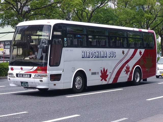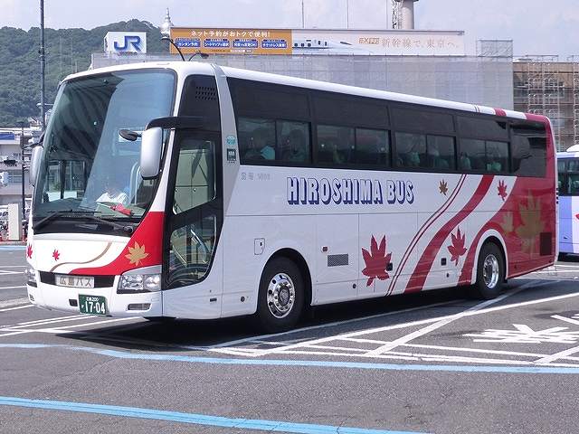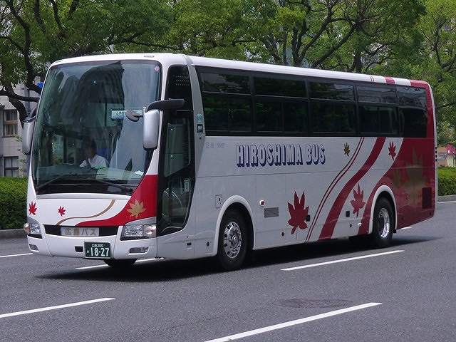 8月に広島市内へ出かけた際に記録したバス画像のよせ集め、「広島市内で見たバス2016」シリーズ。広島バス編最終回となる今回のその5では、記録出来た広島空港連絡バスと貸切車の画像を並べていきます。 																									なお、型式・年式は「広島バス 在籍車両一覧」『バスラマインターナショナル 157号』(2016),ぽると出版 を参照しました。 <広島空港連絡バス> 社番:2011.PJ-MS86JP(06年車)。 広島市内と広島空港を結ぶリムジンバスは広島電鉄など県内5事業者による共同運行となっています。塗装も各社共通のデザインで赤色の広島空港のロゴマークが目立ちます。 今回記録出来た広島バス在籍の専用車は直結冷房+3本トランクと、いかにもリムジンバスという仕様の三菱ふそうMS。モデルチェンジ前のニューエアロバスボディのリムジンバス専用車は広島バスでこの車両のみとなっています。 <貸切車> 社番:1560.KC-MS822P(96年車)。 広島バスの貸切車の主力はスーパーハイデッカー。画像は96年導入の三菱ふそうエアロクィーンⅠ。古参車に富士ボディのハイデッカーが在籍していますが当然見ることは出来ませんでした。 社番:1565.QRG-MS96VP(12年車)。 貸切事業の低迷により、貸切車は先ほど並べた96年車から10年以上新車導入のない状況でした。2010年から画像の三菱ふそうエアロクィーンを毎年1台導入しています。 社番:1566.QRG-MS96VP(13年車)。 社番:1567.QRG-MS96VP(13年車)。 13年はエアロクィーンを時期をずらして2台導入。行灯下中央部にレーダーが付いたことから、ナンバープレート位置が少々ずれました。 15年以降はいすゞガーラのハイデッカーを導入しています。 PR
